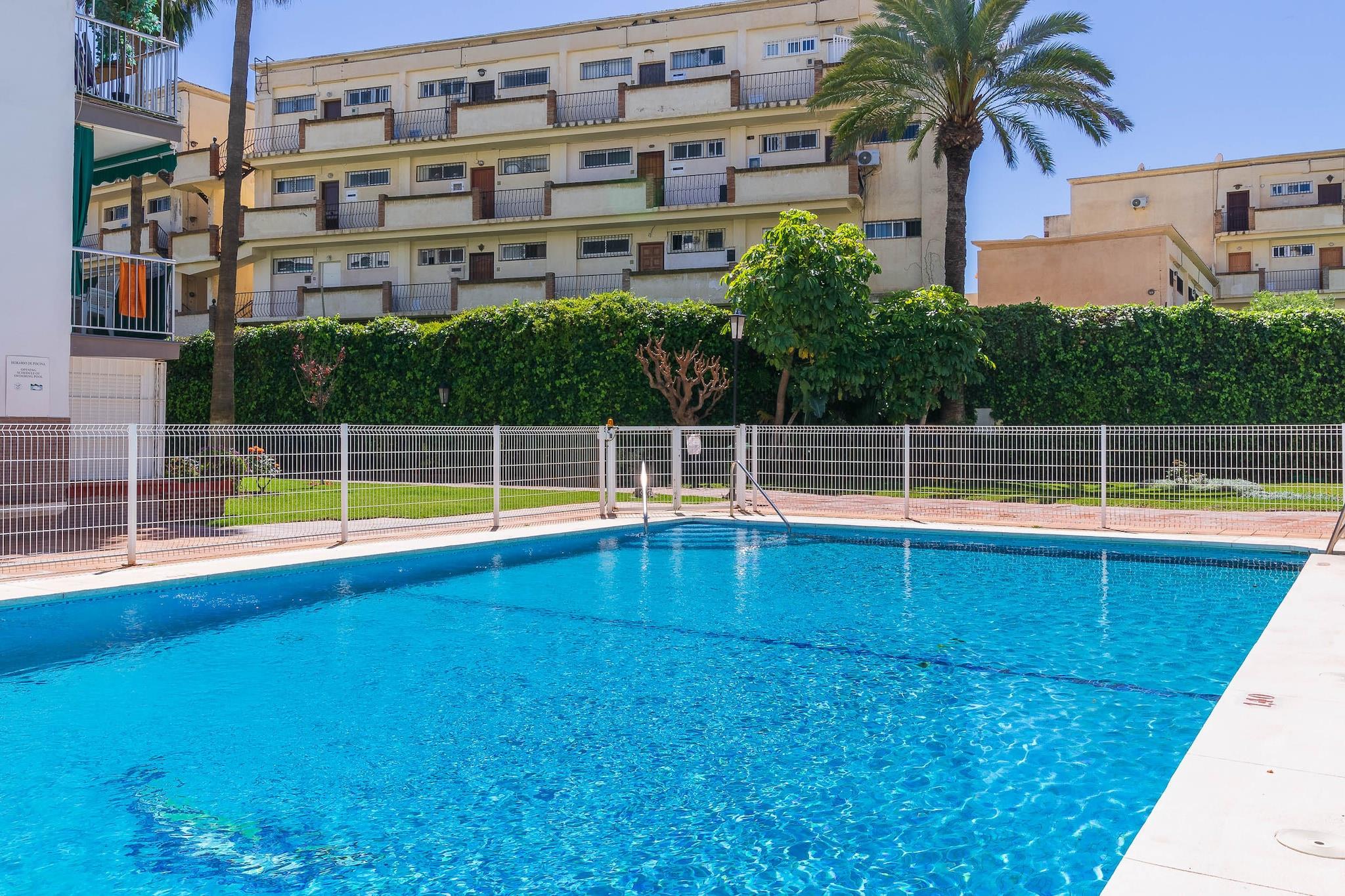 Forestil dig at starte din dag med den blide summen af bølger og solopgangens gyldne nuancer, der maler Middelhavets horisont. Denne lejlighed ved stranden tilbyder et roligt tilflugtssted, perfekt til op til fire gæster, der søger både afslapning og eventyr. Indenfor finder du to komfortable soveværelser, der begge har en dobbeltseng og aircondition for at sikre afslappende nætter. Det åbne køkken er fuldt udstyret med moderne apparater, herunder et stort køleskab, ovn, mikrobølgeovn, opvaskemaskine og essentielt køkkengrej, hvilket gør madlavning til en fornøjelse. Opholdsstuen åbner ud til en solbeskinnet terrasse, et ideelt sted til morgenkaffe eller aftenafslapning, med en fantastisk udsigt over havet og poolen. Lejligheden er beliggende i et velholdt område med en forfriskende swimmingpool, perfekt til en afslappet dukkert efter en dag på stranden. Beliggende kun få skridt fra Torremolinos' sandstrande, er du også i gåafstand fra pulserende lokale spisesteder, butikker og kulturelle attraktioner. Uanset om du slapper af ved poolen, udforsker de charmerende gader eller nyder strandstemningen, er denne lejlighed den perfekte base for en uforglemmelig kystferie.