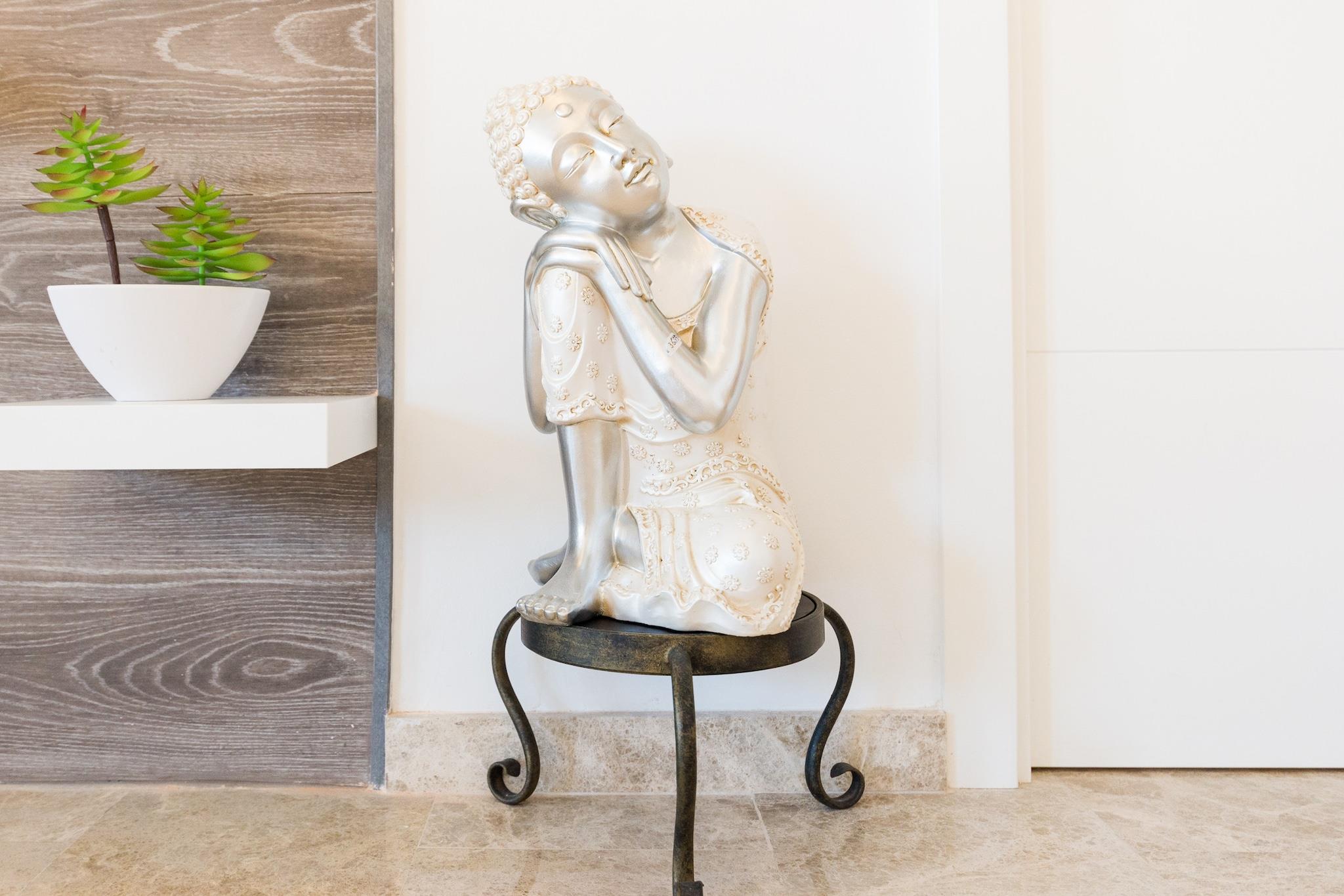 På 2. etage: (Stue(dobbeltsovesofa, Fjernsyn(Smart-TV), spisebord, sofahjørne), åbent køkken(kogeplade(glaskeramisk), elkedel, brødrister, kaffemaskine, ovn, mikrobølgeovn, opvaskemaskine , køle-fryseskab, ), soveværelse(dobbeltseng), soveværelse(dobbeltseng), soveværelse(dobbeltseng), badeværelse(bruser, føntørrer), badeværelse(bruser), Internetadgang) Internetadgang, tørretumbler, vaskemaskine, varme(central), klimaanlæg, terrasse, havemøbler, parkering, swimmingpool(deles med andre gæster), elevator, strygejern