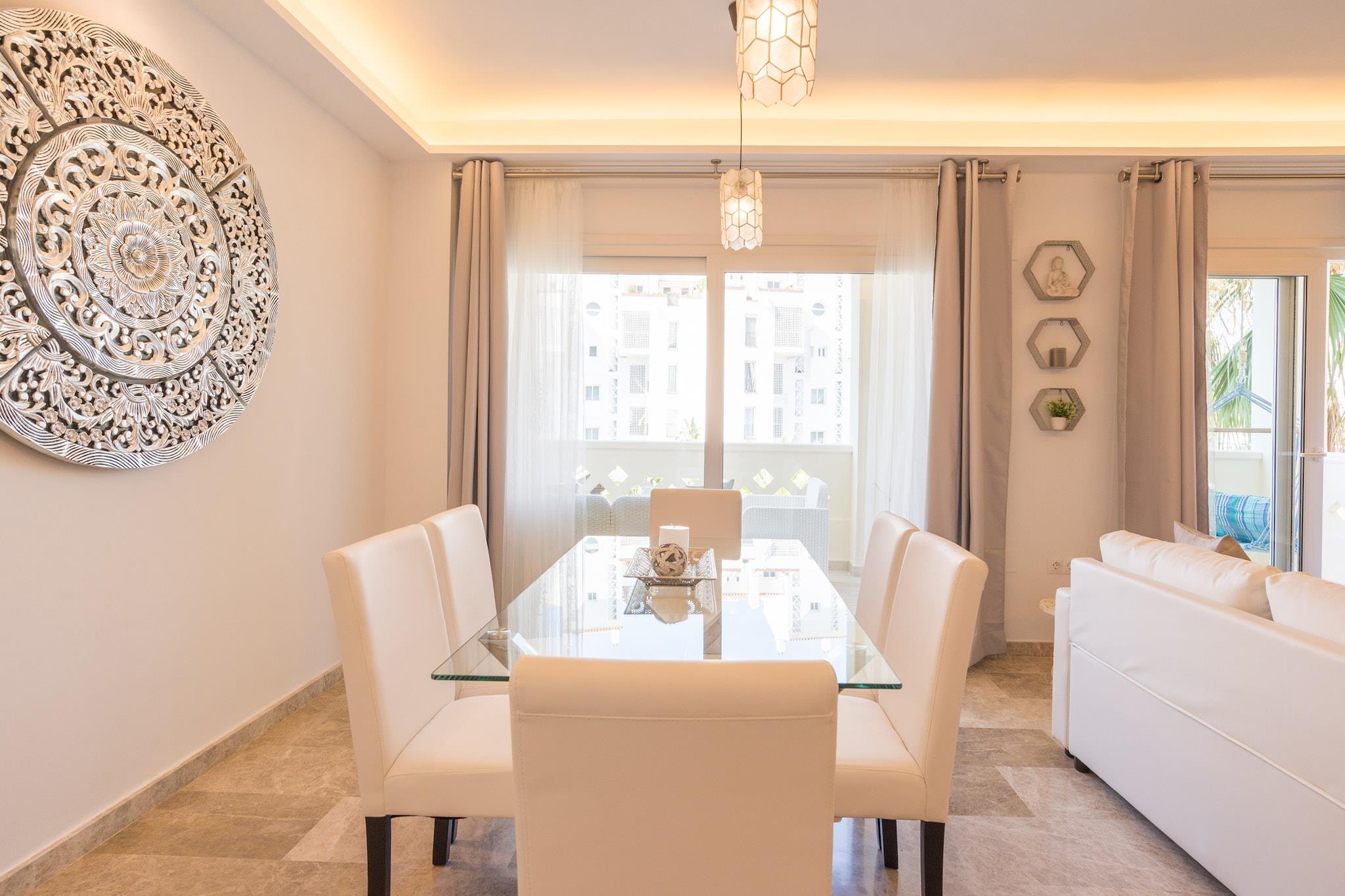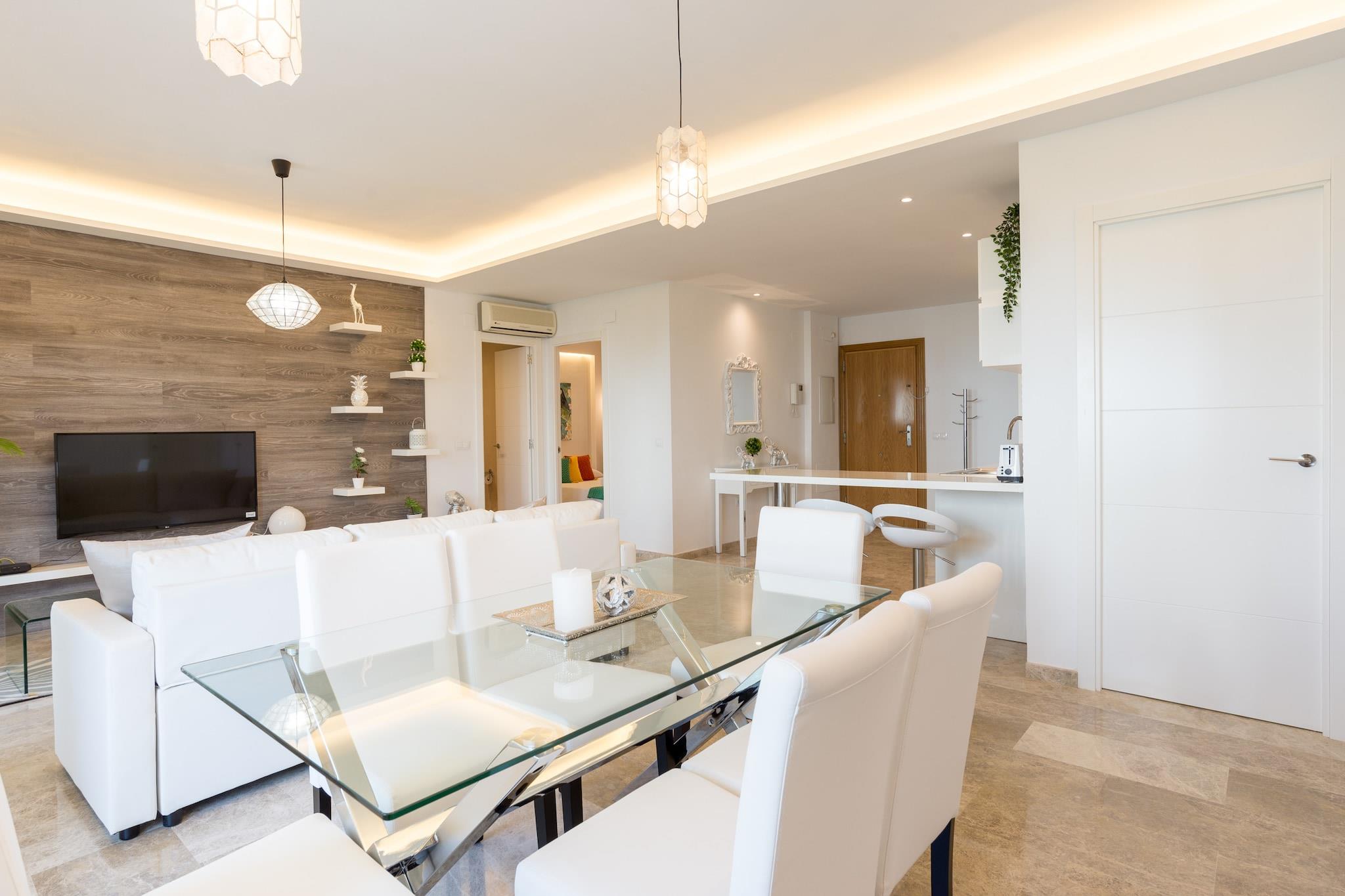 Flygt til Torremolinos' solbeskinnede charme i denne rummelige og stilfulde lejlighed med 3 soveværelser, kun 4 minutters gang fra Middelhavets gyldne kyster. Lejligheden er designet med komfort og alsidighed i tankerne og har plads til op til 8 gæster. Den har et lyst, moderne interiør med to badeværelser, et fuldt udstyret køkken og en hyggelig opholdsstue med streamingklar underholdning. Gå ud på den private terrasse for at nyde din morgenkaffe med udsigt over byen eller køle af i den sæsonåbne udendørs pool, der ligger i en rolig haveoase. Ideelt beliggende i et fredeligt boligområde er du perfekt placeret til at udforske nogle af Torremolinos' største attraktioner. De livlige strande Playamar og Los Álamos ligger kun få minutter væk, mens kulturelle vartegn som Casa de los Navajas og sjove steder som Aqualand er inden for rækkevidde. Uanset om du shopper langs de travle lokale gader eller tager ud til det nærliggende Malaga, tilbyder denne base fremragende adgang til både ro og spænding. Dette solrige tilflugtssted er ideelt for familier, der søger en afslappet kystferie, vennegrupper, der søger en sjov og sammenhængende base, eller rejsende, der ønsker et lyst og luftigt sted at slappe af efter en dag i solen. Med sin indbydende atmosfære, praktiske faciliteter og uovertrufne beliggenhed begynder dit perfekte Costa del Sol-eventyr lige her.