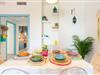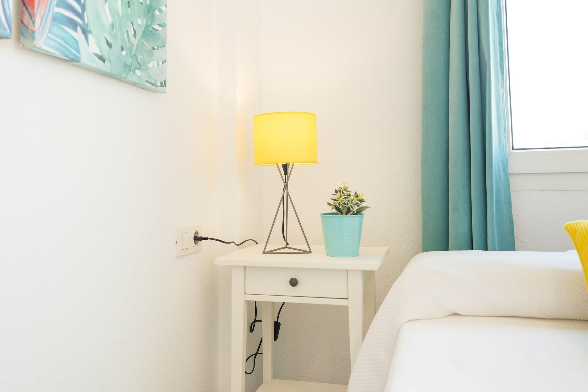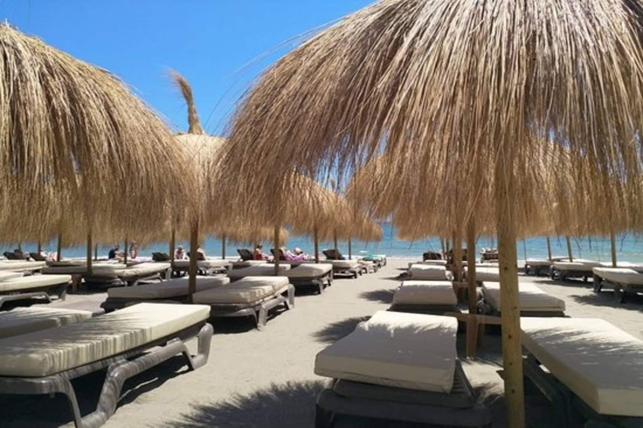 Nyd den afslappede elegance i denne boheme chikke 2-værelses lejlighed, ideelt beliggende kun få skridt fra Torremolinos' gyldne sandstrand. Lejligheden er designet til at rumme op til 8 gæster og har et soveværelse med en XXL himmelseng, et andet soveværelse med to enkeltsenge, der kan adskilles, og en rummelig opholdsstue med en sovesofa, der er egnet til to voksne. Det fuldt udstyrede køkken kan prale af moderne apparater, herunder opvaskemaskine, Nespresso-kaffemaskine og juicer, hvilket sikrer et behageligt ophold. En privat terrasse tilbyder en fantastisk havudsigt og er den perfekte ramme for afslapning. Denne lejlighed er perfekt til familier, vennegrupper eller par, der søger et rummeligt og stilfuldt strandparadis. Dens nærhed til stranden og lokale attraktioner gør den til en fremragende base for at udforske den pulserende kultur og naturlige skønhed på Costa del Sol. Gæsterne kan nyde den sæsonåbne saltvandspool, der er åben fra 1. juni til 15. september, og slappe af i de frodige haveområder med hængekøjer. Der tilbydes gratis cykler til at køre langs den maleriske promenade. Lejligheden er også kæledyrsvenlig, så dine pelsede venner kan deltage i det sjove. Nærliggende attraktioner inkluderer Playa El Bajondillo, La Carihuela-stranden, det historiske Casa de los Navajas og det store vandland Aqualand. Med nem adgang til offentlig transport og Málaga Lufthavn kun 6 km væk, er eventyr og afslapning lige uden for døren. Yderligere information Gebyrer for sen indtjekning: Ankomst mellem kl. 21:00 og 23:00 medfører et gebyr på EURO30; mellem kl. 23:00 og 01:00, EURO50. Depositum: Et refunderbart depositum på op til EURO300 kan være påkrævet for at dække eventuelle skader under dit ophold. Sæsonbestemt pool: Den udendørs pool er åben fra 1. juni til 15. september.