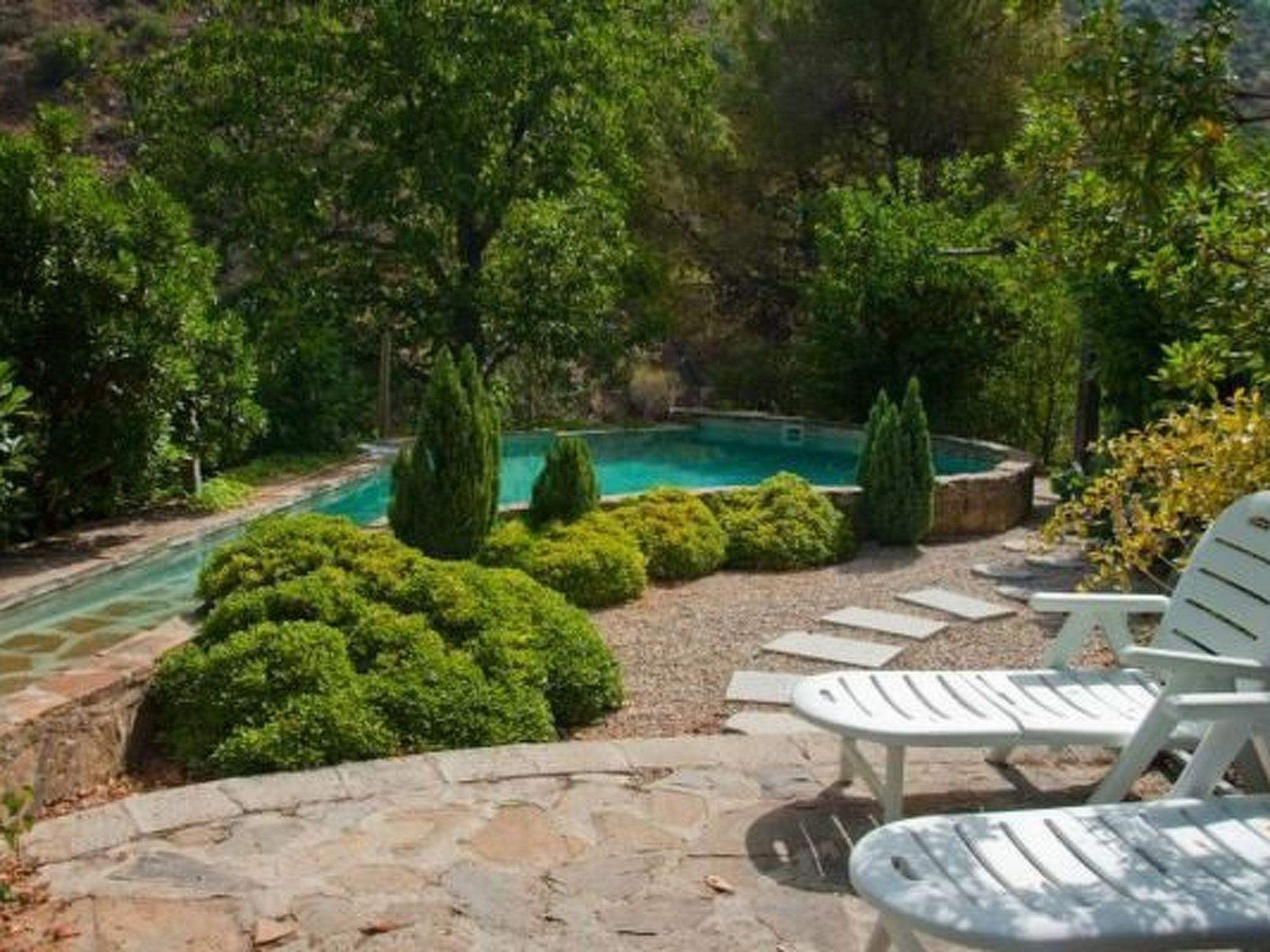 The holiday home is surrounded by an exclusive garden of 1000 square meters with an ideal microclimate with more than a hundred interesting botanical species. There are also fountains, a small Japanese garden, a covered veranda next to the pool and beautiful corners that invite you to meditate and relax in front of a beautiful waterfall with an original pool lined with stone. In the area there are orchards, cherry trees and steep mountains.