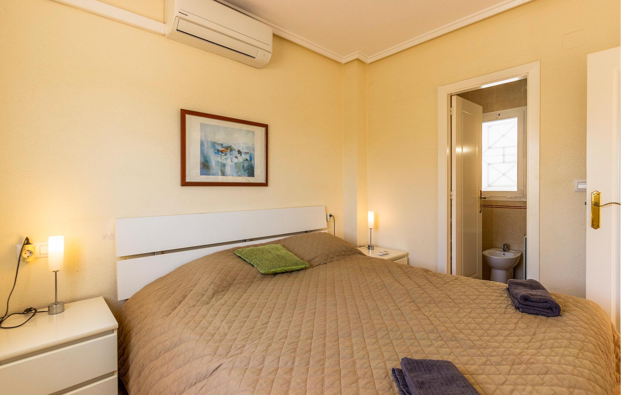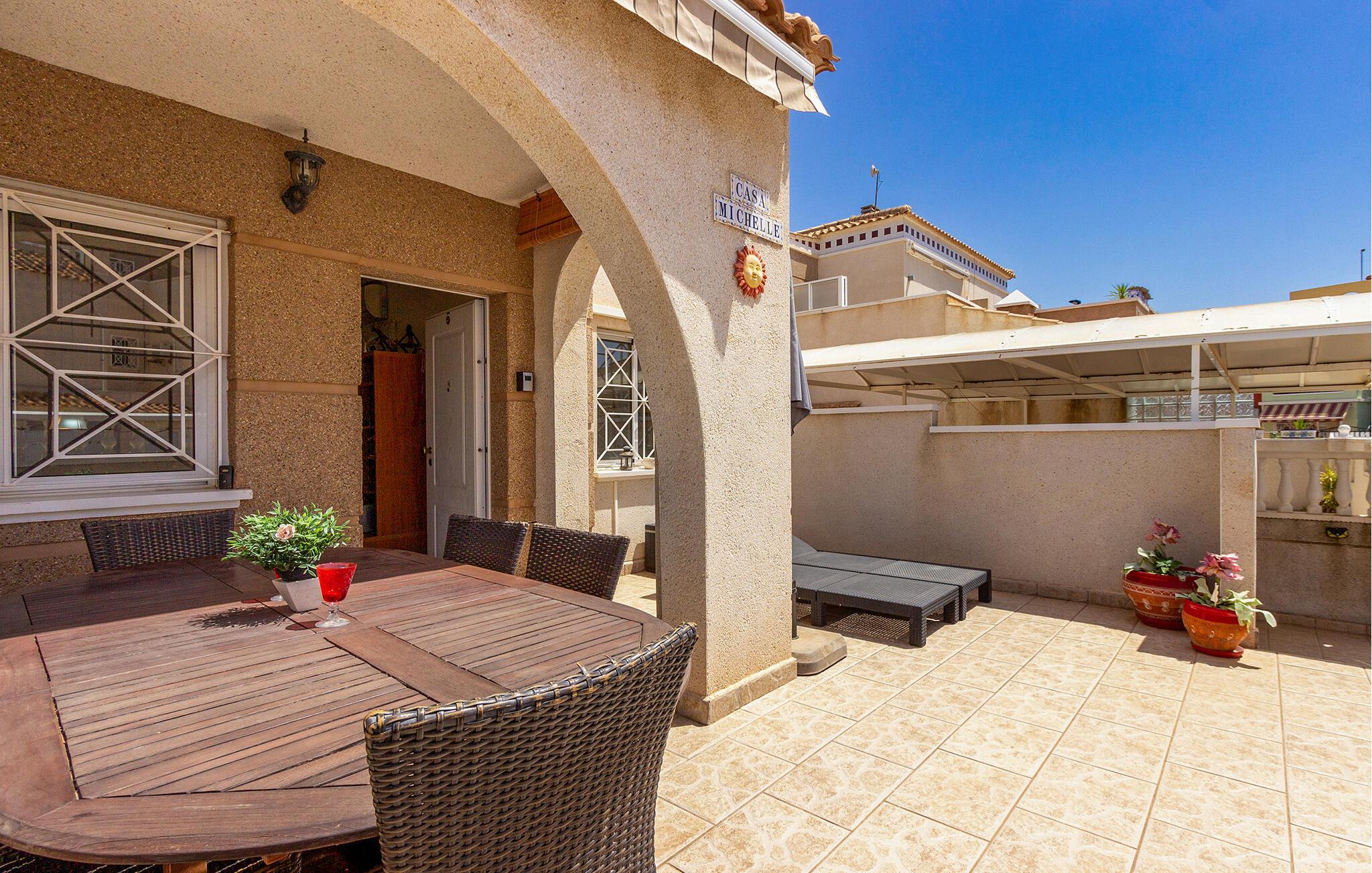 Begynd dagene med en fælles morgenmad, som I kan tilberede i det åbne, veludstyrede køkken. Tag plads ved det tilstødende spisebord og planlæg dagen frem. Den hyggelige opholdsstue lægger op til hyggestunder. Sæt jer godt til rette i sofaen, se en sjov film sammen eller spil et spil kort. På balkonen til jeres rækkehus i Torrevieja kan I nyde den vidunderlige udsigt med en forfriskende drink.