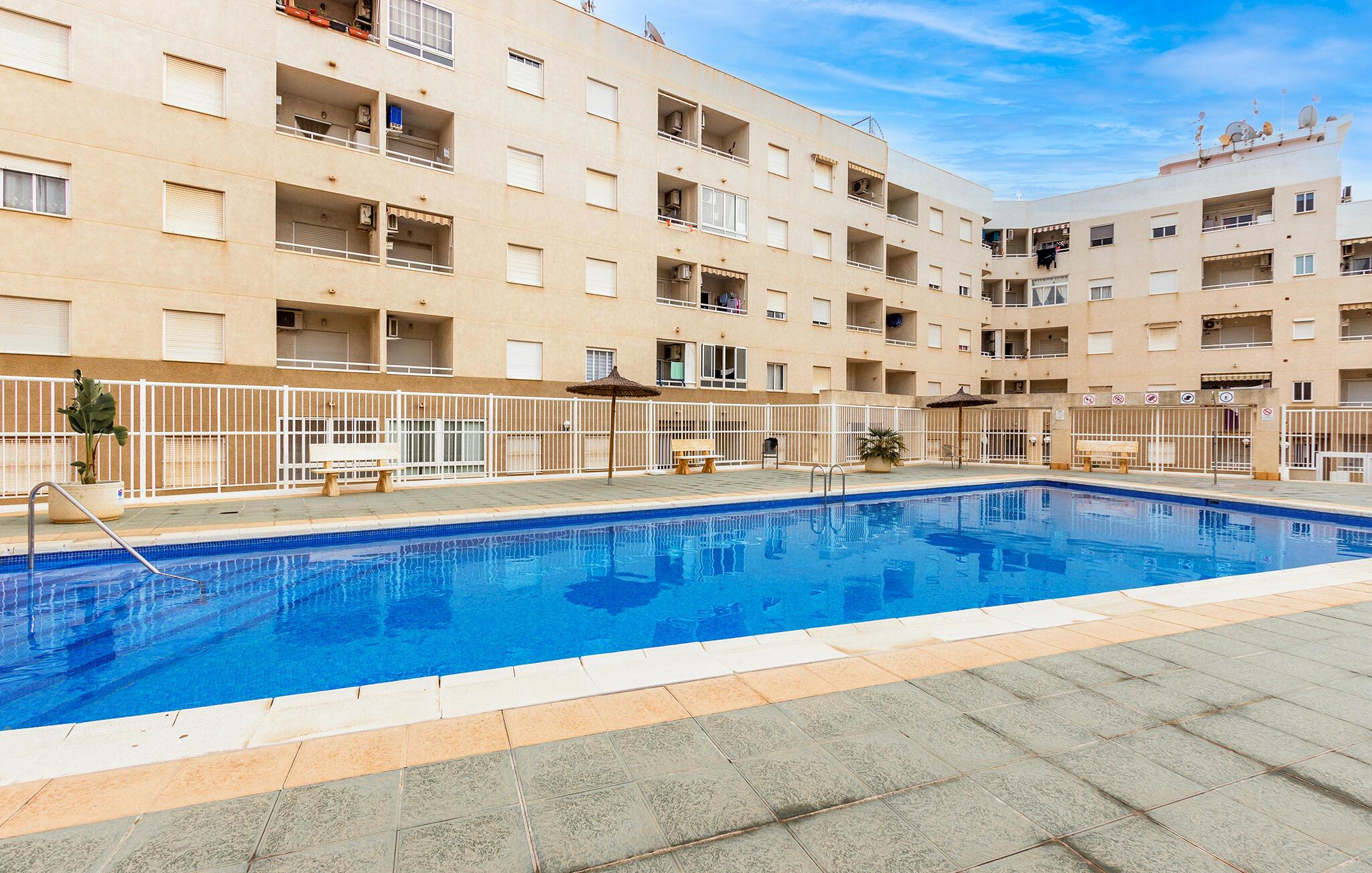 Gør jer klar til en begivenhedsrig ferie med base i denne lejlighed, hvor I får adgang til en fælles udendørs pool.