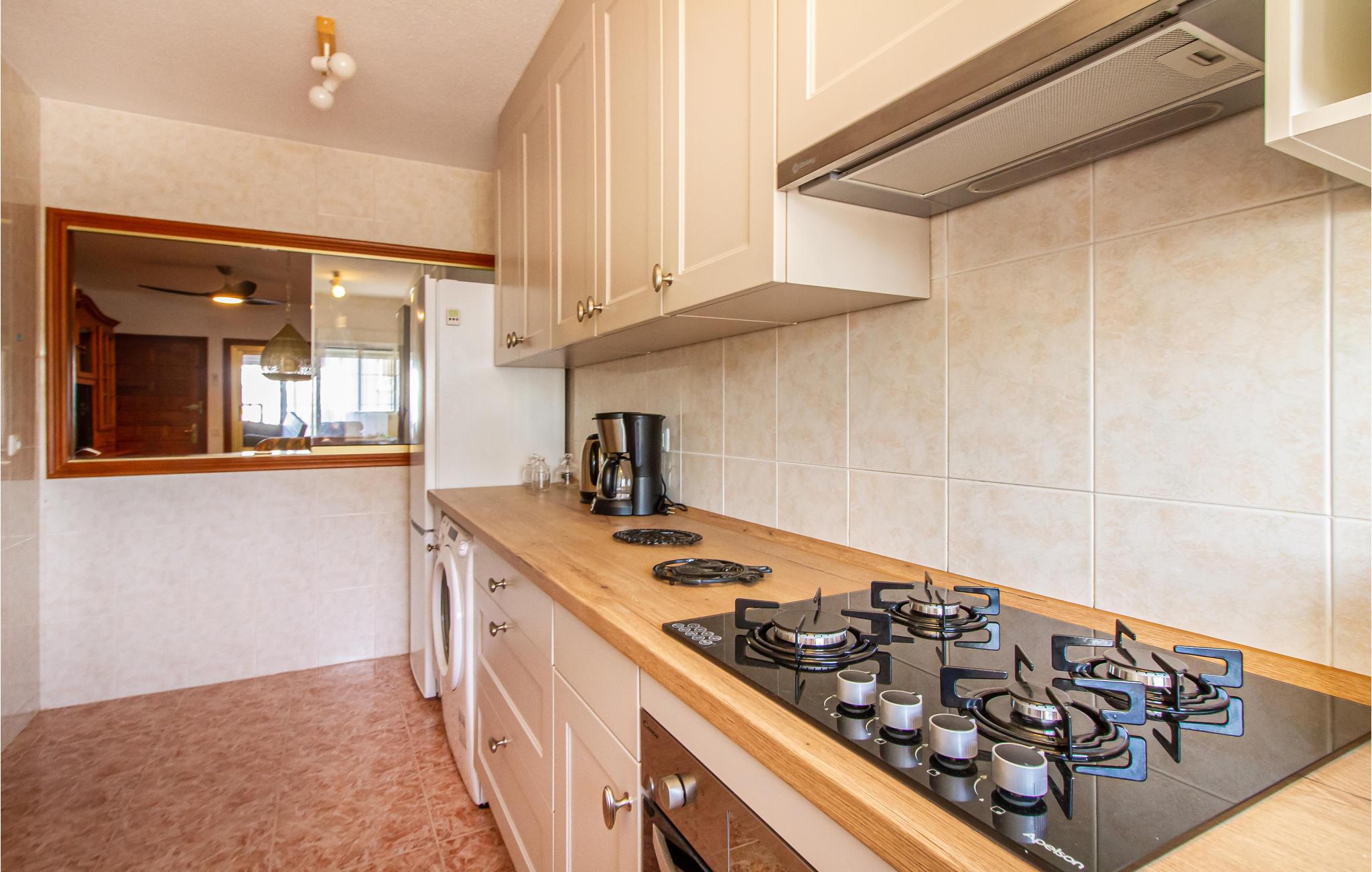 Dette feriehus byder også på mulighed for dukkerter i den fælles udendørs pool, og sandstranden ligger kun 800 m væk, hvor I kan gå langs de brede promenader og bygge sandslotte med børnene. Torrevieja er vokset fra at være en lille fiskerby til en af de mest populære turistbyer på Costa Blanca og opfylder alle forventninger til en vellykket ferie. Her kan I dyrke vandsport, besøge de berømte saltlaguner, gå en tur langs strandpromenaden og marinaen og nyde den fremragende gastronomi.