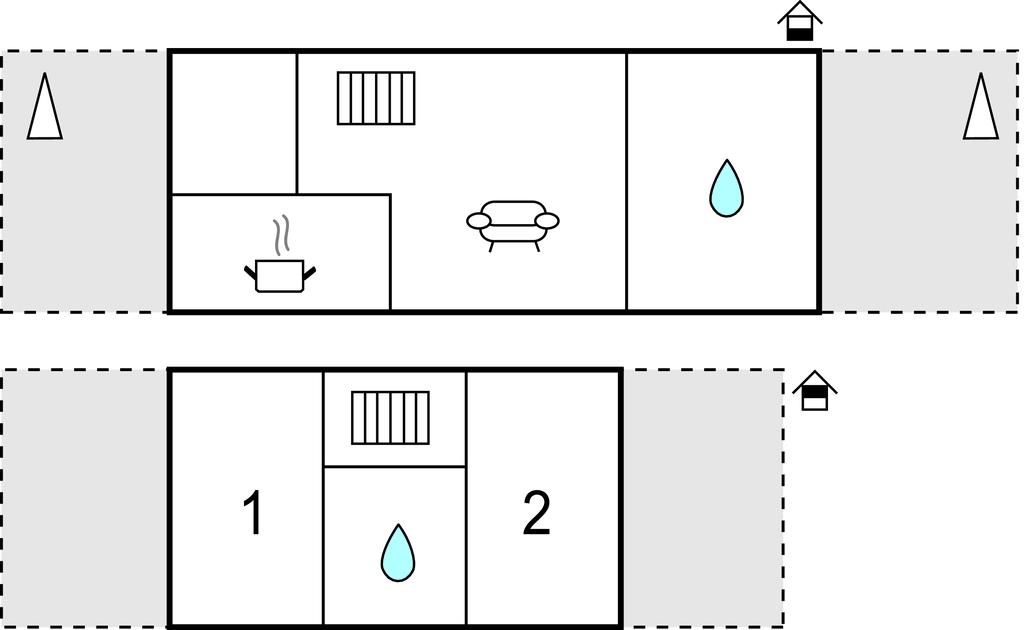 Opholdsstue 15m2 - 2 Sovepladser. (Sofa, madras eller lignende).