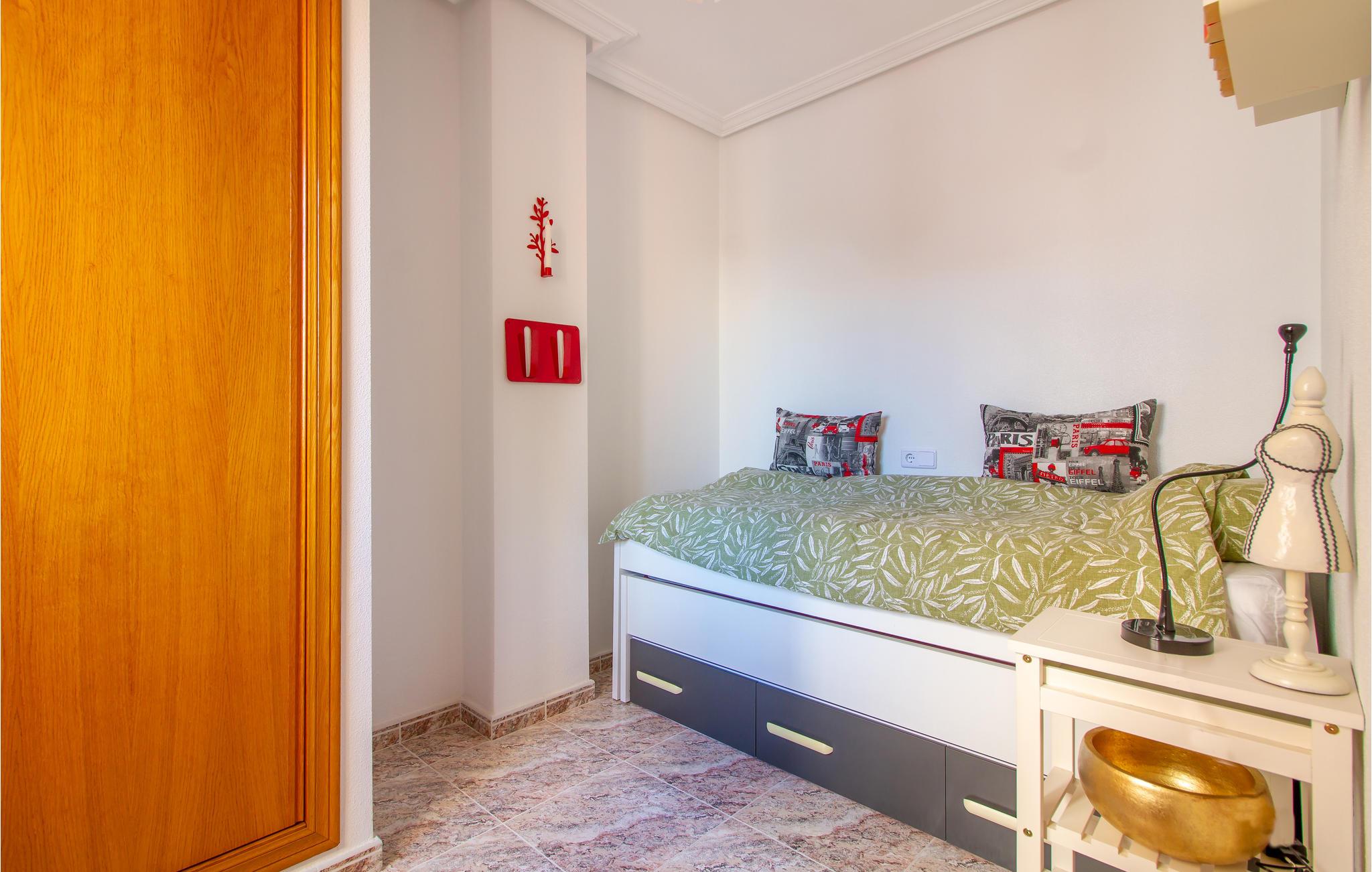 I Torrevieja på Costa Blancas skønne kyst tilbyder denne ferielejlighed med en skøn balkon en fremragende beliggenhed nær stranden og er derfor perfekt til strandferiegæster. I vil straks føle jer hjemme i de lyse, komfortable værelser med moderne indretning, og her venter jer en uforglemmelig ferie. På balkonen kan I tilbringe de tidlige morgentimer, sene eftermiddage og hyggelige aftener med lækker mad og vin eller cocktails. Hvad er pænere end en udvidet morgenmad på balkonen med solen bag dig? Start dagen på jeres skønne altan og planlæg jeres aktiviteter for dagen. Slap af på balkonen i det gyldne tusmørke med en kold drink, mens den lækre duft af madlavning svæver gennem lejligheden. Afrund en skøn dag med et lækkert hjemmelavet måltid og lækker lokal vin.
