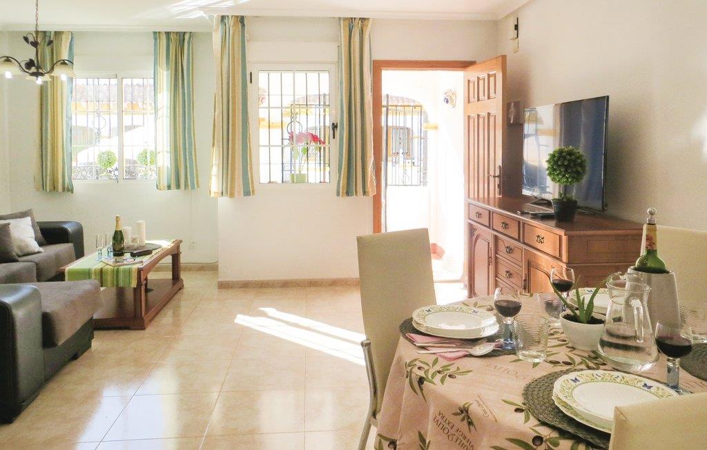 Tilbring ferien i stilfuld indretning i dette ferierækkehus. Det ligger i det afskærmede private anlæg Jardin del Mar, og egner sig med den store fællespool perfekt til en familie, som ønsker en fornøjelig og afslappende ferie sammen.