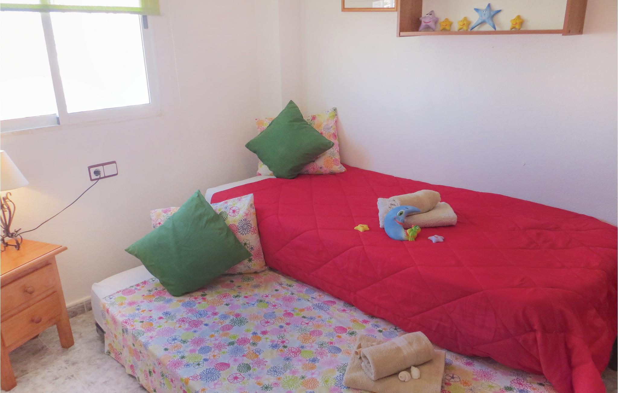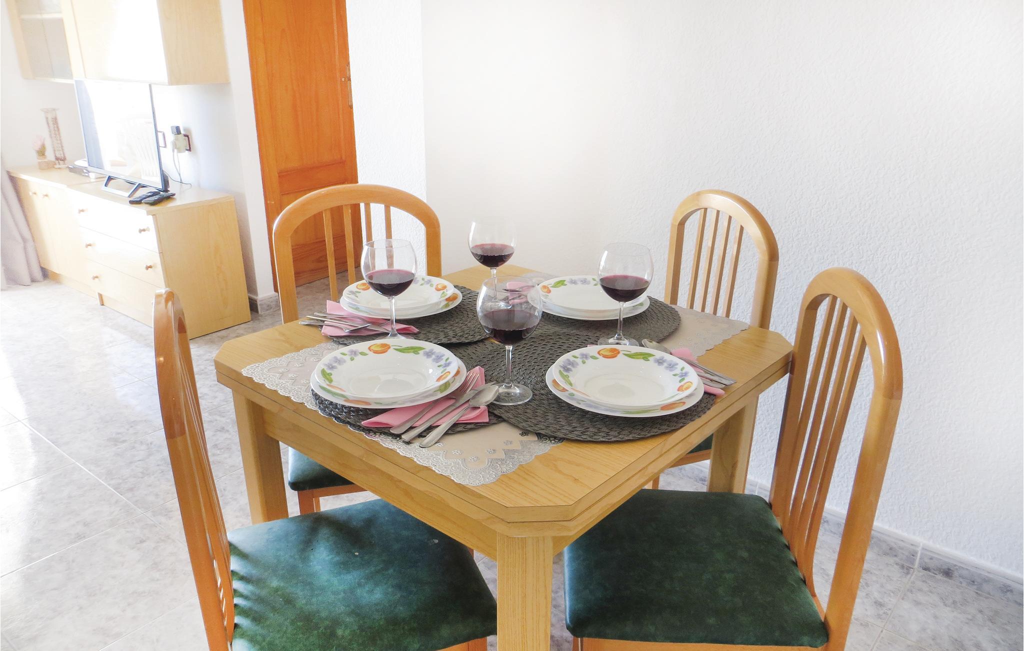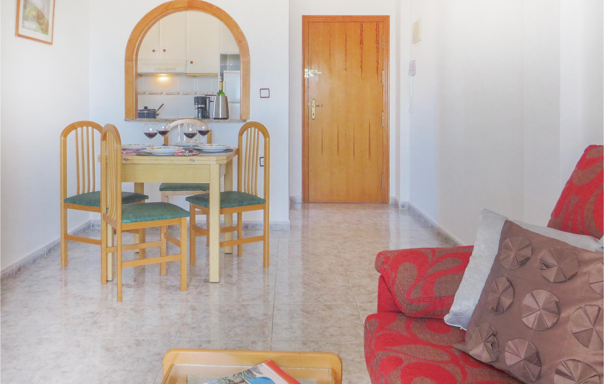 Denne indbydende ferielejlighed hvis gæster har adgang til fælles pool, ligger i centrum af Torrevieja, kun en km fra stranden og havet som nabo til busbanegården, der forbinder den lille by med Alicantes lufthavn og Murcia. Der er en skøn terrasse der indbyder til ophold fra morgen til aften. Torrevieja er først og fremmest kendt for sine fantastsike badestrande, men I kan også besøge det historiske bygningsværk Torre del Moro, fra det 14. århundrede, hvorfra angreb fra piraterne blev forhindret. Fra Cala Ferrisbugten, omgivet af palmer, er der en betagende udsigt der bestemt er et foto eller to værd. Et feriemål der bliver tiltagende mere populært.