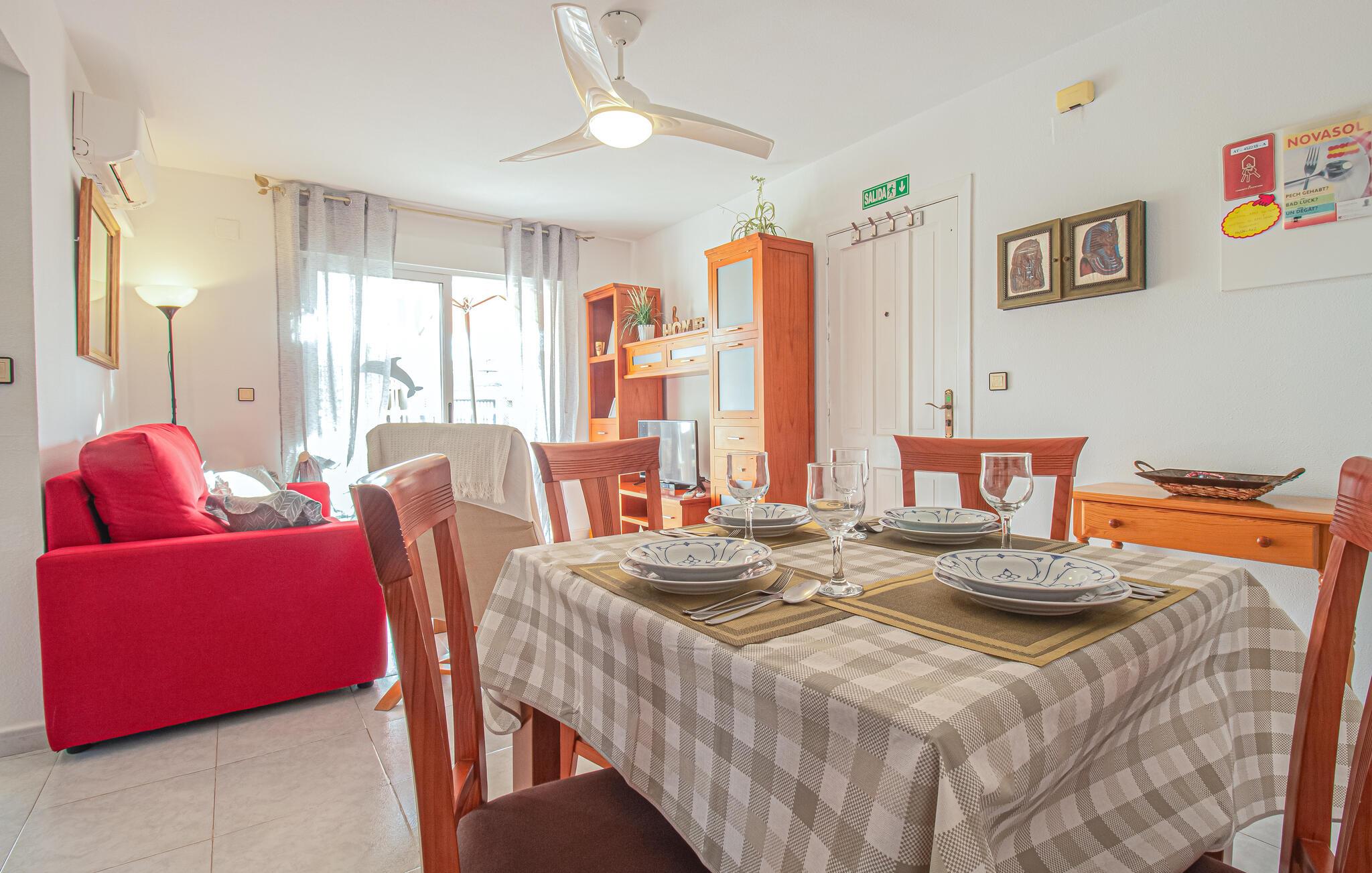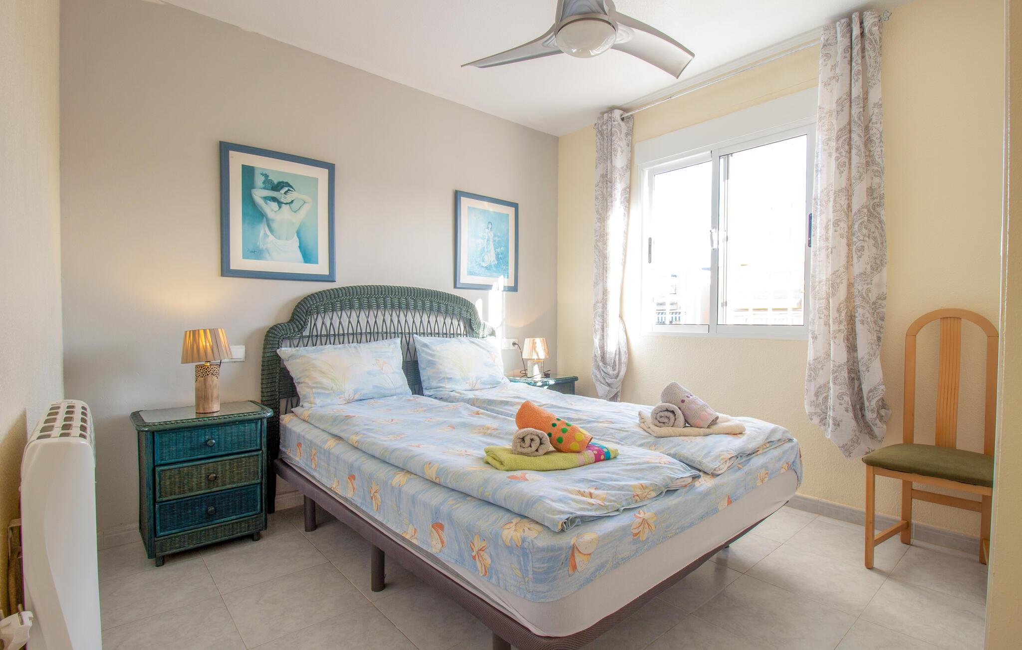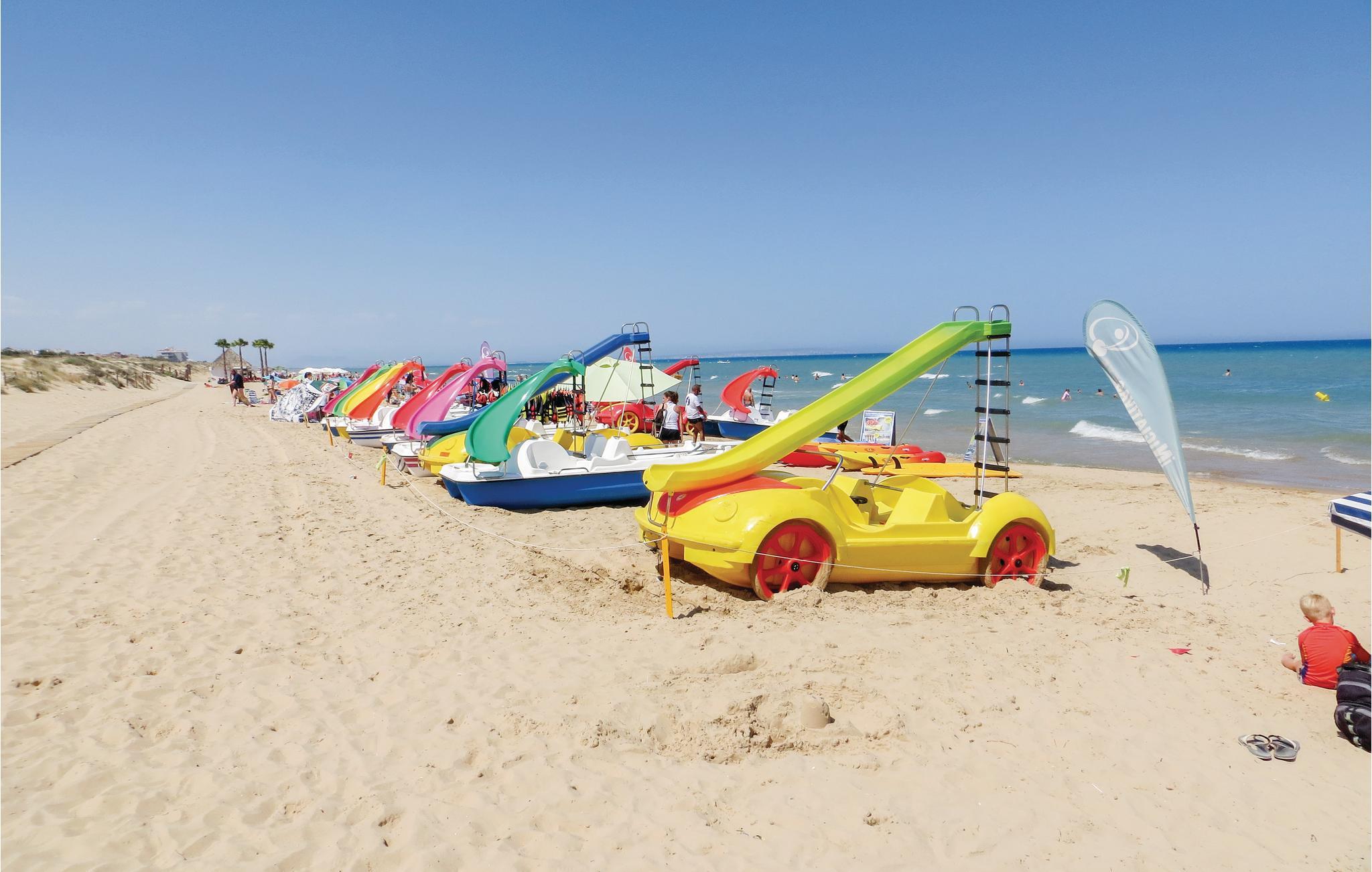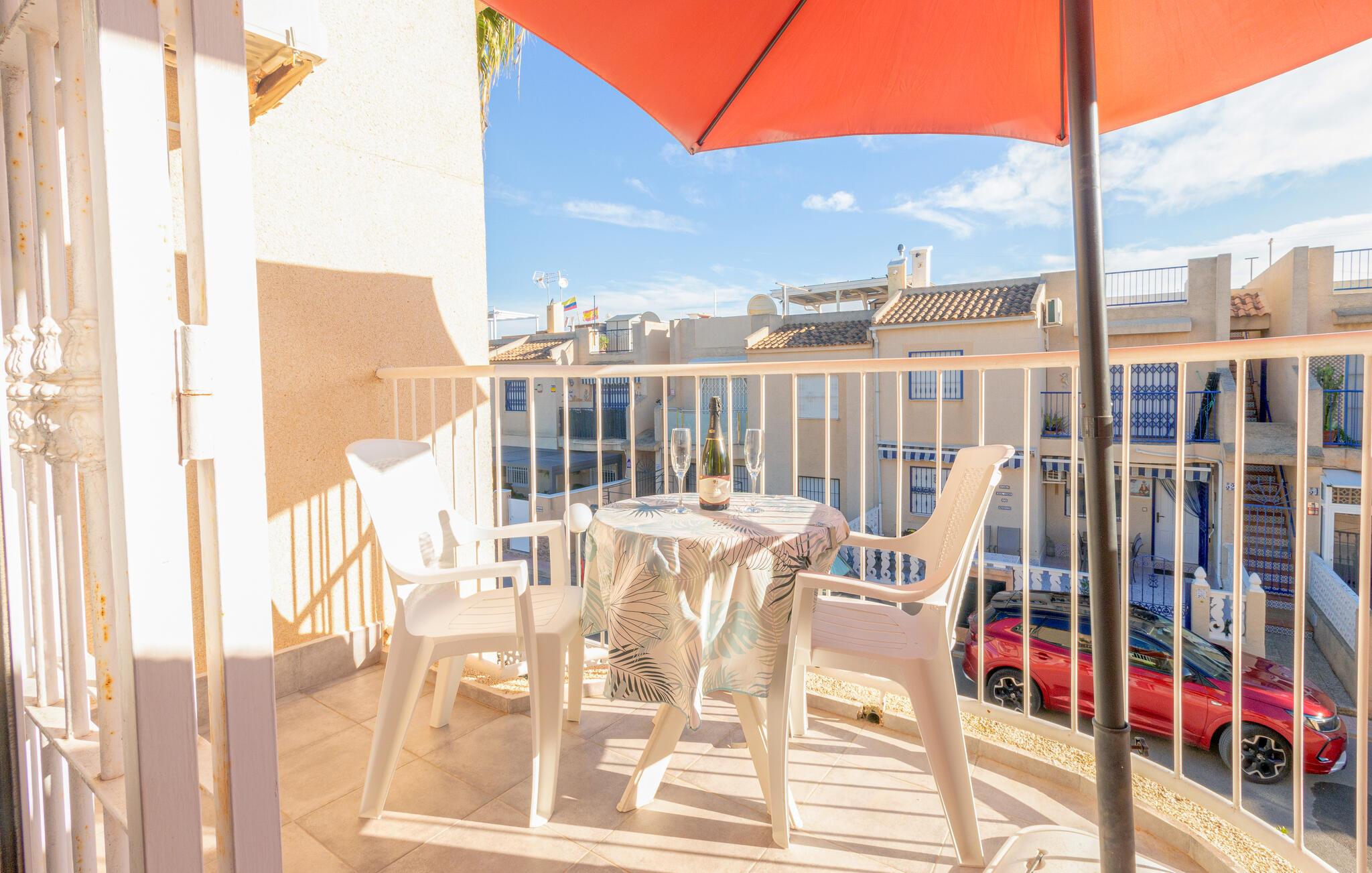 Herfra er der gode busforbindelser ind til Torrevieja, som klart er et besøg værd. I har alle indkøbsmuligheder, restauranter og cafeer kun 1-2 km fra boligen. Der er en stor dejlig solterrasse, hvor I kan nyde de varme dage. Bliver det for varmt, kan I køle i den indbydende store fælles swimmingpool. Her kan I få mange gode timer ti lat gå med fødderne i vandet.
