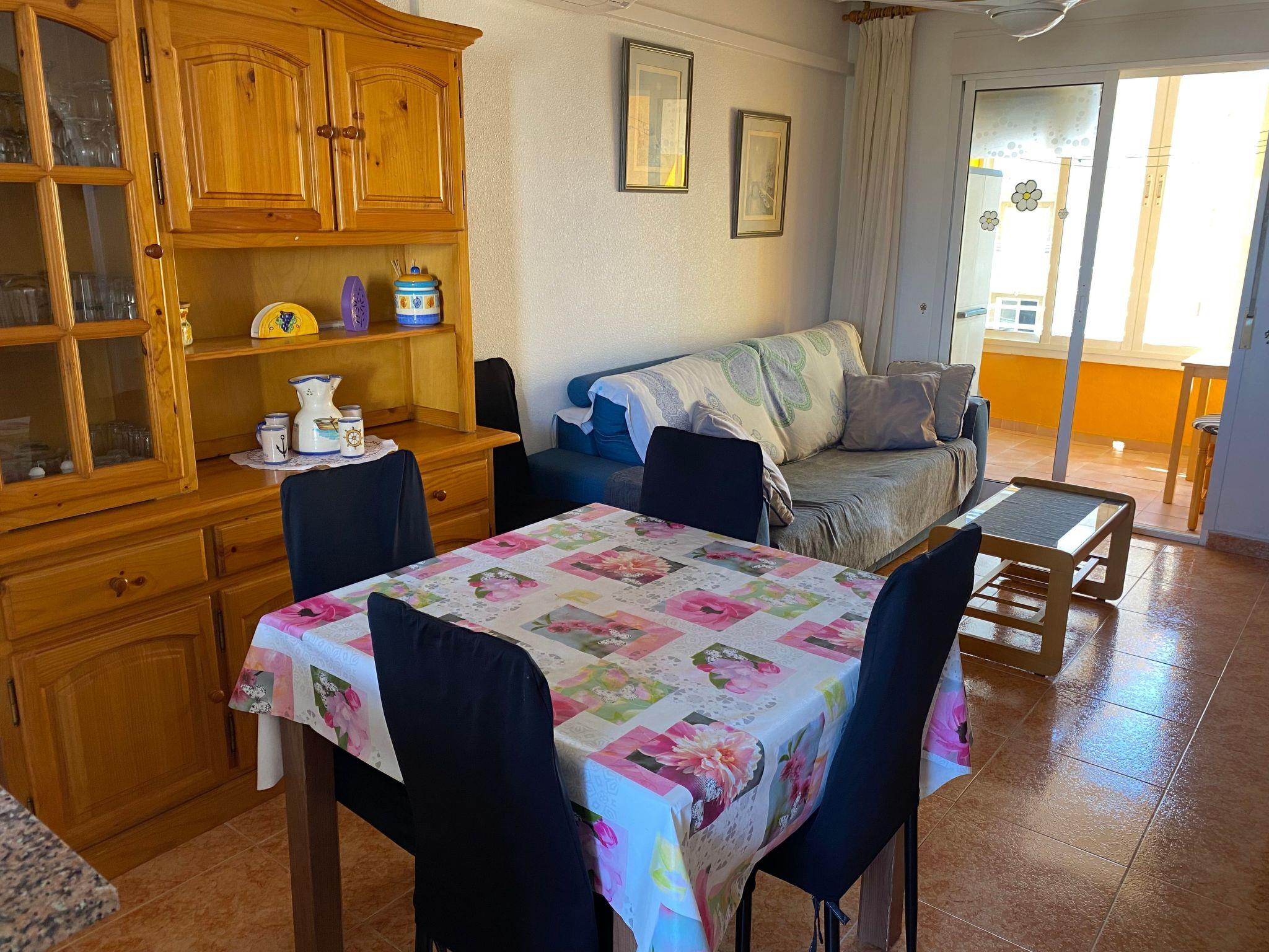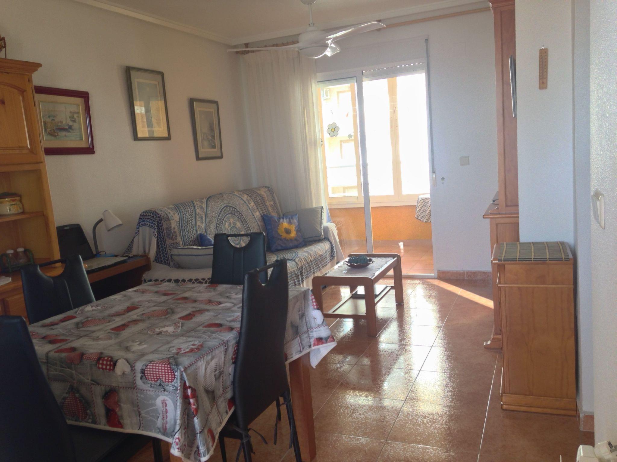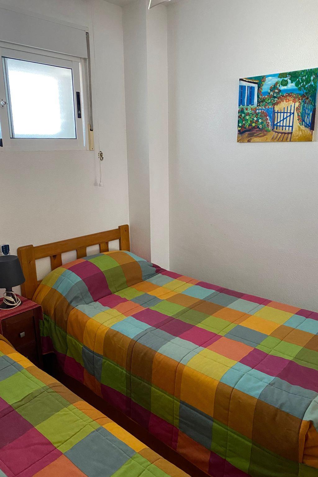 Flat with swimming pool,2 lifts,1800m from the beach,6 people max, wifi free and telesat TV Apartment Alicante Torrevieja with free internet and wifi, swimming pool, lift and communal solarium,5? floor 15 minutes walk from the sea. Easy access for disabled without wheelchair, small pets accepted. Quiet location, few people living in the building all year round. Close to shops, town centre, restaurants, bus stops and Friday morning market. Community pool and solarium, enclosed balcony with sliding windows. Electric barbecue on the balcony. Two sun loungers for sunbathing by the pool.