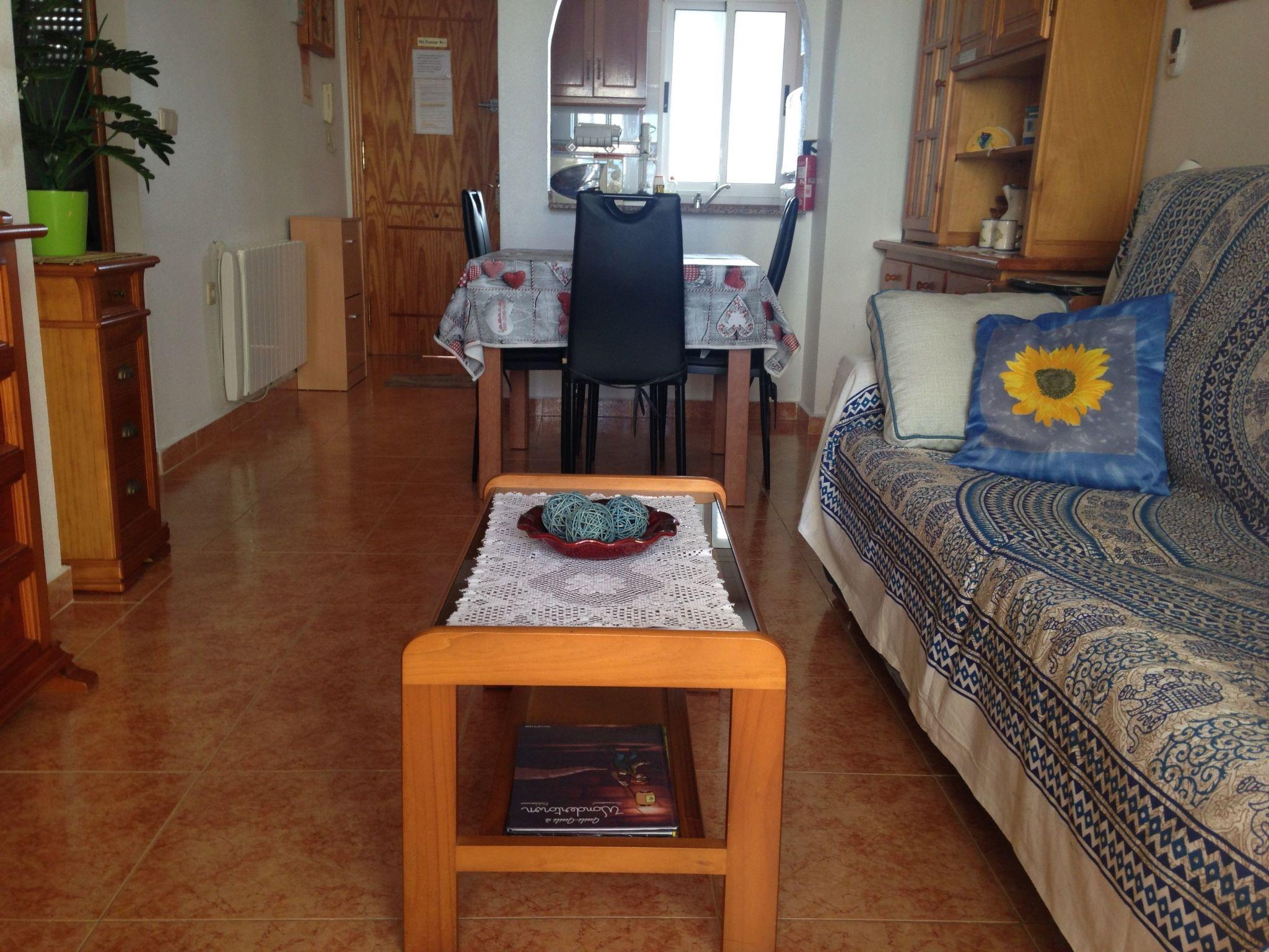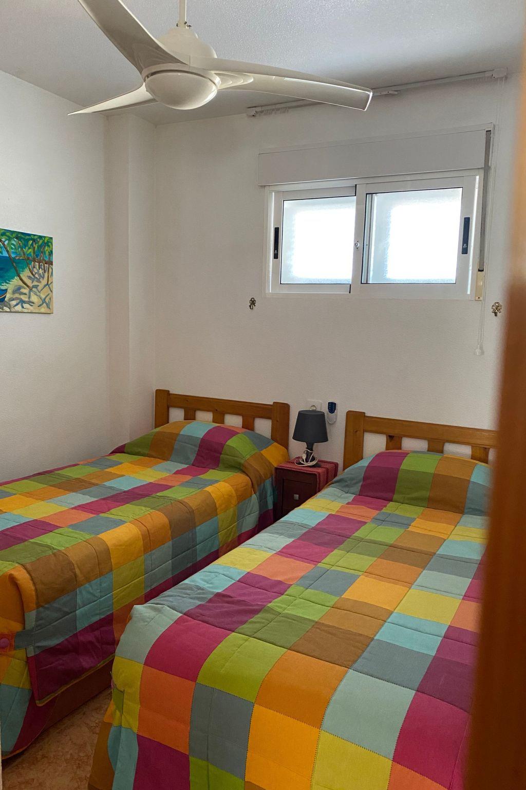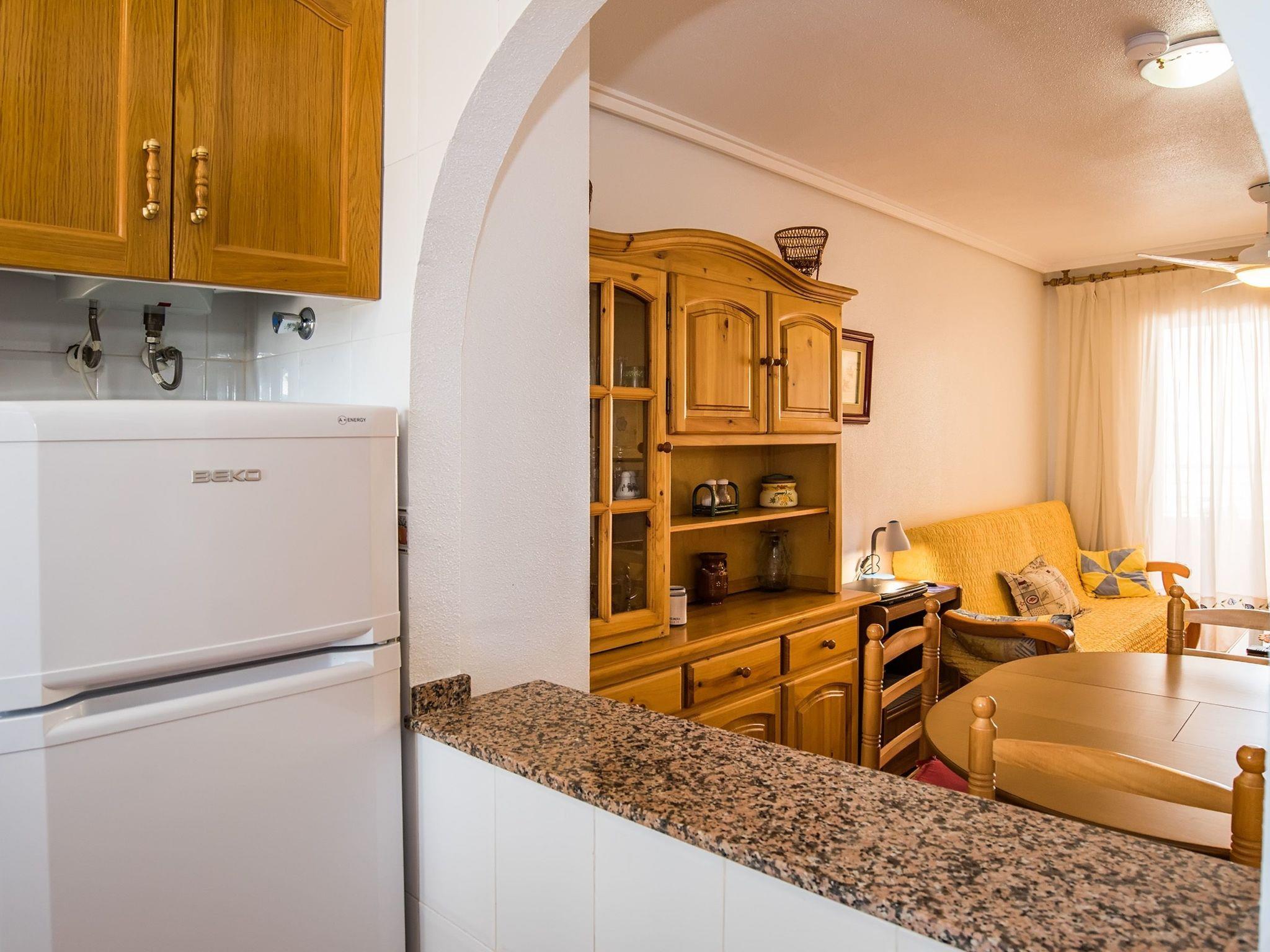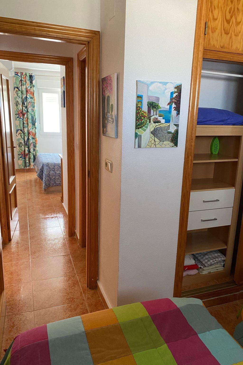 Flat with swimming pool,2 lifts,1800m from the beach,6 people max, wifi free and telesat TV Apartment Alicante Torrevieja with free internet and wifi, swimming pool, lift and communal solarium,5? floor 15 minutes walk from the sea. Easy access for disabled without wheelchair, small pets accepted. Quiet location, few people living in the building all year round. Close to shops, town centre, restaurants, bus stops and Friday morning market. Community pool and solarium, enclosed balcony with sliding windows. Electric barbecue on the balcony. Two sun loungers for sunbathing by the pool.