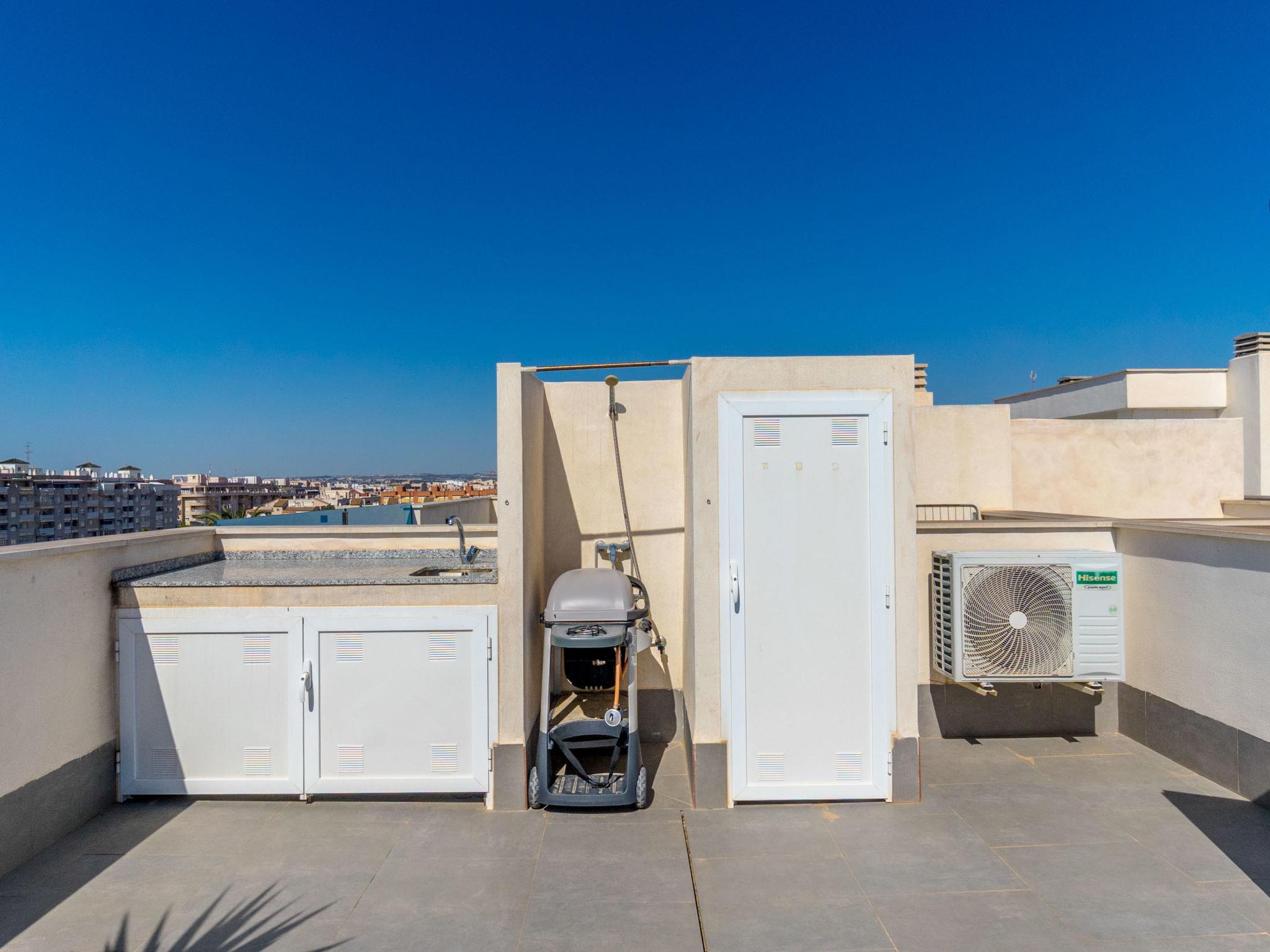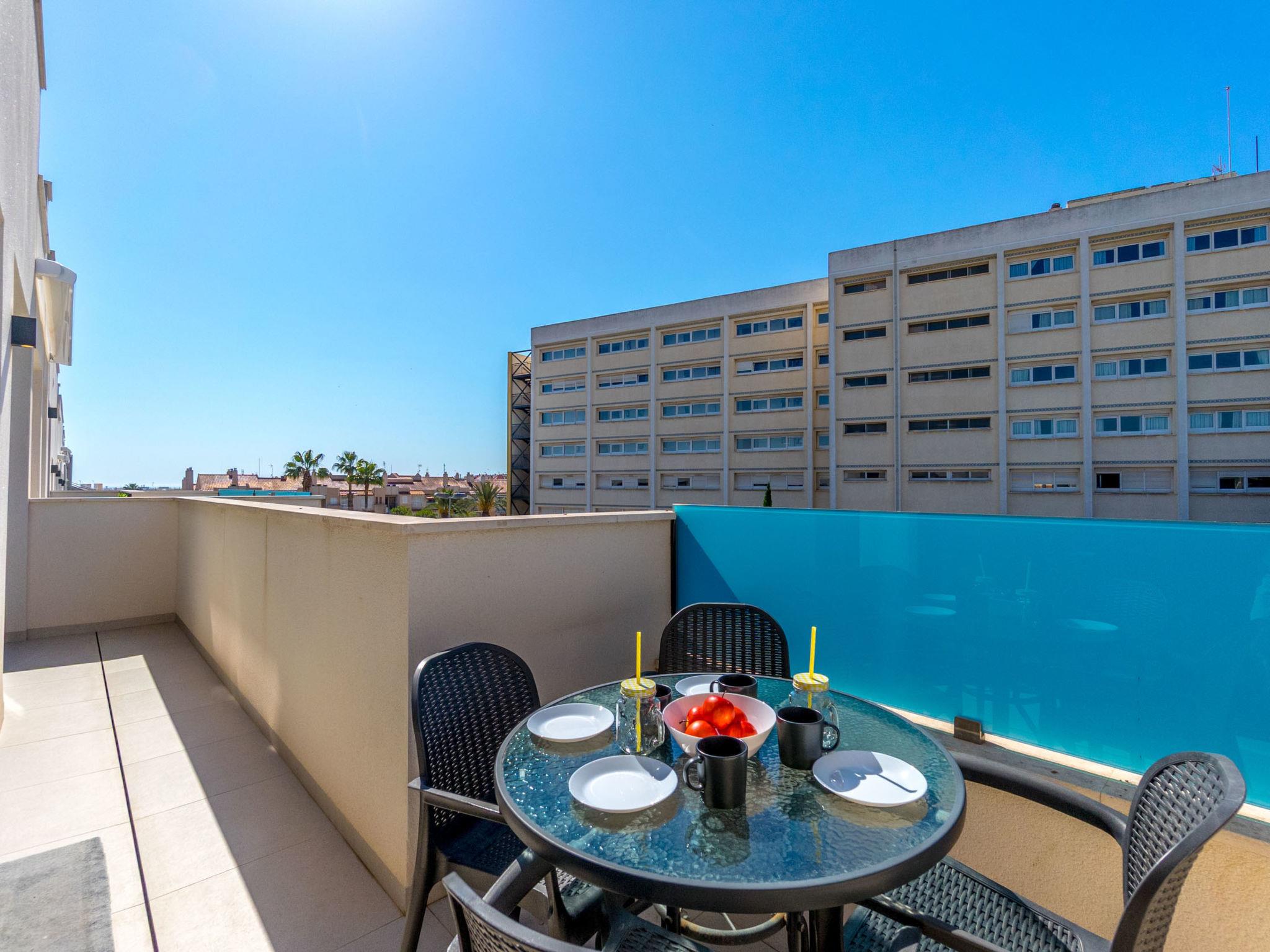 Beautiful apartment block "Cibeles III", 3 storeys. 700 m from the centre of Torrevieja, 9 km from the centre of La Zenia, 900 m from the sea, 900 m from the beach. For shared use: property (fenced), swimming pool (12 x 6 m, seasonal availability: 01.Jan. - 31.Dec.). Outdoor shower, terrace. Private: terrace, barbecue. In the house: lift, roof terrace. Shop, grocery, supermarket 210 m, restaurant 400 m, bus stop 500 m, sandy beach "Playa del Cura" 900 m. Sports harbour 2.5 km, marina 2.5 km, golf course (12 hole) 12 km. The owner does not accept any youth groups.
