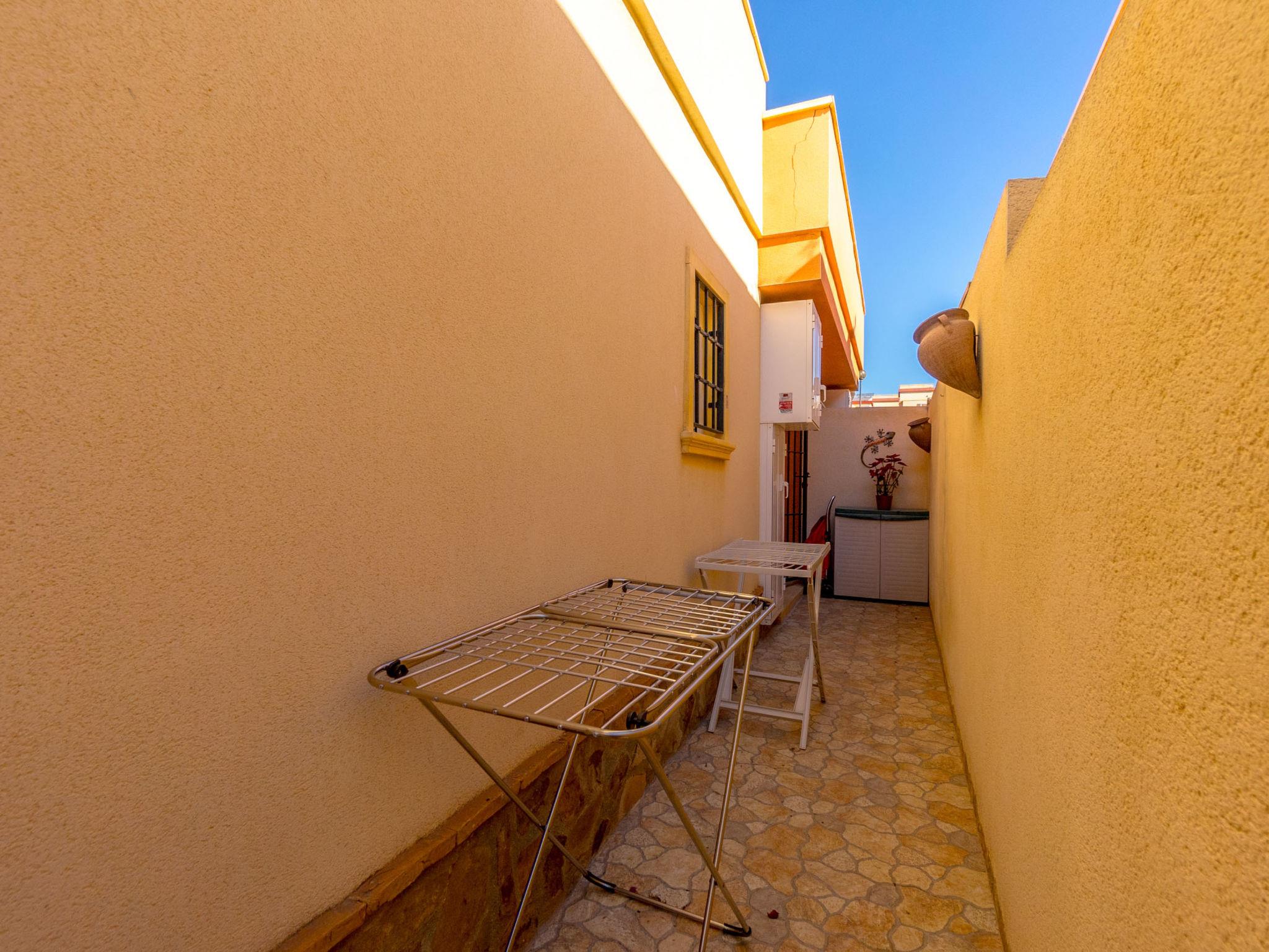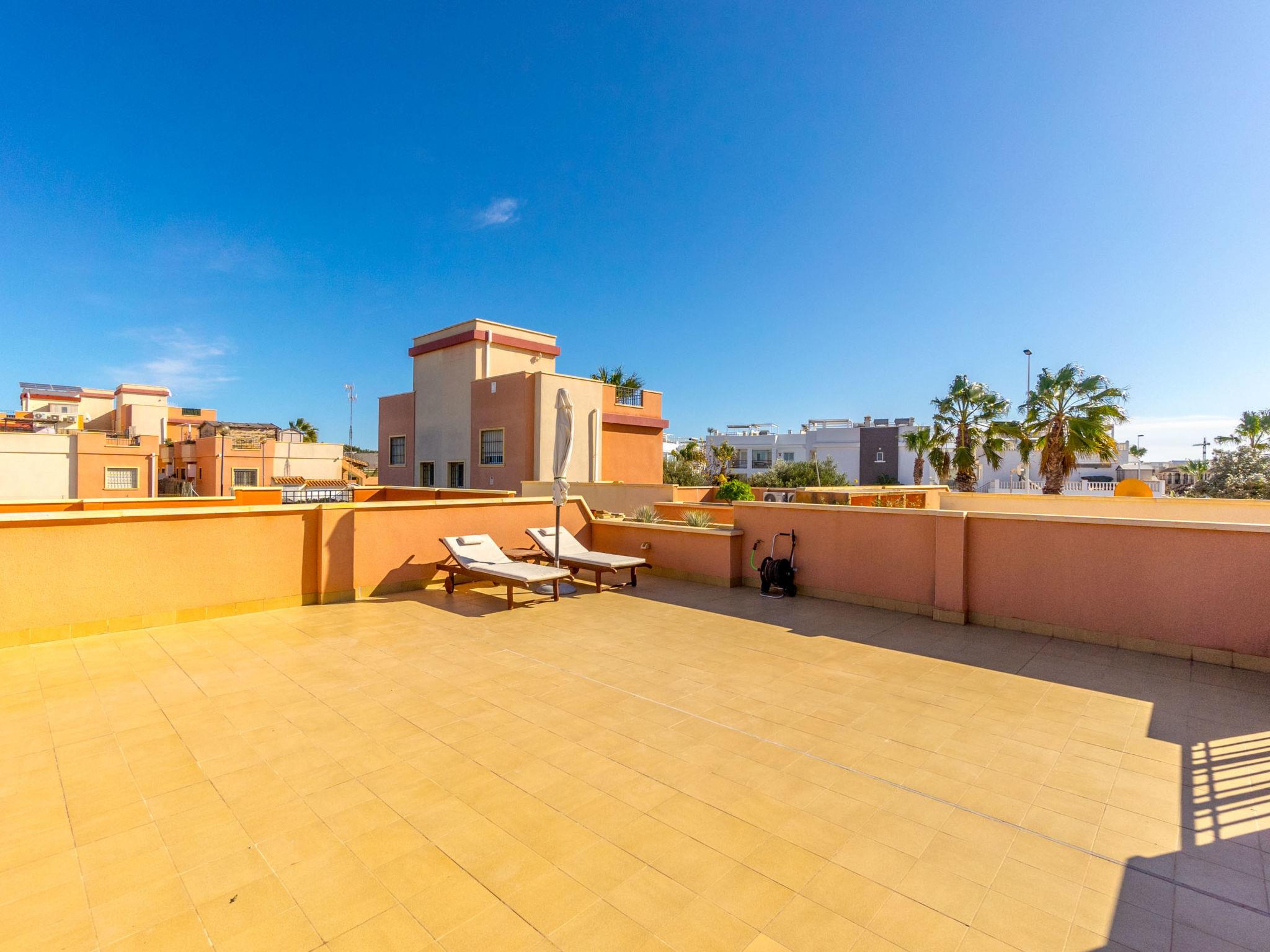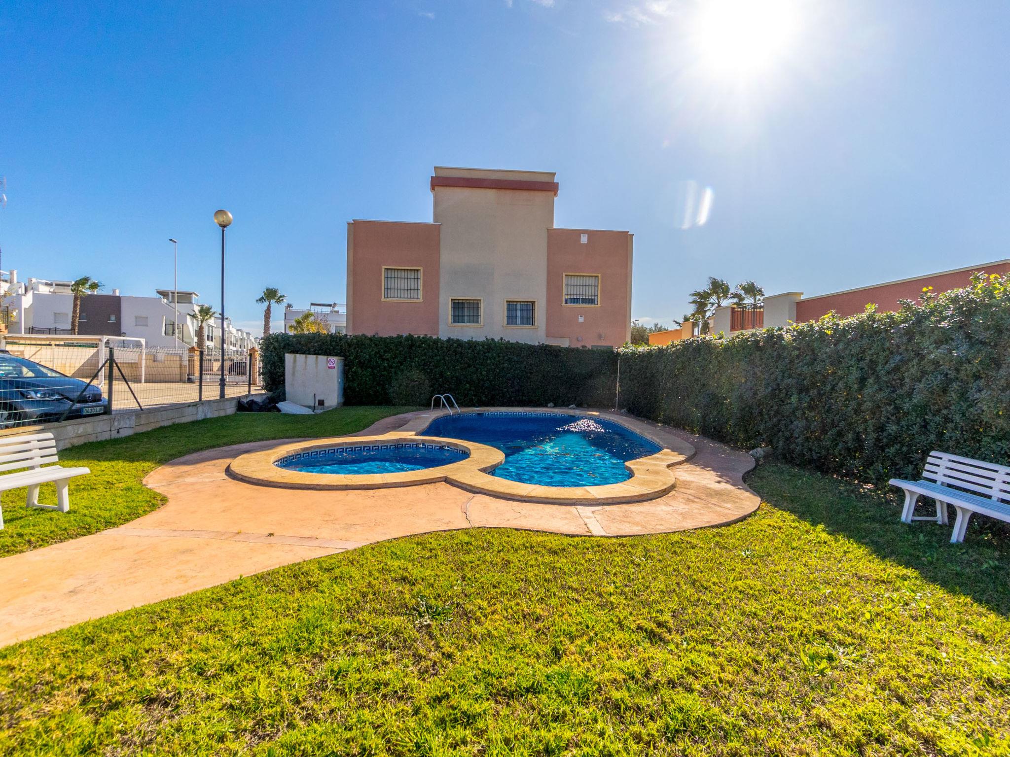 Beautiful semi-detached house "Residencial Villa Madrid". 5 km from the centre of Torrevieja, in a quiet, sunny position, 2 km from the sea, 2 km from the beach. For shared use: swimming pool (10 x 5 m, seasonal availability: 01.Jan. - 31.Dec.). Children's pool. Private: property (fenced). Terrace, barbecue. In the house: roof terrace. Parking on the premises. Supermarket, restaurant 500 m, bus stop 850 m, sandy beach "Playa de la Mata" 2 km. Sports harbour 6 km, golf course (18 hole) 15 km. Part of the house is closed and unoccupied.