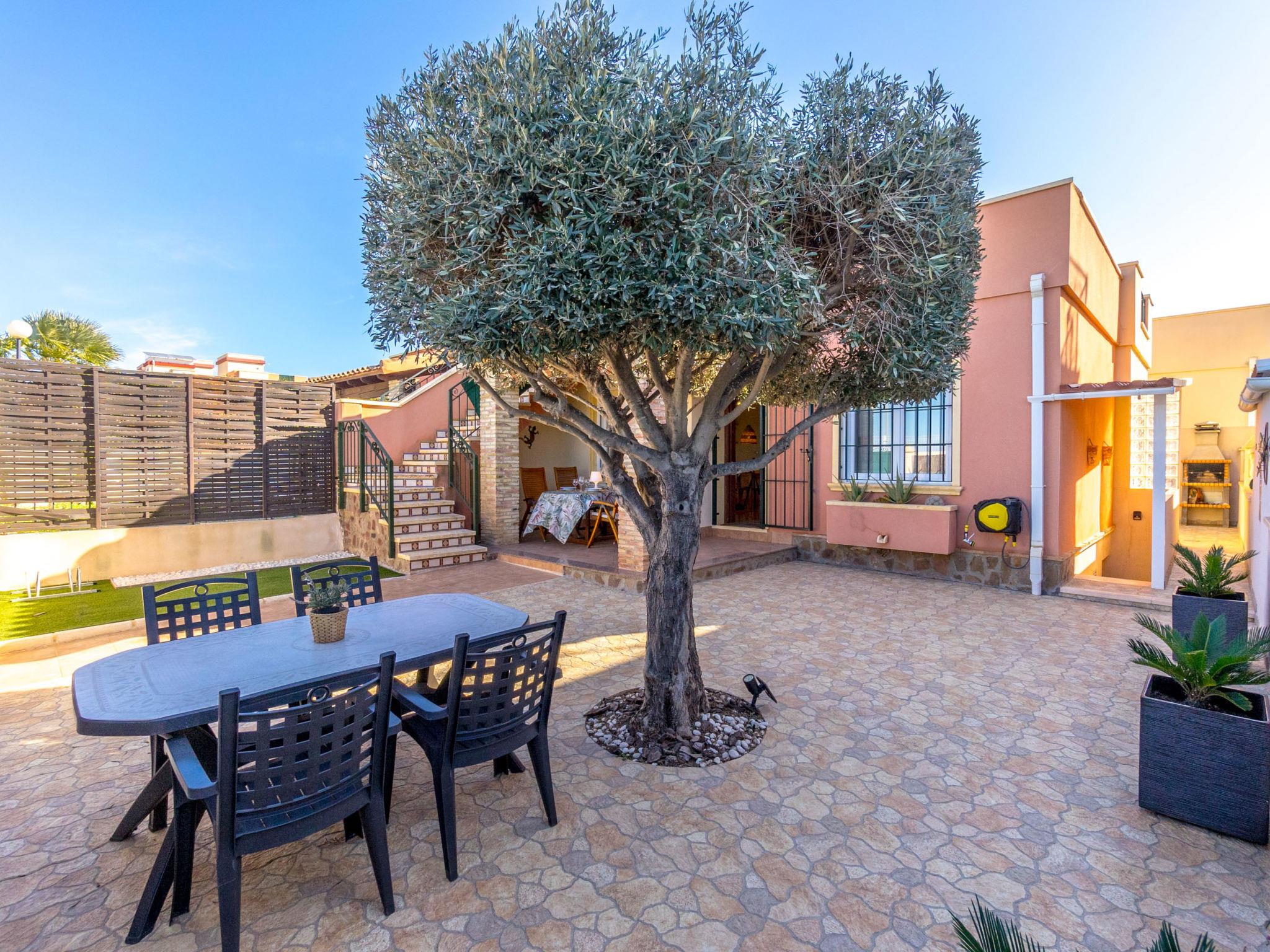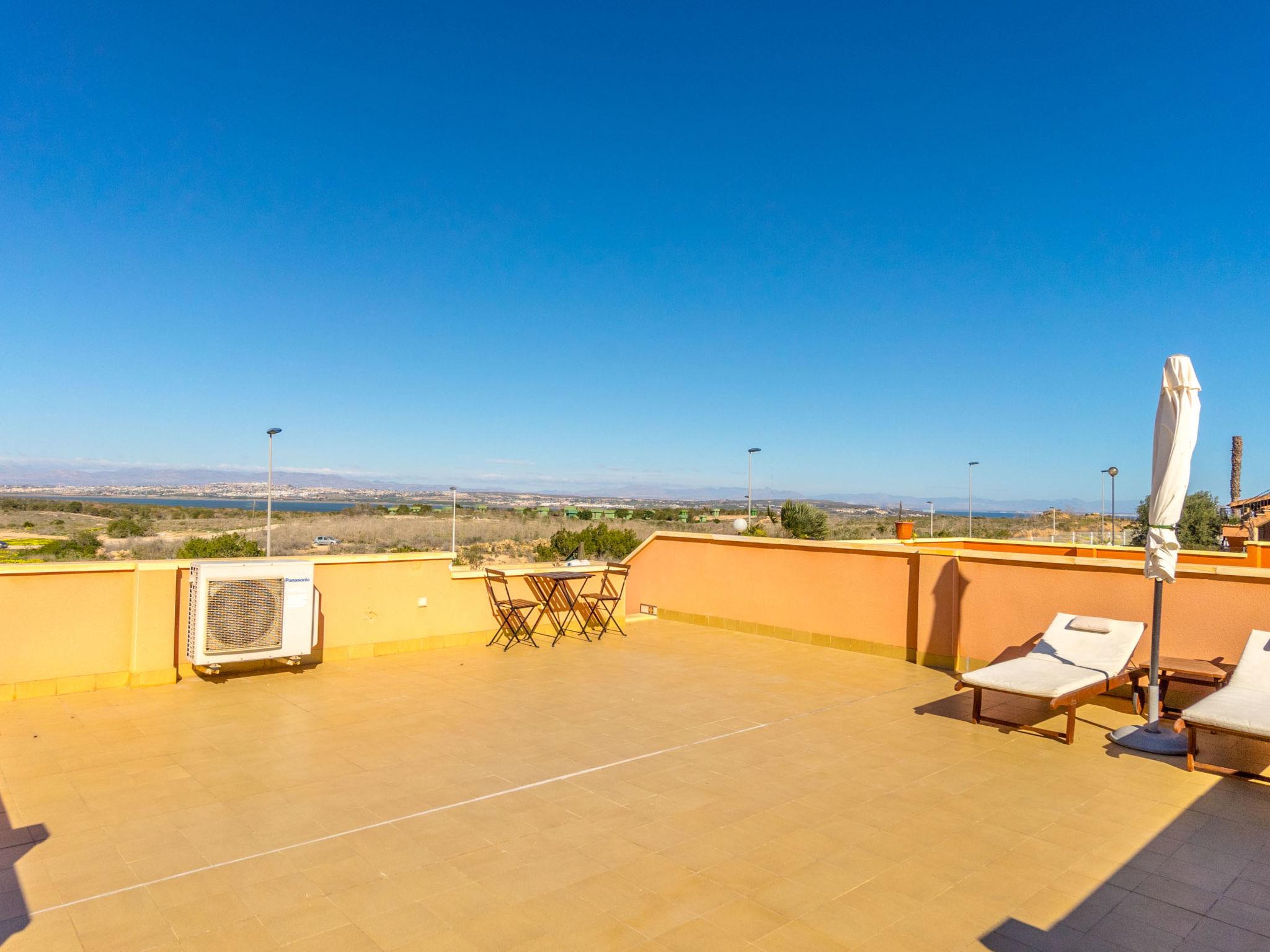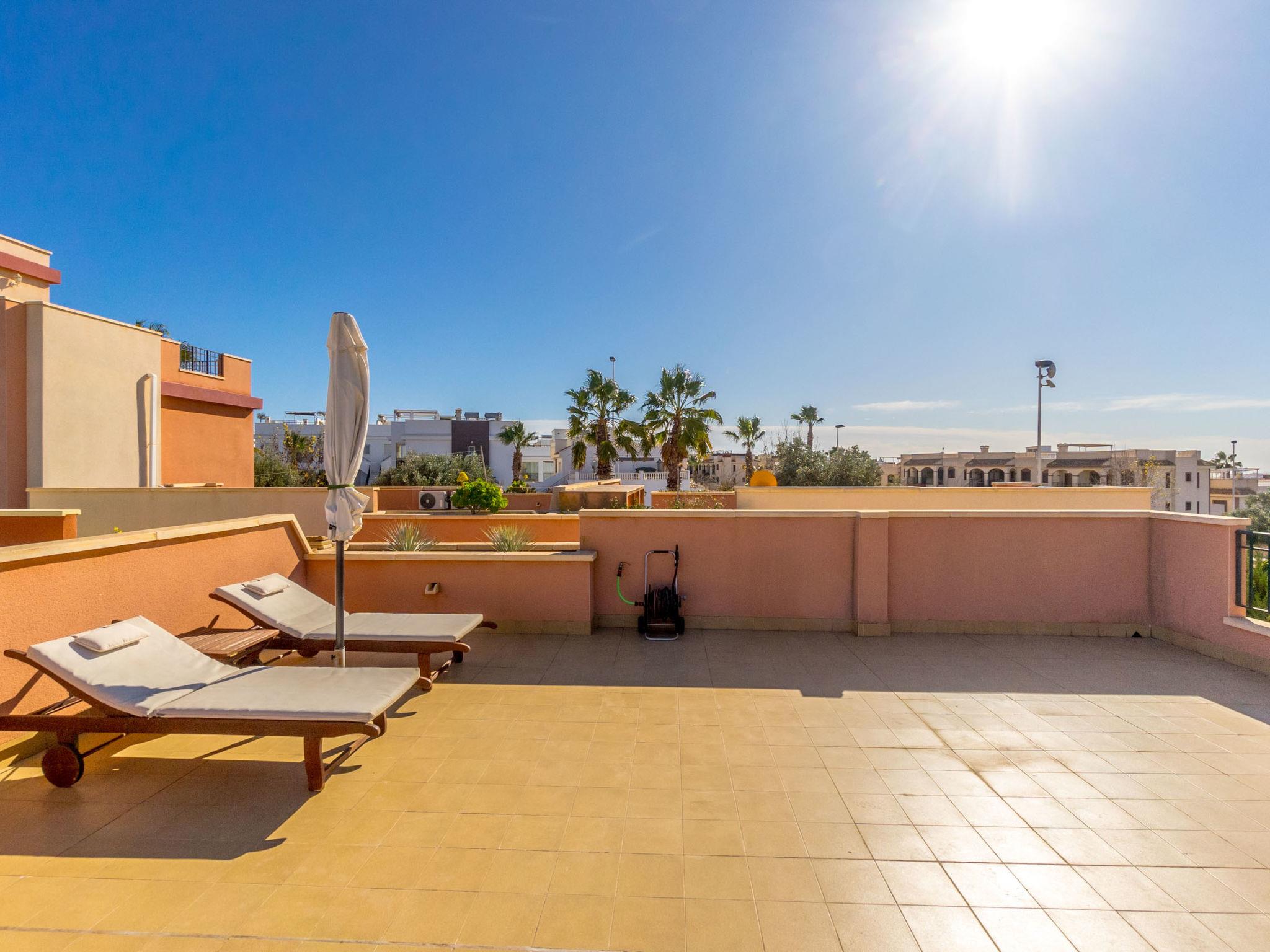 Beautiful semi-detached house "Residencial Villa Madrid". 5 km from the centre of Torrevieja, in a quiet, sunny position, 2 km from the sea, 2 km from the beach. For shared use: swimming pool (10 x 5 m, seasonal availability: 01.Jan. - 31.Dec.). Children's pool. Private: property (fenced). Terrace, barbecue. In the house: roof terrace. Parking on the premises. Supermarket, restaurant 500 m, bus stop 850 m, sandy beach "Playa de la Mata" 2 km. Sports harbour 6 km, golf course (18 hole) 15 km. Part of the house is closed and unoccupied.
