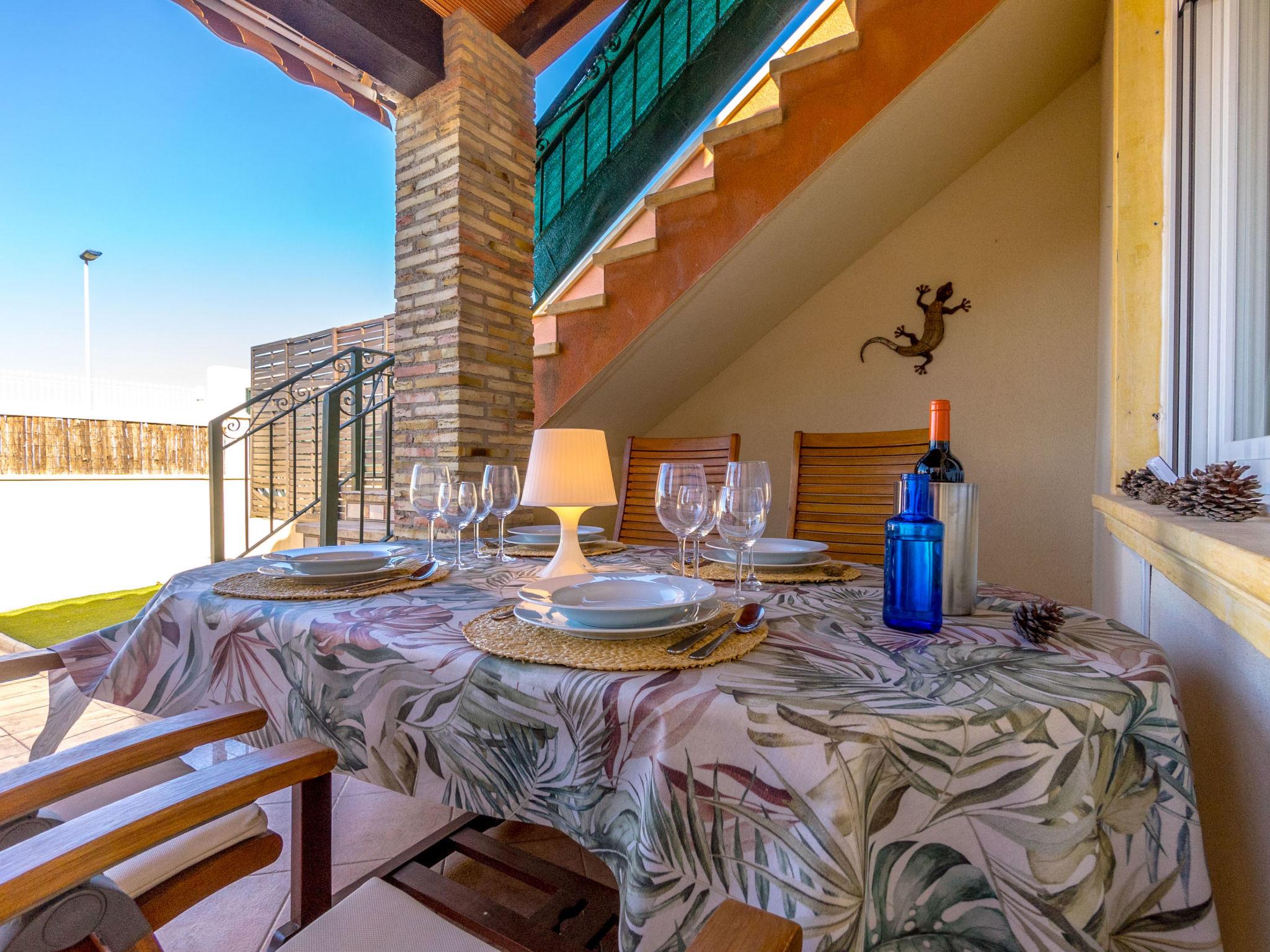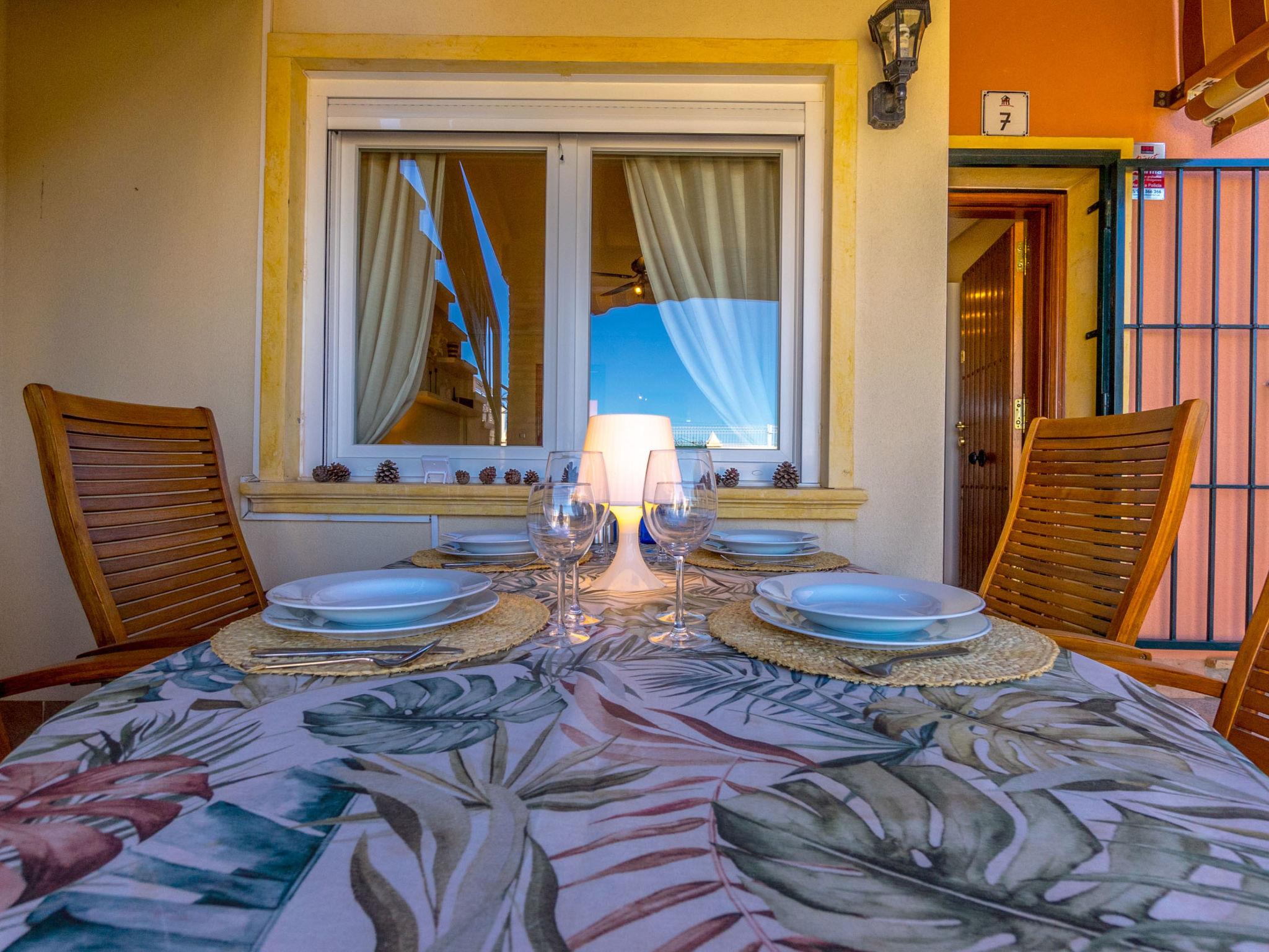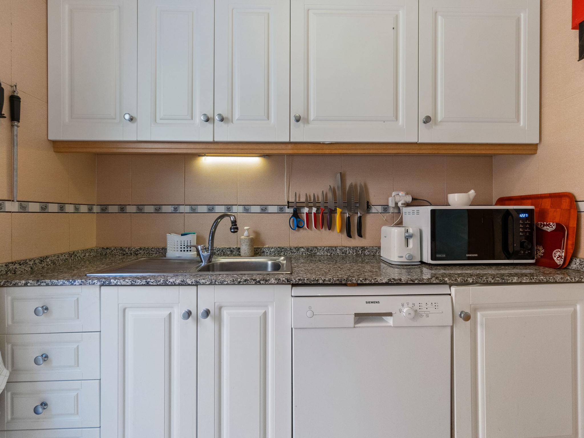 "Residencial Villa Madrid", 2-room semi-detached house 60 m2. Spacious and bright, beautiful and cosy furnishings: living/dining room with digital TV, air conditioning, fan and forced-air heating. Exit to the terrace. 1 room with 1 french bed (1 x 160 cm, length 200 cm), TV, air conditioning and forced-air heating. Kitchen (oven, dishwasher, 3 ceramic glass hob hotplates, toaster, kettle, microwave, electric coffee machine). Shower/bidet/WC. Large terrace. Terrace furniture, barbecue. View of the resort. Facilities: washing machine, iron, baby cot for up to 2 year olds, hair dryer. Internet (WiFi, free). Parking. Please note: non-smoking house. VT-441606-A // Reg. Nr.: ESFCTU00000305200087999200000000000000000VT-441606-A4