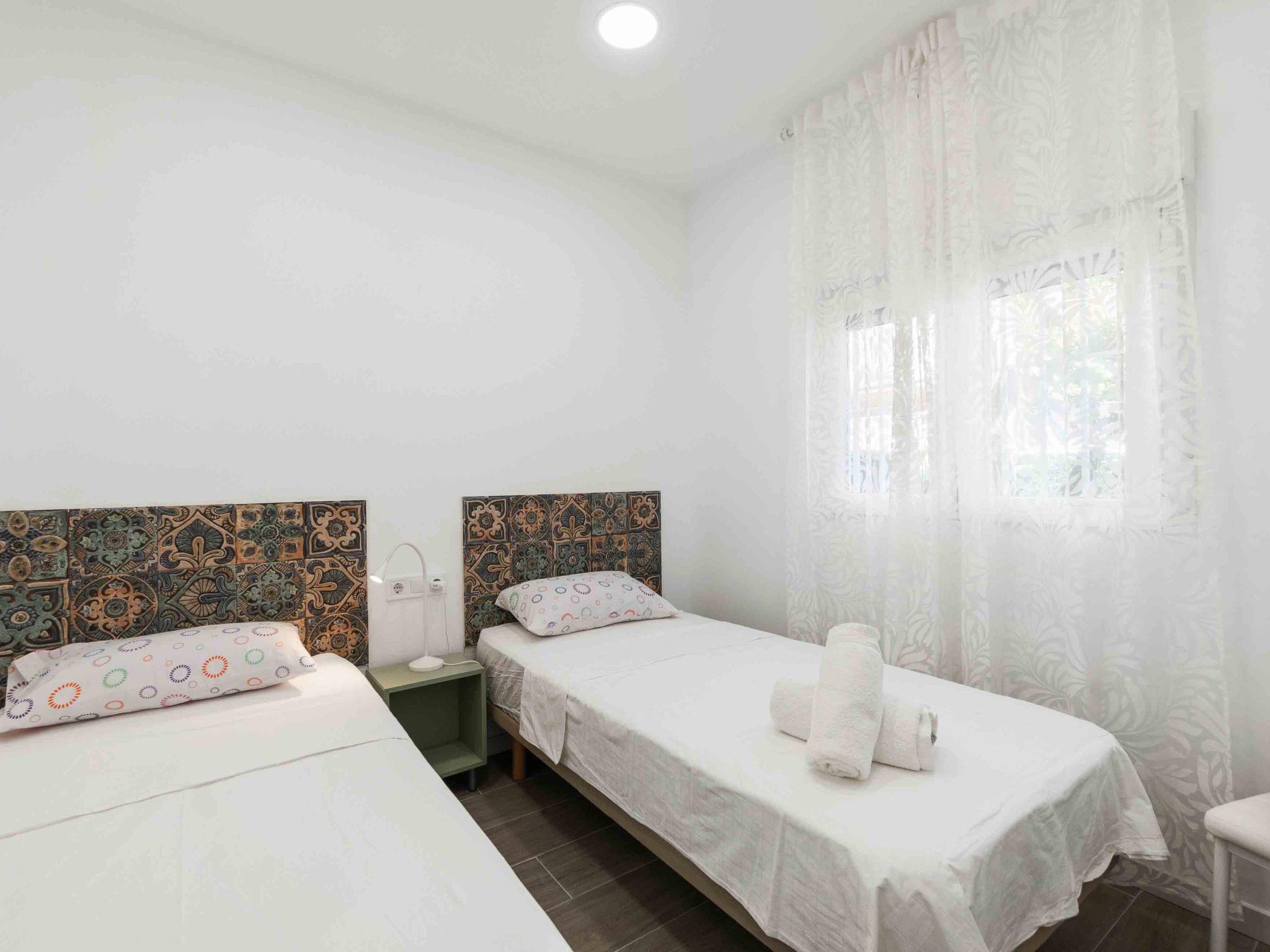 "Elena", 3-room terraced house 66 m2. Bright, renovated in 2023, comfortable and beautiful furnishings: living/dining room with digital TV, air conditioning and forced-air heating. Exit to the terrace. 1 room with 1 french bed, air conditioning and forced-air heating. 1 room with 2 beds. Kitchen (oven, 4 ceramic glass hob hotplates, toaster, kettle, microwave, electric coffee machine). Shower/WC. Terrace. Barbecue. Facilities: washing machine, iron, hair dryer. Please note: non-smoking house. CV-VUT0519643-A // Reg. Nr.: ESFCTU0000030590002154090000000000000000VUT0519643-A5