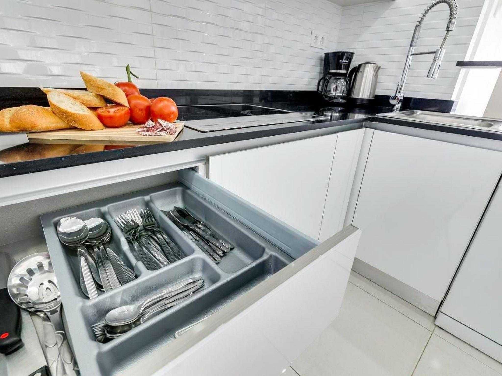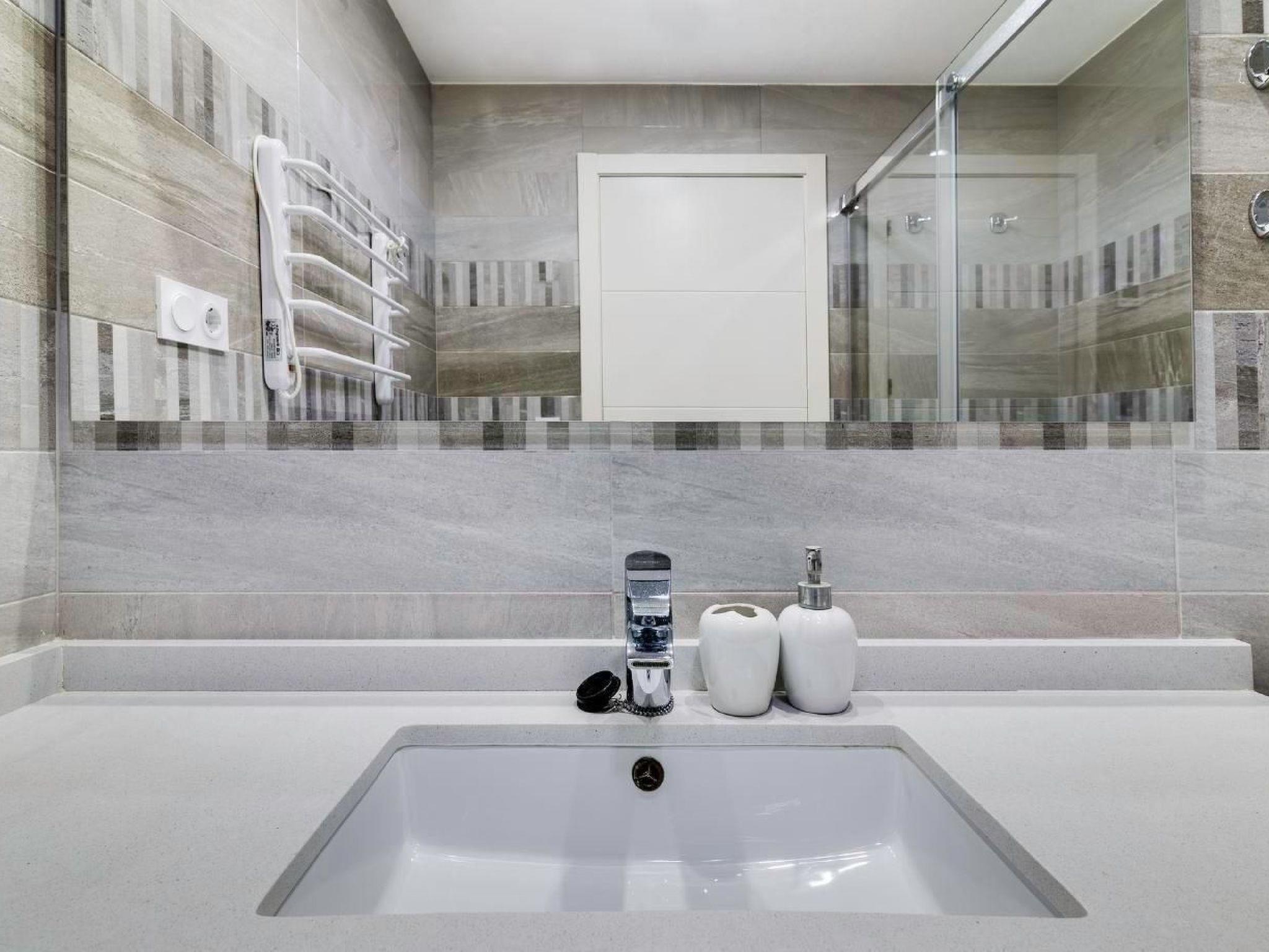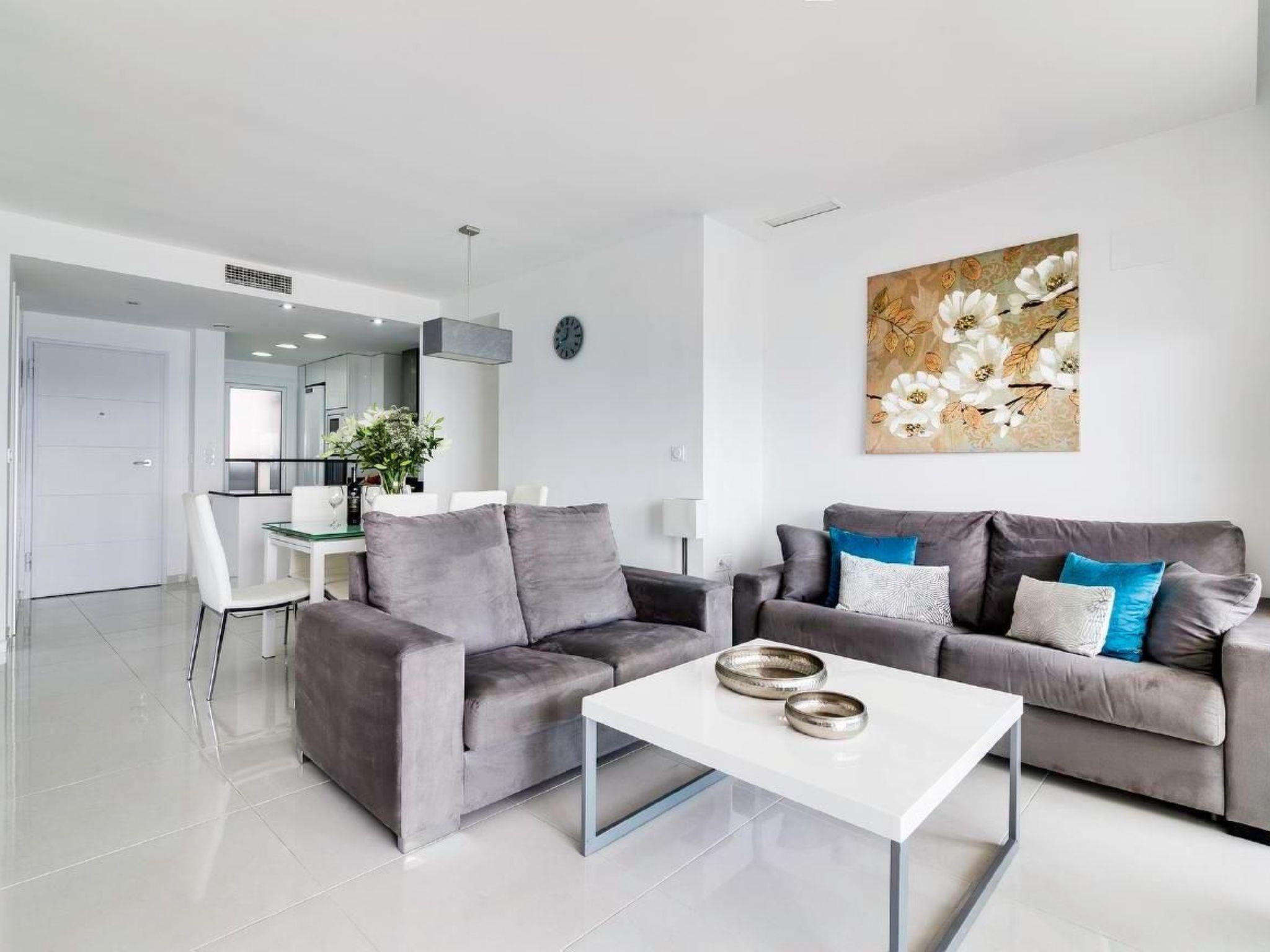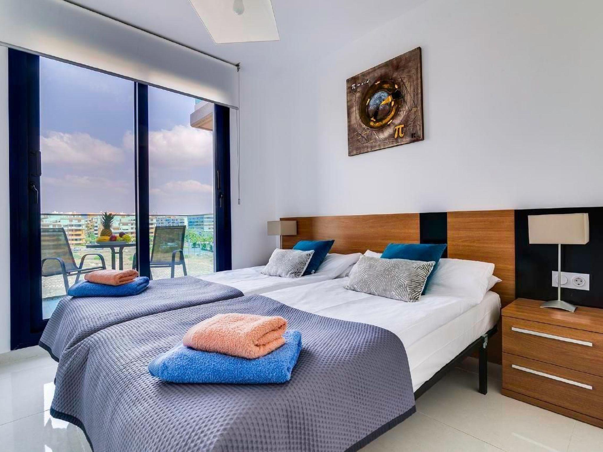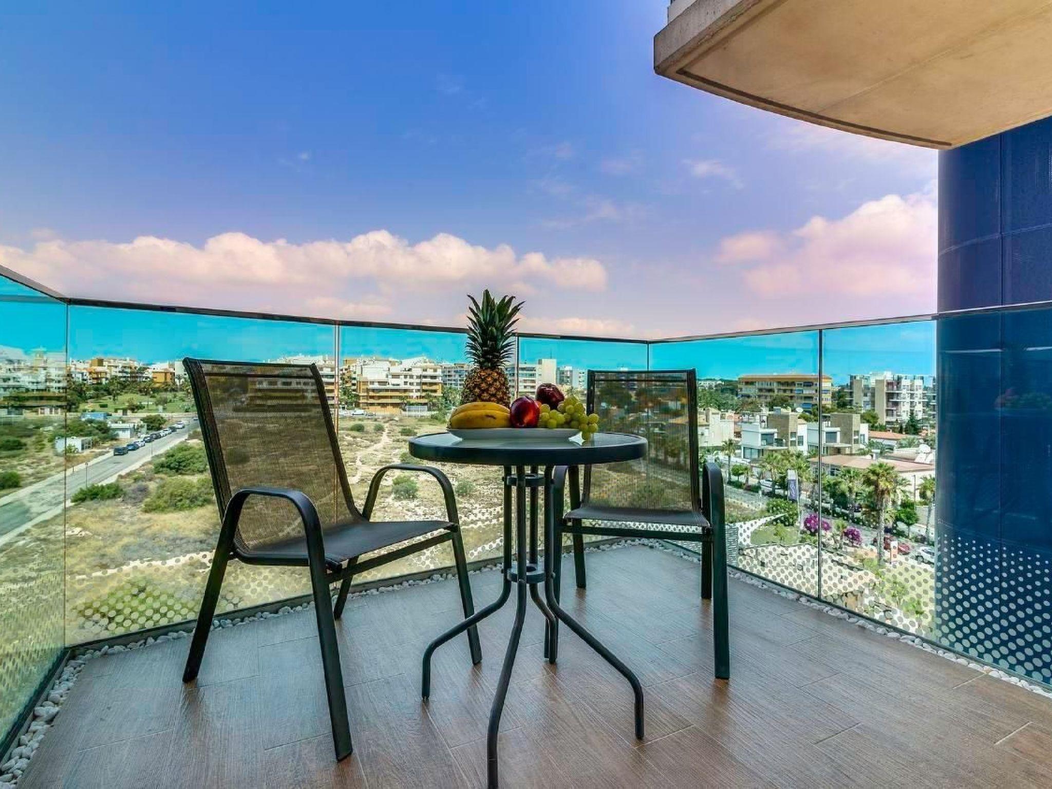 The Sea Senses complex is located in Punta Prima, just 5 km from Torrevieja and directly by the sea. In the area you will find several shopping centres, grocery shops, numerous restaurants, a pharmacy and a public gym. The flat is located on the sixth floor (there is a lift in the building). It has been designed to allow 4 people to spend their holidays comfortably. The high-quality holiday flat is fully equipped and has air conditioning, TV and Wi-Fi. In the living room there is a sofa bed that can sleep 2 people. Then there are two bedrooms - each with its own door to the terrace, two bathrooms and a well-equipped kitchen with an adjoining small laundry room. There is also an underground garage with private parking. Another highlight are the two terraces, from which one can enjoy breathtaking sunrises and sunsets over the sea. Within the supervised complex, guests can enjoy various swimming pools with slides, four Jacuzzis, an air-conditioned gym with panoramic sea views, a Finnish sauna and Turkish bath, a padel court and a basketball court. There is also a ping-pong table, a playground and a children's playhouse.