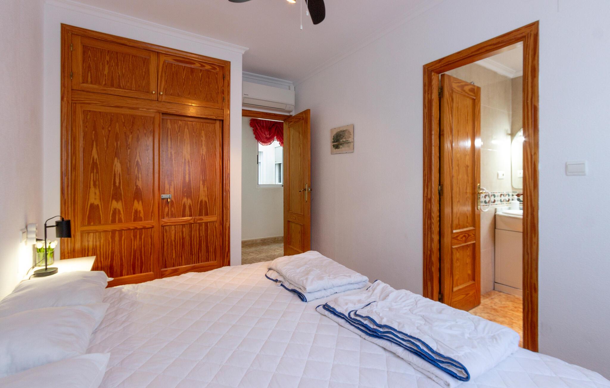 Den lyse, attraktive lejlighed har en optimal beliggenhed nogle få skridt fra stranden og mange aktivitetsmuligheder. Den hjemlige indretning og livlige farveskala giver jer gode rammer til at slappe af. Efter en skøn feriedag kan I sidde hyggeligt sammen i stuen og lægge planer for de næste par dage.