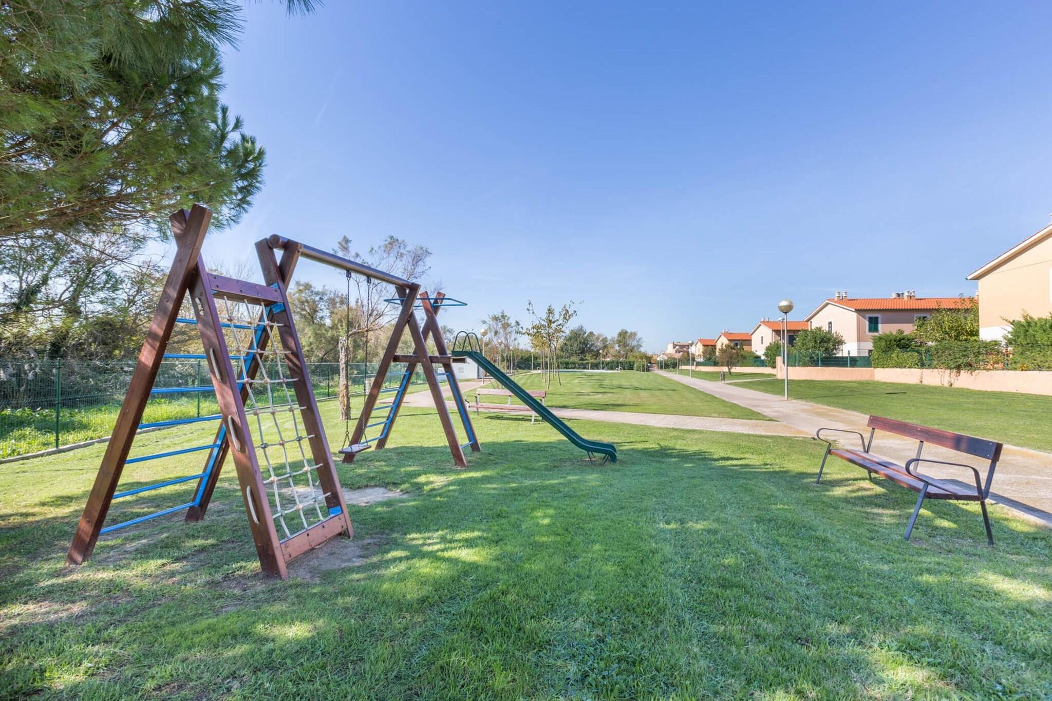 Denne charmerende villa med 3 soveværelser, beliggende i et roligt boligkompleks, ligger kun 100 meter fra den fredelige og maleriske strand i Pals. Villaen er ideel til en familieferie og tilbyder et fredfyldt miljø med en fælles have, swimmingpool og legeplads. Ejendommen er fordelt på to etager og kan rumme op til 6 personer. Stueetagen byder på en hyggelig stue med pejs, et tv og direkte udgang til en rummelig terrasse, perfekt til at nyde måltider og morgenmad i solen. Det fuldt udstyrede køkken omfatter en keramisk kogeplade, ovn, mikroovn, fryser, opvaskemaskine og alt nødvendigt bestik og køkkengrej. Ovenpå byder villaen på tre velindrettede soveværelser. Det store soveværelse har en dobbeltseng (150x190cm), et en-suite badeværelse med badekar og en privat balkon. De to ekstra soveværelser er indrettet med to enkeltsenge hver (90x190cm). Der er også et andet badeværelse med bruser og vaskemaskine samt et ekstra toilet for nemheds skyld. Villaen er perfekt til familier og giver et fredeligt tilflugtssted med moderne bekvemmeligheder. Den lange sandstrand i Pals, kun få skridt væk, er perfekt for familier, der tilbyder muligheder for vandsport, gåture og nyde den naturskønne udsigt over Medes-øerne. Det omkringliggende område omfatter også Platja del Grau, en rolig strand med lavt vand, og Platja Gran, som byder på en dybere oplevelse med grovere sand. Ejendommen ligger 15 minutter i bil fra byens centrum, med lokale supermarkeder og restauranter i nærheden.