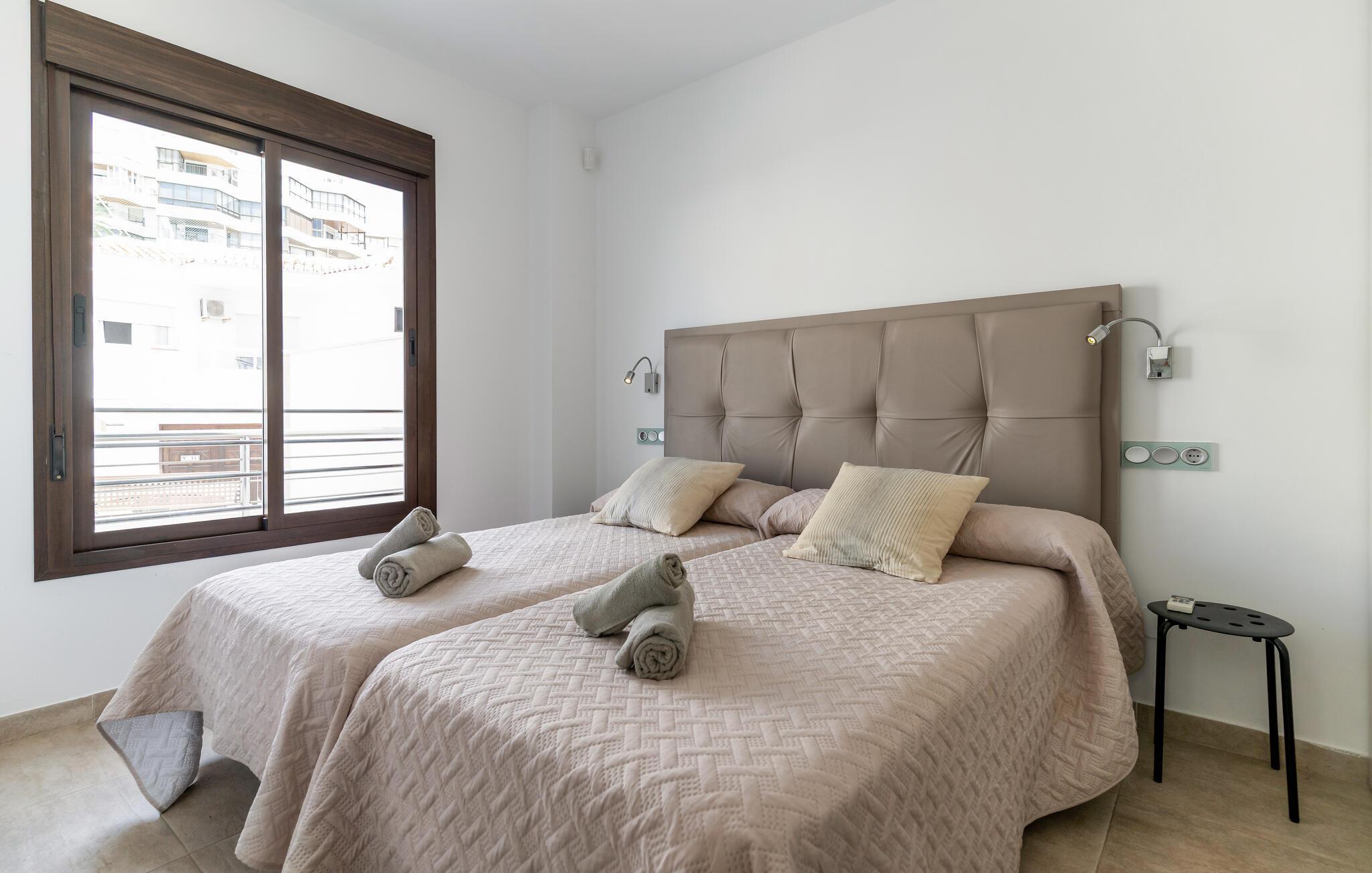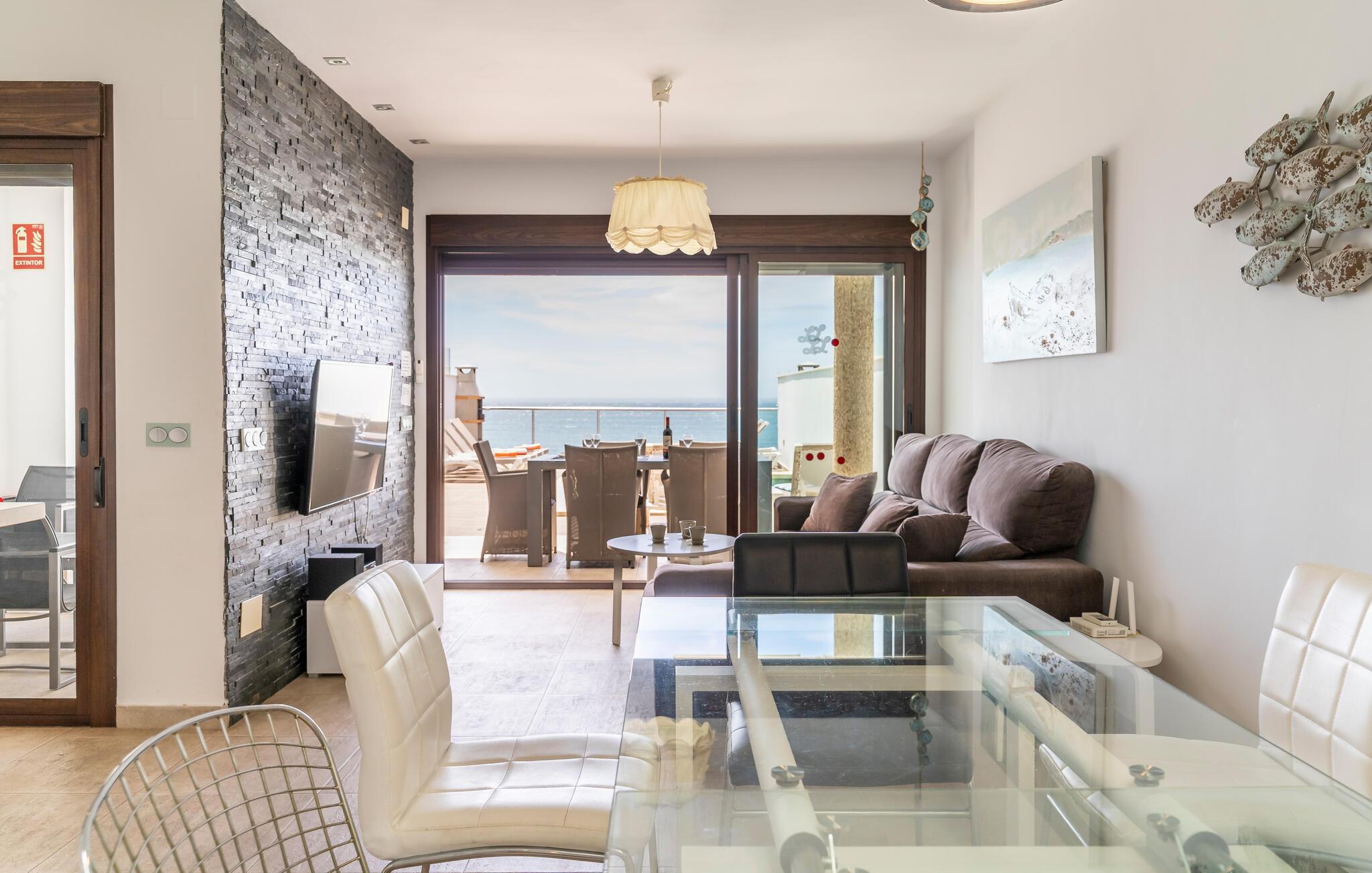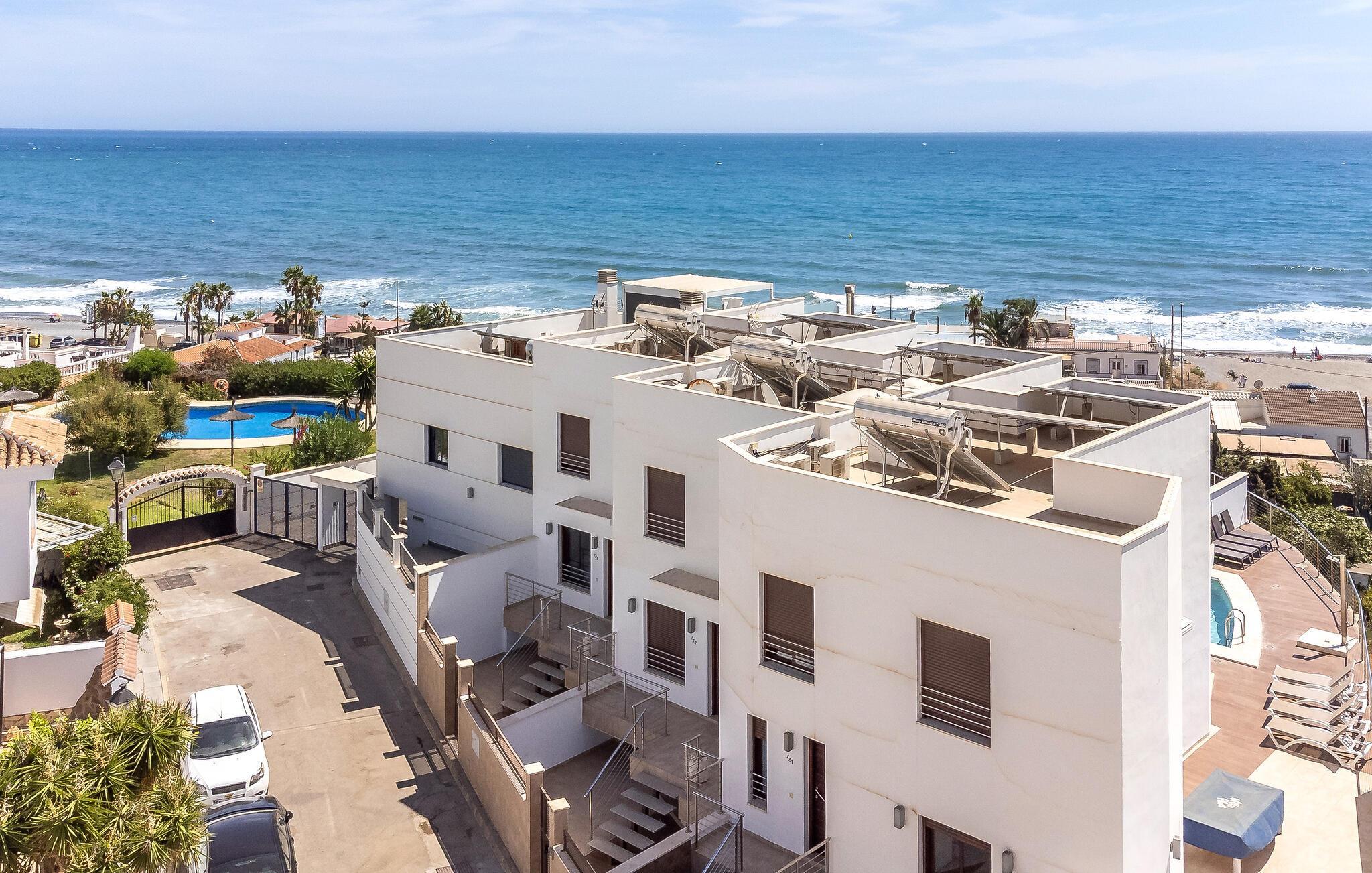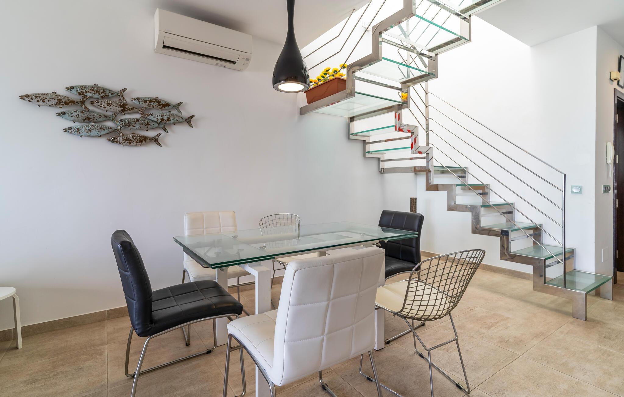 Kun få skridt fra sandstranden byder dette moderne og rummelige rækkehus jer velkommen, hvor I kan slappe af fra hverdagen med den beroligende havbrise. Tilbered lækre tapas og middelhavsretter med venner, glæd jer til hyggelige måltider, og saml jer til en hyggelig filmaften på den behagelige sofa efter en lang dag i solen.