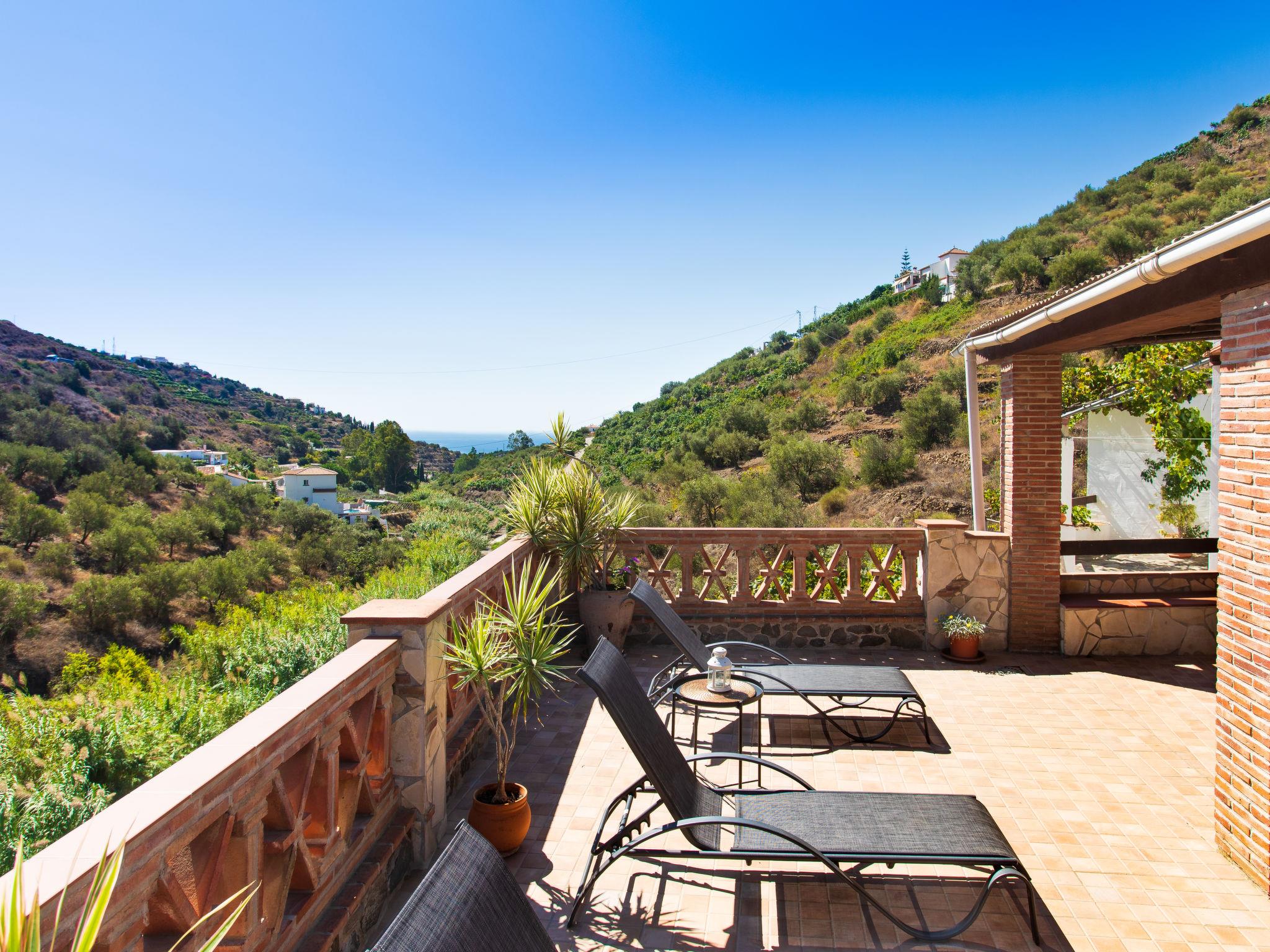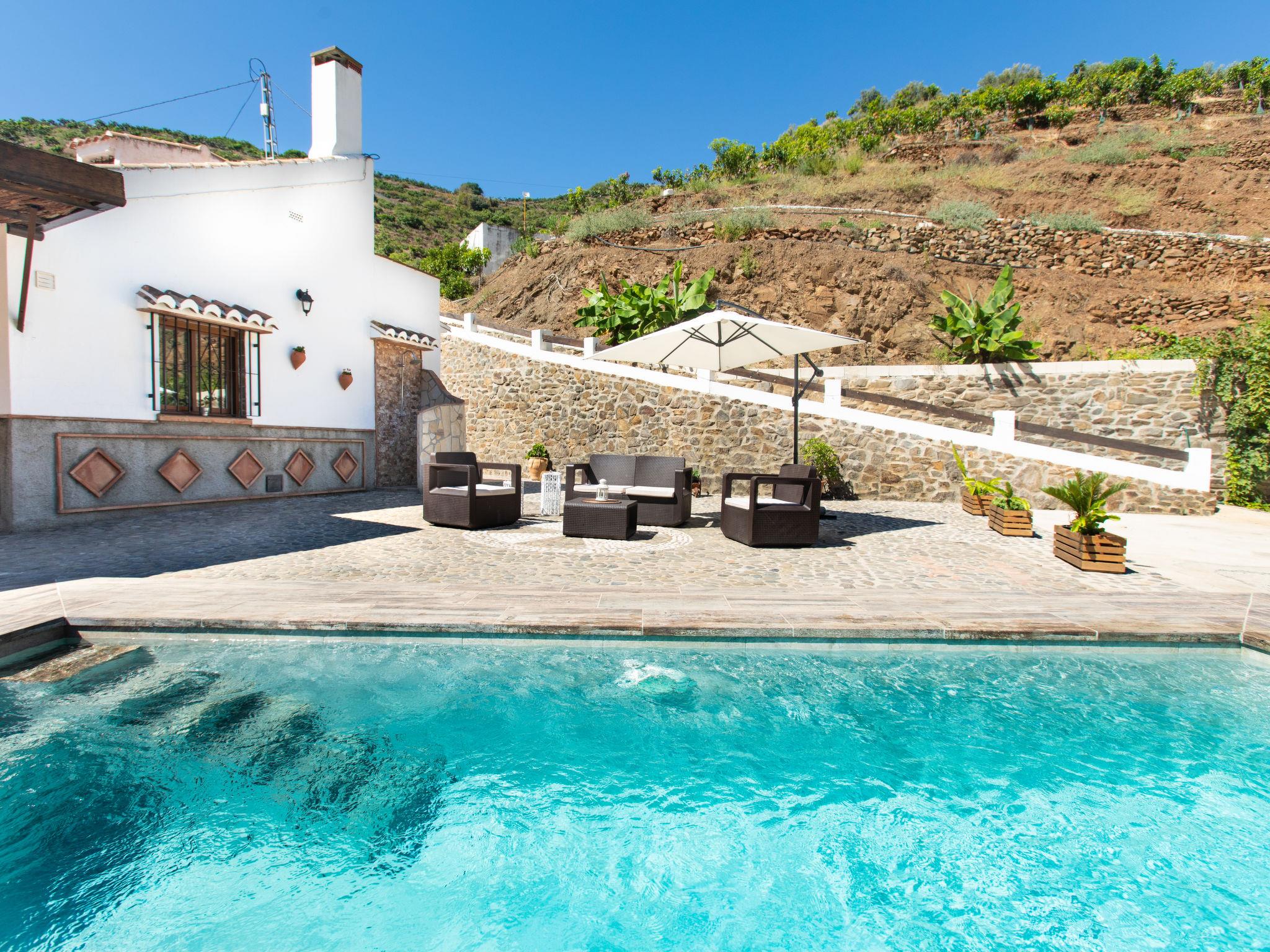 Torrox: Beautiful, cosy house "Saeta". 6 km from the sea. For shared use: table tennis. Private: swimming pool angular (depth 100 - 160 cm, seasonal availability: 01.Jan. - 31.Dec.). Table tennis, arbour, pergola, barbecue. In the house: washing machine. Parking. Shop 4 km, grocery 4 km, supermarket 6 km, shopping centre 24 km, restaurant 4 km, bar 4 km, bakery 4 km, café 4 km, pedestrian zone 4 km, bus stop "Torrox" 4 km, sandy beach "El Peñoncillo" 6 km. Sports harbour 26 km, golf course (18 hole) 27 km, surf school 26 km. Nearby attractions: Frigiliana, Nerja, Competa, Torre del Mar, Periana, Malaga. Well-known ski regions can easily be reached: Sierra Nevada. Well-known lakes can easily be reached: La Viñuela. Hiking paths: Sierra Tejeda, Sierra Almijara. Please note: car recommended. The owner does not accept any youth groups. Loading and unloading of baggage is possible at the holiday house.