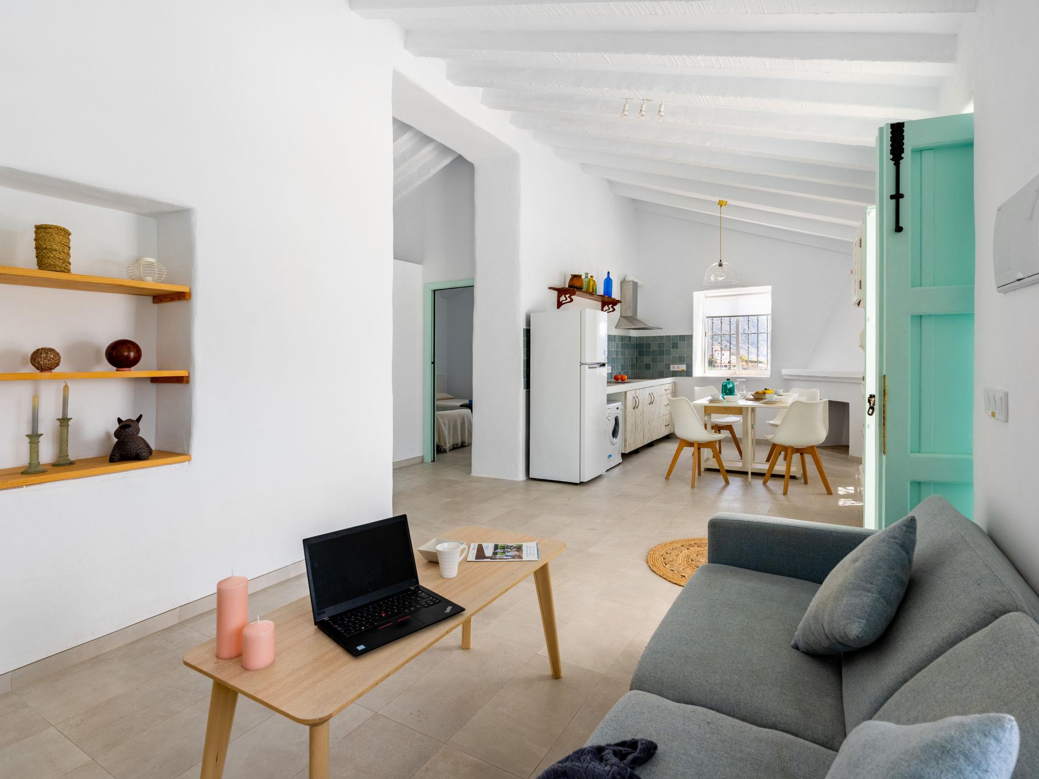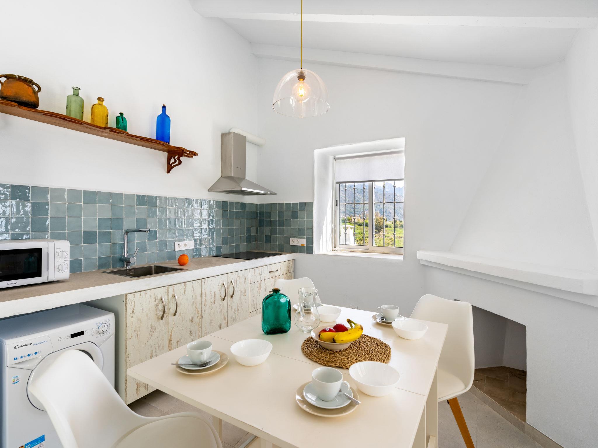 "Las Vistas", 3-room farmhouse 60 m2, south facing position. Simple and rustic furnishings: living/dining room with open-hearth fireplace (only for decoration), digital TV, air conditioning and forced-air heating. Exit to the terrace, to the swimming pool. 1 room with 2 beds (90 cm, length 190 cm), air conditioning and forced-air heating. 1 room with 1 french bed (160 cm, length 190 cm), air conditioning and forced-air heating. Open kitchen (4 ceramic glass hob hotplates, toaster, kettle, microwave, freezer, electric coffee machine). Exit to the terrace, to the swimming pool. Shower/WC. No heating option. Large terrace. Terrace furniture, barbecue, deck chairs. Panoramic view of the sea, the mountains and the resort. Facilities: washing machine, iron, children's high chair, baby cot for up to 2 year olds, hair dryer. Internet (WiFi). Please note: smoke alarm, fire extinguisher. CR/MA/02383