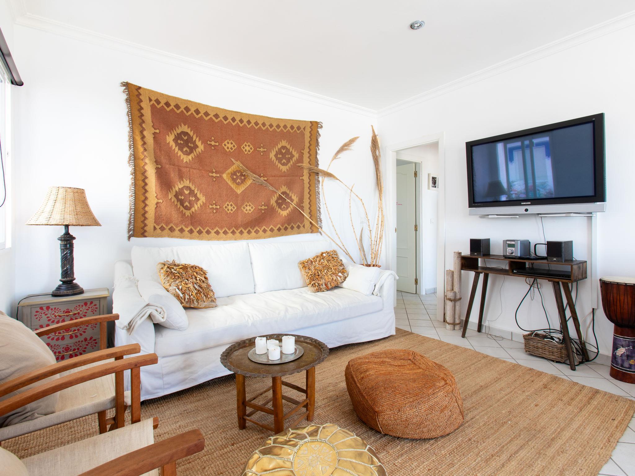"Amor", 3-room apartment 80 m2, south-west facing position. Spacious and bright, practical and comfortable furnishings: living/dining room with TV, air conditioning and forced-air heating. Exit to the terrace. 1 room with 2 beds (90 cm, length 190 cm), shower/WC, air conditioning and forced-air heating. 1 room with 1 french bed (180 cm, length 200 cm), air conditioning and forced-air heating. Exit to the terrace. Open kitchen (oven, dishwasher, 4 ceramic glass hob hotplates, toaster, kettle, microwave, freezer, electric coffee machine, cooking island). Exit to the terrace. Bath/WC. Large terrace. Terrace furniture, barbecue, deck chairs (2). Marvellous view of the resort and the ocean. Facilities: washing machine, iron, children's high chair, baby cot for up to 2 year olds, hair dryer. Internet (WiFi, free). Please note: maximum 1 pet/ dog allowed. Smoke alarm, fire extinguisher, no lift. VUT/MA/73284