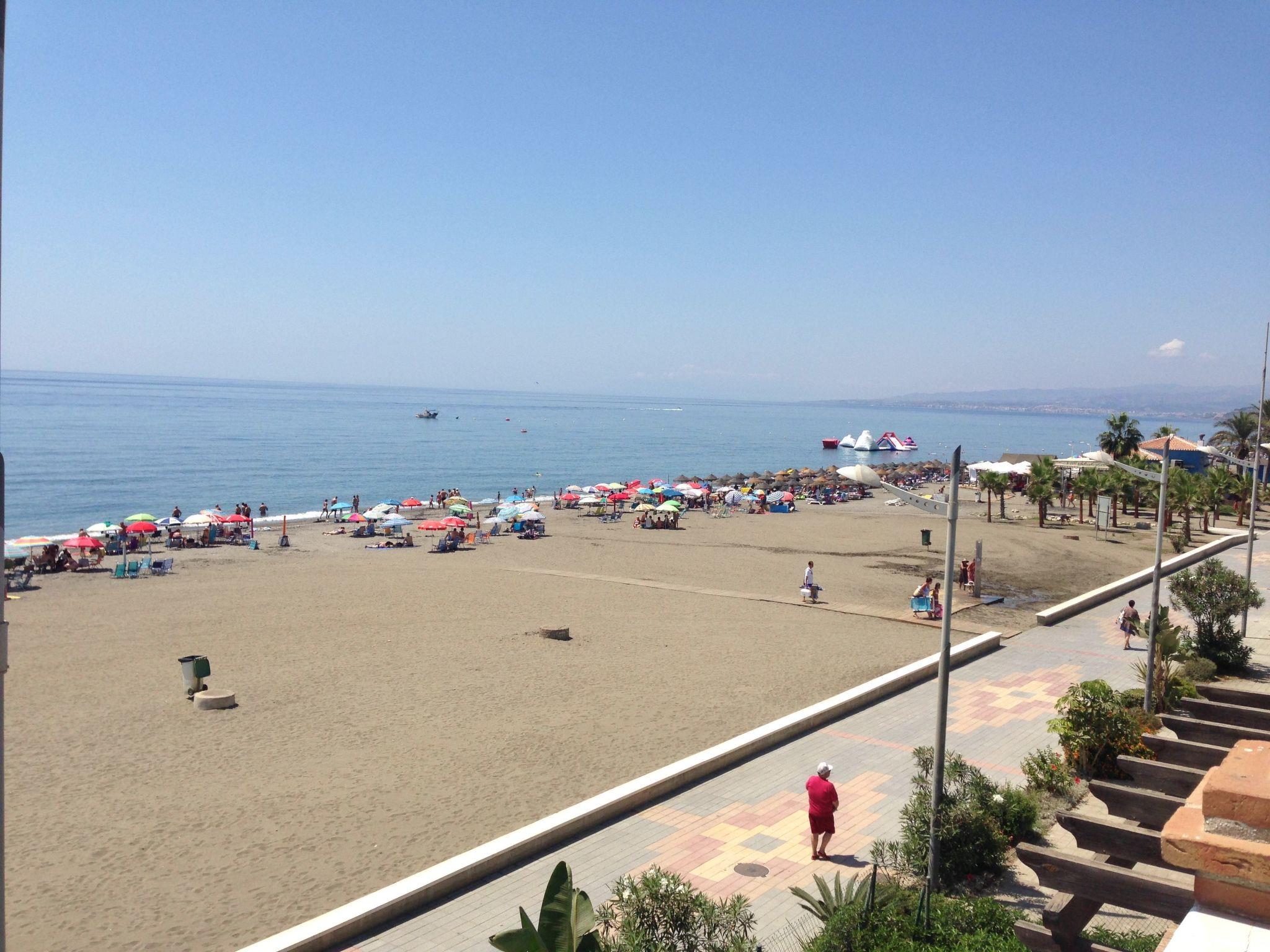 The speciality is that you have really small paths, especially to the beach, ideal for families with big and small children. In the front area you will find shops, restaurants, a great ice cream parlour, a diving school, a gym and physiotherapy. The beach is fine sandy and darker, so it retains the heat for longer and, depending on the time of day, you may need "chanclas" (slippers) to cross it. In front of the water, the beach is sometimes fine sandy and sometimes pebbly, depending on the sea currents. You can take wonderful walks on the beach or go jogging along the promenade.