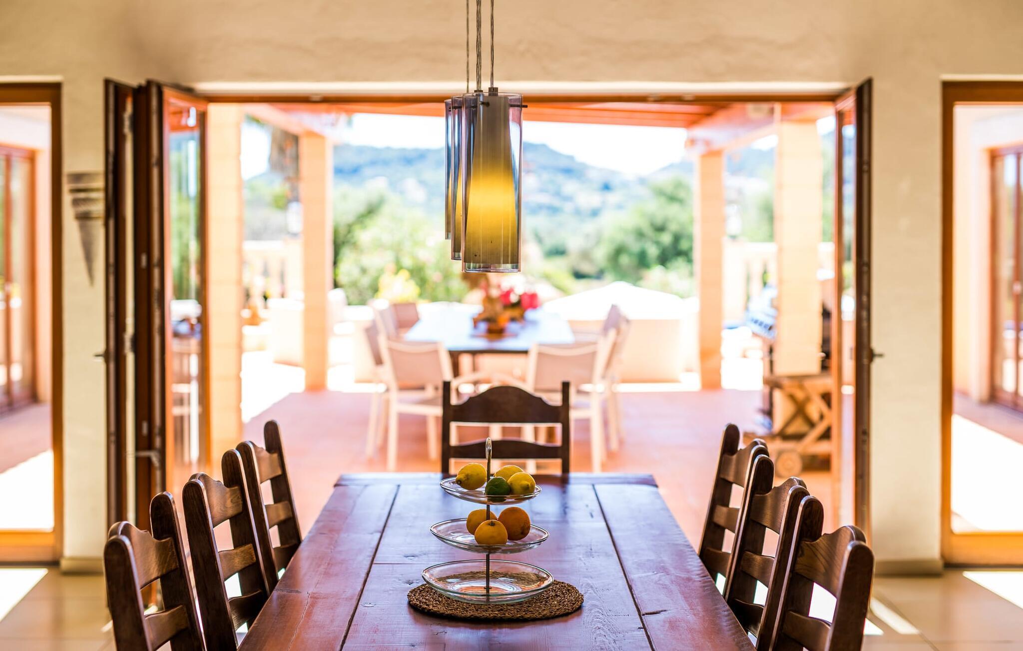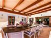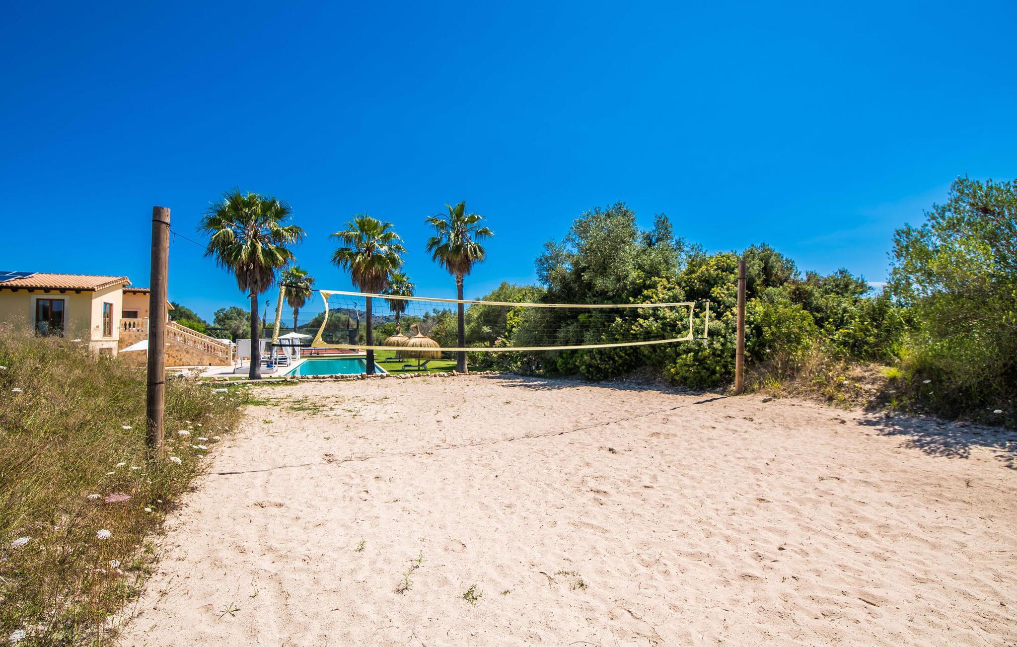 Nej, denne bondegård på Mallorca er ikke almindelig. Ikke let. Ikke trivielt. Det er en allrounder. Ikke alene er dens overdådighed utroligt fortryllende, men den er også lidt af en konflikt, for her ved man simpelthen ikke, hvor man skal starte med en præsentation, der passer til ejendommens kvalitet. Lad os starte med det fantastiske ydre af dette drømmende hjem, malerisk indlejret i de grønne bakker mellem Cala Ratjada og Cala Mesquida. Husets originale udformning dikterer terrassearrangementet, som passer særligt harmonisk ind i både bygningen og udearealet. En slags gårdhave, for det meste overdækket, er forhøjet på 1. sal og rummer både et stort spisebord og en grill samt et super lækkert loungeområde med en enestående udsigt til haven, især den kæmpe pool beklædt med græsplæner og palmer. som kan nås via en imponerende bred trappe. Komfortable liggestole og balinesiske senge sikrer, at timerne udendørs er ren fornøjelse. Lyder det hele ekstremt praktisk? Men det er ikke alt! Som du kan se på billederne, er der en volleyballbane og en padelbane (sidstnævnte med projektører!) - holdsport er meget vigtigt her. Et poolbord og et bordtennisbord afrunder det omfattende udvalg af udendørs aktiviteter, der er tilgængelige sammen. Nu tror du måske, at denne bolig allerede har brugt alt sit krudt på udendørsområdet - men det er langt fra tilfældet! En rummelig stue/spisestue med tilhørende åbent køkken er placeret direkte på den øverste terrasse og indbyder til hyggestunder indendørs. Uanset om du slapper af i sofaen, sidder sammen ved bordet eller hakker ingredienser til en solid middag i det veludstyrede køkken: fællesskabet er meget vigtigt her. De delvist gulv-til-loft vinduer og den åbne arkitektur med generøs rumhøjde og synlige træbjælker, i kombination med stilfulde møbler af høj kvalitet, naturstenselementer og harmoniske farvetoner, skaber en æstetisk alsidig boligstemning. Særligt smagfulde soveværelser er spredt ud over stueetagen og de øverste etager, hvoraf nogle kun er tilgængelige eller tilgængelige udefra, så enhver gæst kan nyde et særligt niveau af privatliv, hvilket yderligere understreges af den rummelige stue, og hvoraf nogle har deres egne terrasser. I alt seks badeværelser giver maksimal komfort, selv når huset er fyldt. Et enormt yoga- eller konferenceområde på øverste etage udvider underholdnings- og sportsudbuddet i dette enestående feriehus på Mallorca. Vi giver "Drømmegården Son Terrassa" vores uforbeholdne anbefaling, især for dem, der ønsker at komme til øen med en sportsorienteret feriefamilie eller gruppe. Placeringen er også perfekt til bryllupper, fødselsdage, seminarer, firma- og forretningsarrangementer. Mellem Cala Ratjada og Cala Mesquida ligger "drømmegården Son Terrassa", som scorer med sine absolut fremragende indendørs og udendørs arealer. Både sporty og afslapningssøgende gæster vil få noget for pengene på dette særlige, vidunderligt idylliske og rolige sted. Capdepera med sit gode udvalg af supermarkeder, restauranter osv. ligger kun få kilometer væk, ligesom forskellige smukke strande såsom Platja Son Moll, Cala Agulla eller Cala Mesquida. Dette er et Fincallorca feriehus.