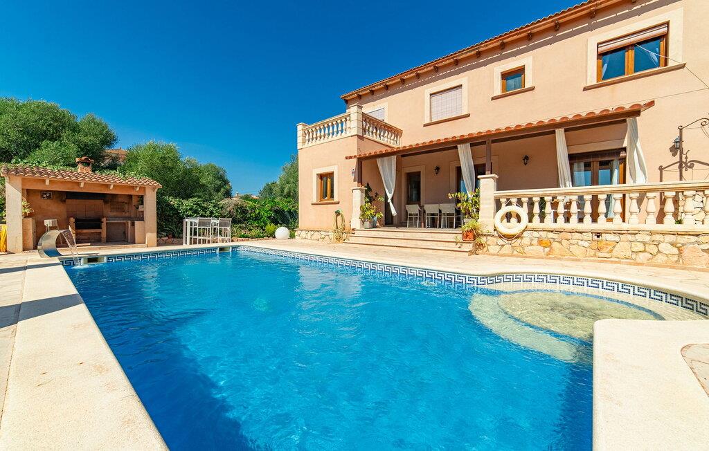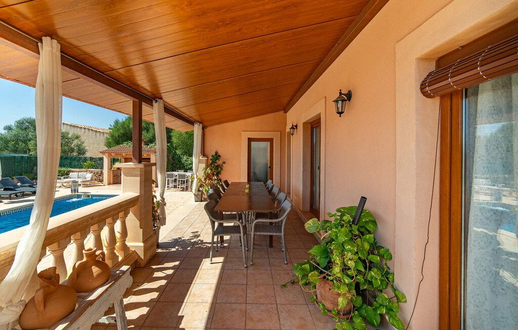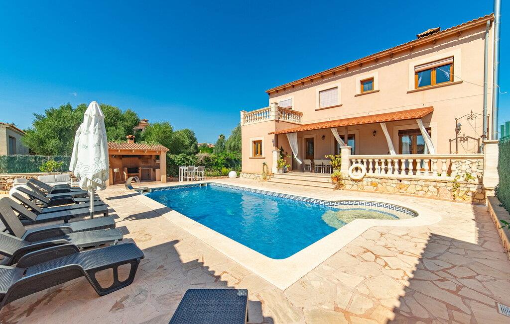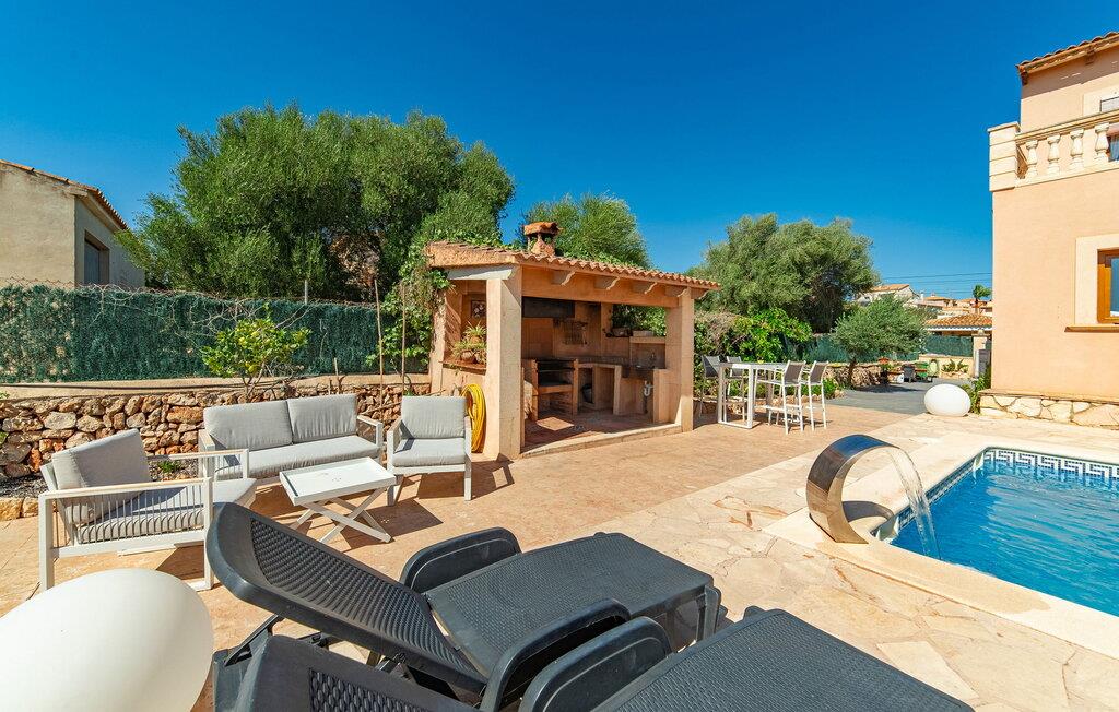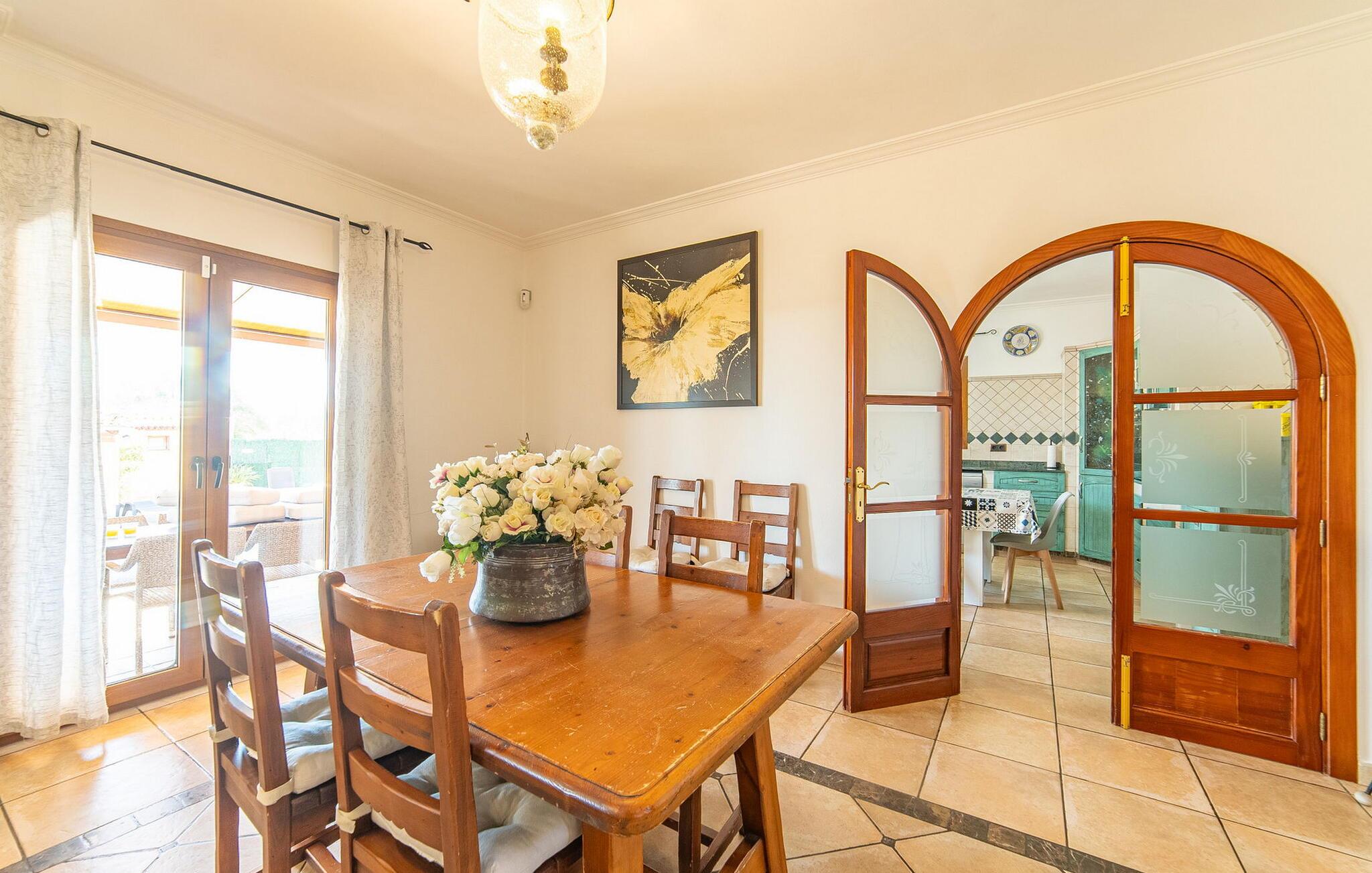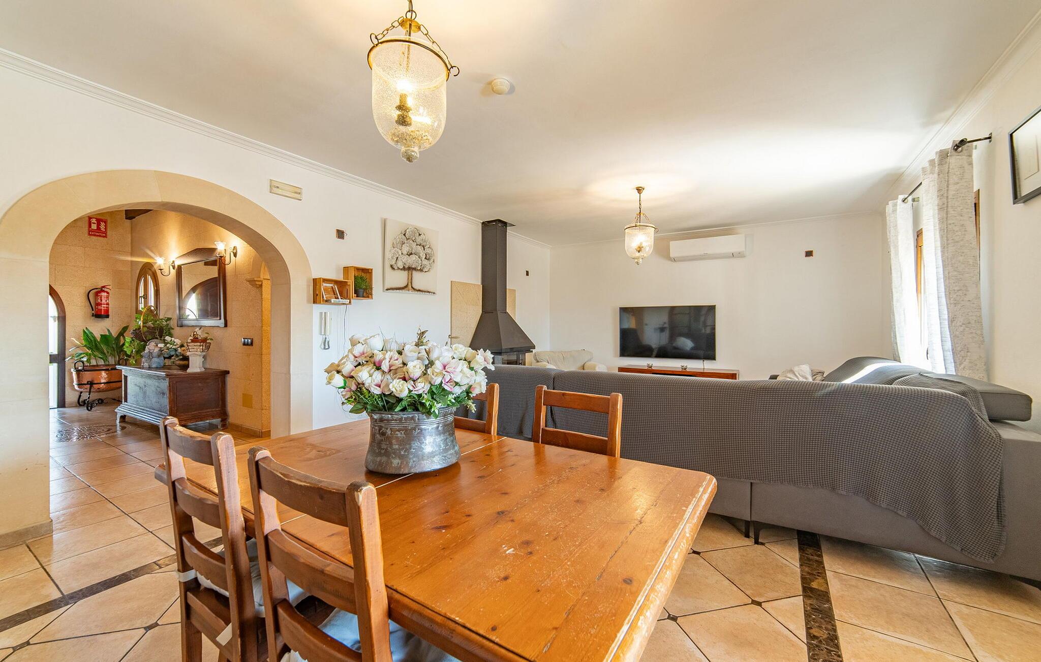 Genkender I den helt specielle lugt af havet og havnen, der blæser ind med en jævn brise og hvirvler rundt om jeres næse med salte, aromatiske noter? Det lugter af plads til at trække vejret, som frihed, som om I var et helt andet sted; Kort sagt, det lugter af ferie. Det oplevede vi, da vi besøgte villaen “Tres Soles”, et parcelhus i et helt stille villakvarter lige uden for Portocolom. Trods de nærmeste naboer har huset et privat terrasseområde, der kan ses fra alle sider. Det har alt, hvad I kan ønske jer i et komfortabelt feriehus. Disse omfatter en meget stor pool på 42 m² med en udendørs bruser og et særligt komfortabelt udendørs badeværelse, en solterrasse med liggestole og nok skygge, når I har brug for det, og et smukt lille udendørs køkken med grill. Men alt dette ville ikke være noget, hvis det ikke var for den overdækkede terrasse ved siden af huset, hvor man kan afslutte grillaftenen med alle og nyde den varme natteluft. Efter en god nats søvn er det et godt sted at samle alle til en café con leche og en lækker ensaïmada, som er et must-prøve: et wienerbrød dækket af flormelis, der også kan fyldes med græskarmarmelade eller vaniljebudding. Denne traditionelle mallorcanske specialitet er den perfekte start på jeres feriemorgen. Og den virkelig rummelige indretning af denne villa nær havet sikrer, at dagen starter afslappet. Huset i to etager har en hyggelig opholdsstue med mere end nok sofaer omkring pejsen og tv, der er åbent til spisepladsen. Det separate køkken vil glæde jer, ikke kun på grund af det komplette udstyr - helt afgørende på en ferie med selvforplejning med en stor gruppe - men også på grund af den kølige turkis på lågerne til de indbyggede skabe. Samlet set bidrager villaens muntre farvepalet virkelig til hjemmets afslappede, jordnære følelse; Hvert af de fem soveværelser, uanset om det er udstyret med en dobbeltseng eller to separate senge, har sit eget bløde farveskema, der skaber en rolig, beroligende atmosfære. Udover det udendørs badeværelse er der tre smarte badeværelser med bruseniche og tidløst flotte flisemønstre. Da boligarealet er fordelt på to etager - den øverste har endda en solbeskinnet altan med et lille loungesæt - har hver gæst deres personlige yndlingssted inde eller ude, som de til enhver tid kan gå til og derefter fortabe sig i en god bog. "Store familier er velkomne!" - det kunne virkelig være mottoet for den stærkt anbefalede villa "Tres Soles". Et ophold i den sydøstlige del af øen byder på en masse variation og mange muligheder for afslapning og afslapning. Især når I bor i en ejendom som denne hyggelige villa, der byder på plads nok til to eller flere familier, flere generationer eller en stor gruppe venner - og til en spektakulær pris, kan vi tilføje - er det rigtig rart at have mange forskellige ting at har muligheder, når I planlægger, hvordan I vil bruge hver dag. På grund af jeres centrale beliggenhed i dette boligkompleks, lige uden for en charmerende, autentisk fiskerby, kan I kombinere oplevelsen af en ferie i byen med en ferie på landet. Mens nogle går ind til byen og slentrer rundt i Portocolom eller endda vandrer til Cala Marçal eller Platja de S'Arenal på halvøen overfor havnen, kan de andre i jeres gruppe tage på en dagstur til Felanitx og besøge Sant Salvador. I kan også tage på en guidet vandretur gennem Mondragó Naturpark eller benytte lejligheden til at deltage i alle former for vandsportsaktiviteter. Men der er ingen grund til at lægge pres på jer selv - bare tag jer god tid og bliv klogere på alle de attraktive muligheder, der er tilgængelige for jer under jeres ophold i den fortryllende villa "Tres Soles". Den rummelige villa "Tres Soles" ligger i et roligt boligområde i udkanten af havnebyen Portocolom i den sydøstlige del af øen. Inden for gåafstand ligger byens centrum med dens naturlige havn og en malerisk gammel bydel med nogle gode restauranter. Indkøb kan gøres hurtigt i supermarkederne. Blot 2 km langs kysten kan I nå smukke strande som det familievenlige Cala Marçal.