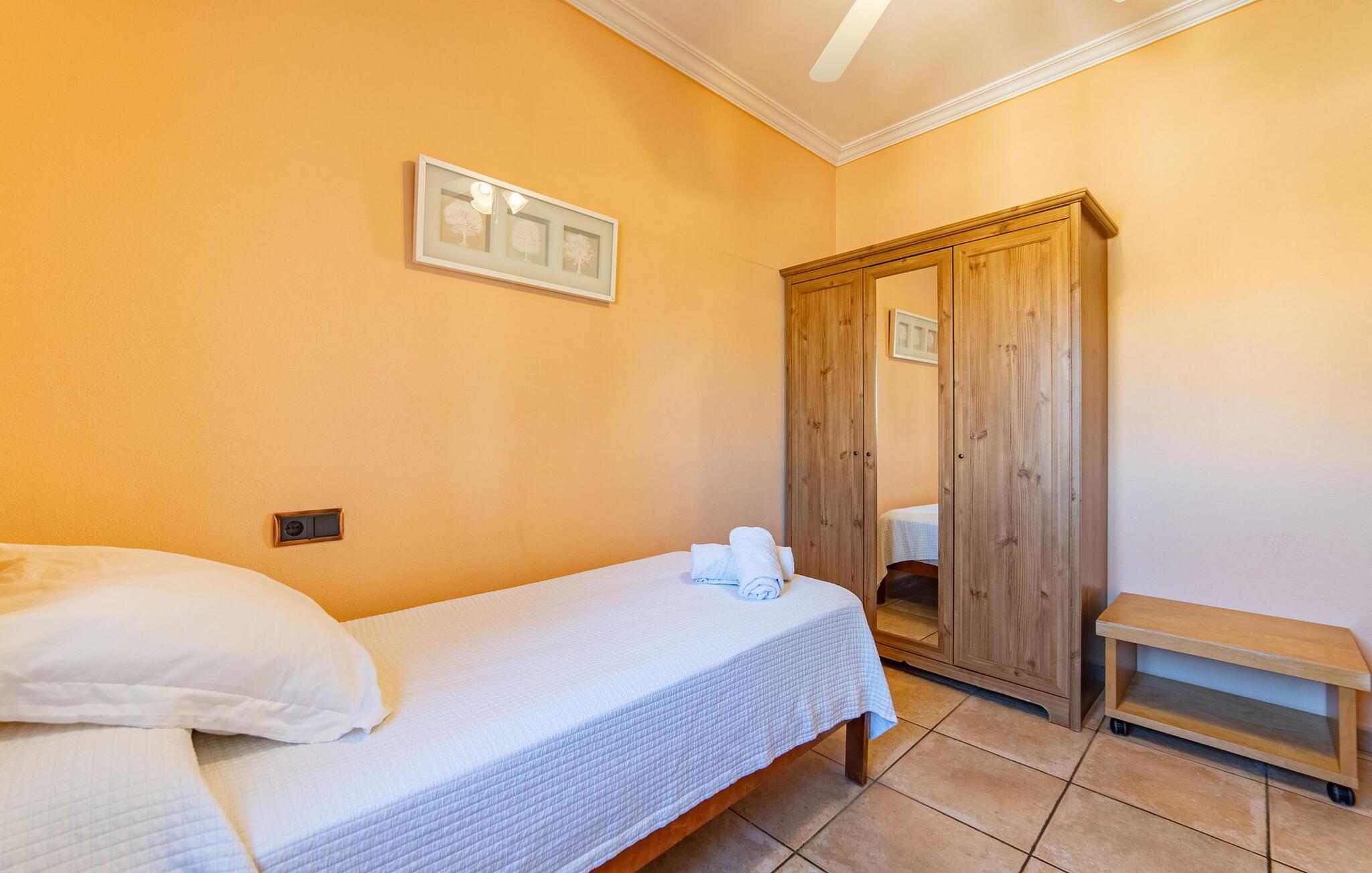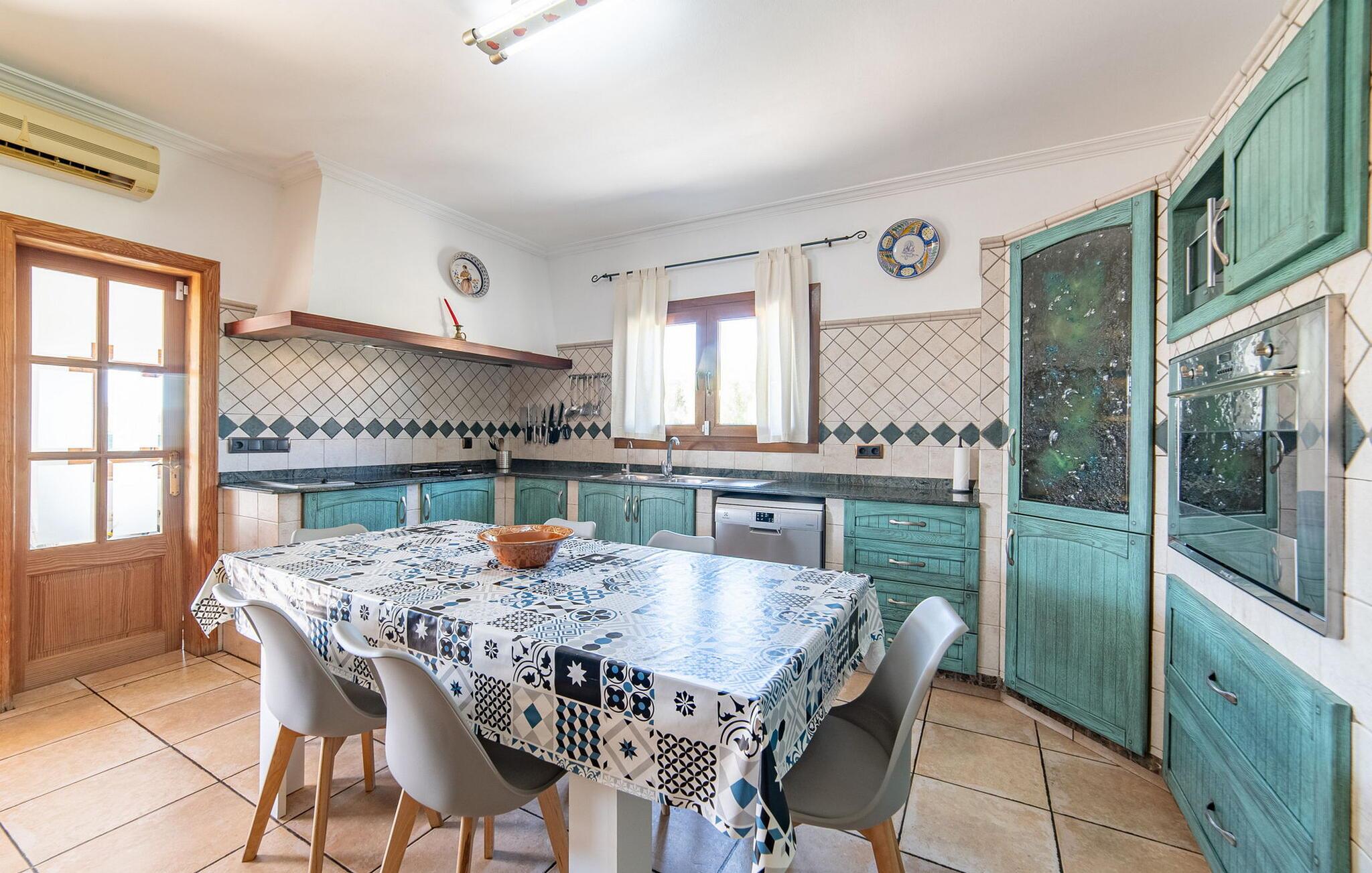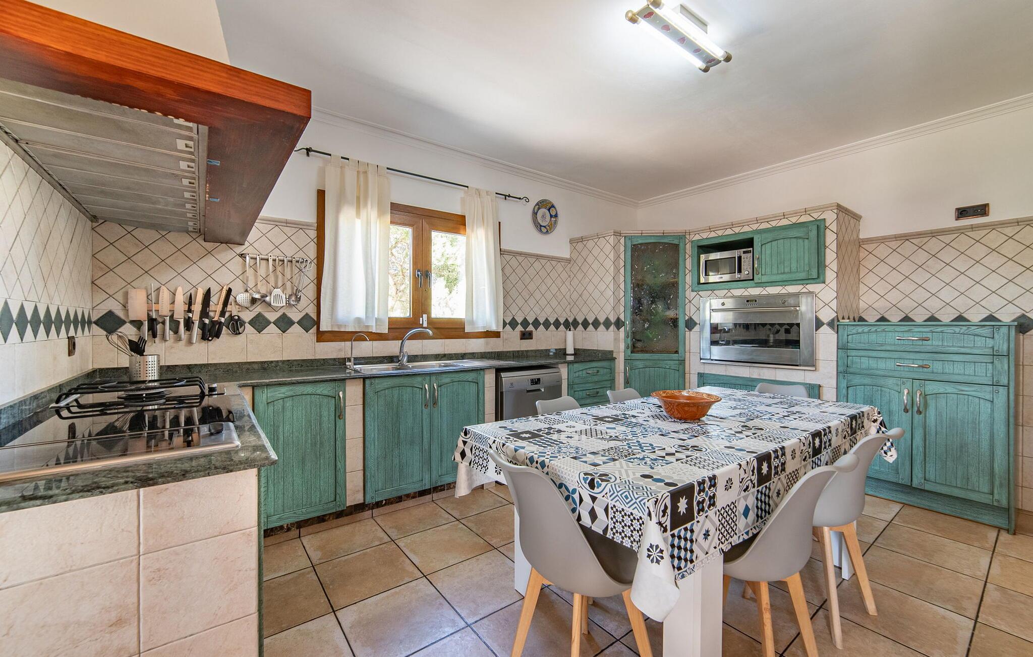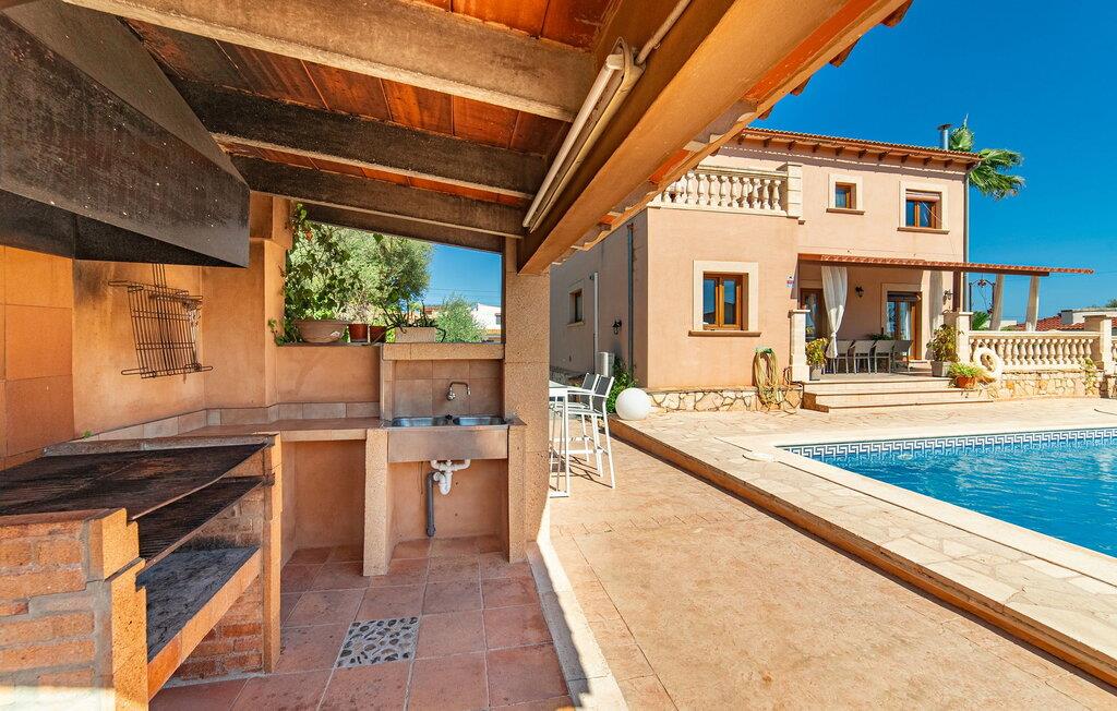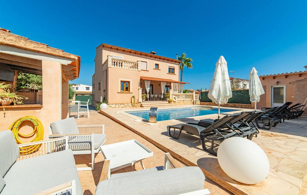 Genkender I den helt specielle lugt af havet og havnen, der blæser ind med en jævn brise og hvirvler rundt om jeres næse med salte, aromatiske noter? Det lugter af plads til at trække vejret, som frihed, som om I var et helt andet sted; Kort sagt, det lugter af ferie. Det oplevede vi, da vi besøgte villaen “Tres Soles”, et parcelhus i et helt stille villakvarter lige uden for Portocolom. Trods de nærmeste naboer har huset et privat terrasseområde, der kan ses fra alle sider. Det har alt, hvad I kan ønske jer i et komfortabelt feriehus. Disse omfatter en meget stor pool på 42 m² med en udendørs bruser og et særligt komfortabelt udendørs badeværelse, en solterrasse med liggestole og nok skygge, når I har brug for det, og et smukt lille udendørs køkken med grill. Men alt dette ville ikke være noget, hvis det ikke var for den overdækkede terrasse ved siden af huset, hvor man kan afslutte grillaftenen med alle og nyde den varme natteluft. Efter en god nats søvn er det et godt sted at samle alle til en café con leche og en lækker ensaïmada, som er et must-prøve: et wienerbrød dækket af flormelis, der også kan fyldes med græskarmarmelade eller vaniljebudding. Denne traditionelle mallorcanske specialitet er den perfekte start på jeres feriemorgen. Og den virkelig rummelige indretning af denne villa nær havet sikrer, at dagen starter afslappet. Huset i to etager har en hyggelig opholdsstue med mere end nok sofaer omkring pejsen og tv, der er åbent til spisepladsen. Det separate køkken vil glæde jer, ikke kun på grund af det komplette udstyr - helt afgørende på en ferie med selvforplejning med en stor gruppe - men også på grund af den kølige turkis på lågerne til de indbyggede skabe. Samlet set bidrager villaens muntre farvepalet virkelig til hjemmets afslappede, jordnære følelse; Hvert af de fem soveværelser, uanset om det er udstyret med en dobbeltseng eller to separate senge, har sit eget bløde farveskema, der skaber en rolig, beroligende atmosfære. Udover det udendørs badeværelse er der tre smarte badeværelser med bruseniche og tidløst flotte flisemønstre. Da boligarealet er fordelt på to etager - den øverste har endda en solbeskinnet altan med et lille loungesæt - har hver gæst deres personlige yndlingssted inde eller ude, som de til enhver tid kan gå til og derefter fortabe sig i en god bog. "Store familier er velkomne!" - det kunne virkelig være mottoet for den stærkt anbefalede villa "Tres Soles". Et ophold i den sydøstlige del af øen byder på en masse variation og mange muligheder for afslapning og afslapning. Især når I bor i en ejendom som denne hyggelige villa, der byder på plads nok til to eller flere familier, flere generationer eller en stor gruppe venner - og til en spektakulær pris, kan vi tilføje - er det rigtig rart at have mange forskellige ting at har muligheder, når I planlægger, hvordan I vil bruge hver dag. På grund af jeres centrale beliggenhed i dette boligkompleks, lige uden for en charmerende, autentisk fiskerby, kan I kombinere oplevelsen af en ferie i byen med en ferie på landet. Mens nogle går ind til byen og slentrer rundt i Portocolom eller endda vandrer til Cala Marçal eller Platja de S'Arenal på halvøen overfor havnen, kan de andre i jeres gruppe tage på en dagstur til Felanitx og besøge Sant Salvador. I kan også tage på en guidet vandretur gennem Mondragó Naturpark eller benytte lejligheden til at deltage i alle former for vandsportsaktiviteter. Men der er ingen grund til at lægge pres på jer selv - bare tag jer god tid og bliv klogere på alle de attraktive muligheder, der er tilgængelige for jer under jeres ophold i den fortryllende villa "Tres Soles". Den rummelige villa "Tres Soles" ligger i et roligt boligområde i udkanten af havnebyen Portocolom i den sydøstlige del af øen. Inden for gåafstand ligger byens centrum med dens naturlige havn og en malerisk gammel bydel med nogle gode restauranter. Indkøb kan gøres hurtigt i supermarkederne. Blot 2 km langs kysten kan I nå smukke strande som det familievenlige Cala Marçal.