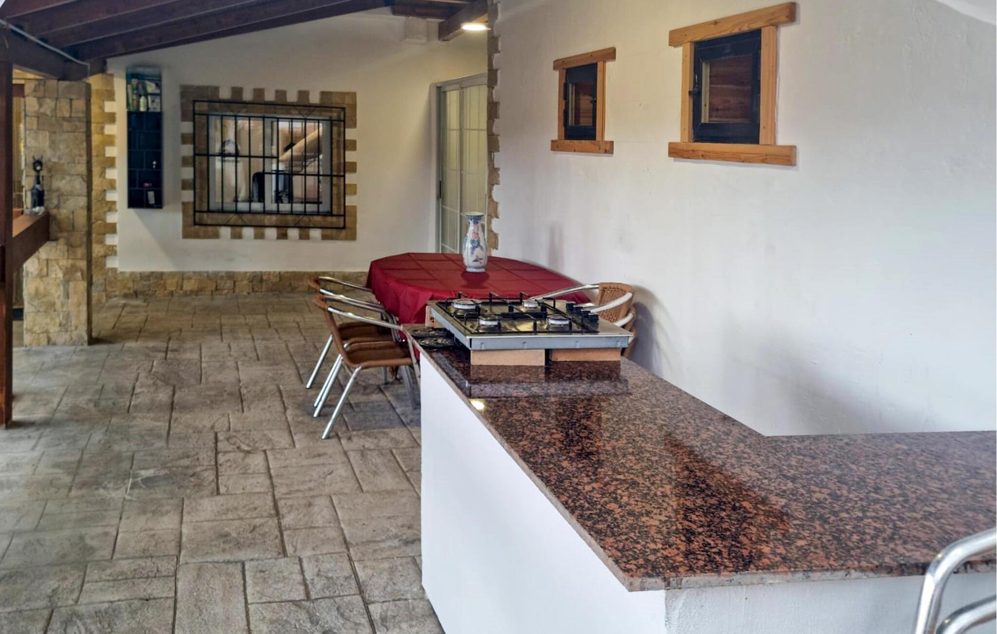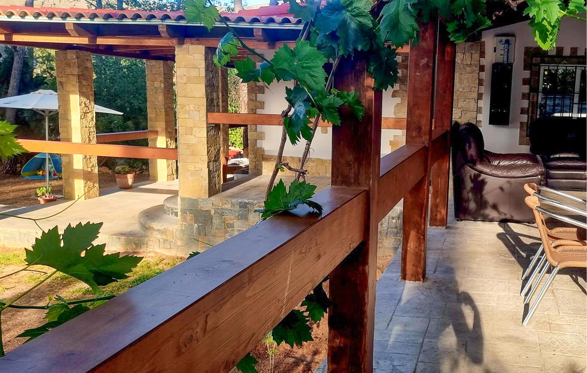 Dette store feriehus i Urb Llanorell tilbyder alt, hvad I behøver for en afslappende ferie. Den praktiske indretning og de gode faciliteter sørger for masser af komfort, mens den store veranda med grillplads indbyder til hyggelige stunder sammen. Nyd afslappende øjeblikke i husets egen sauna, eller tag en forfriskende dukkert i den private pool på varme dage. Omgivet af smuk natur kan I her lade sjælen falde til ro og nyde jeres ferie i fulde drag.