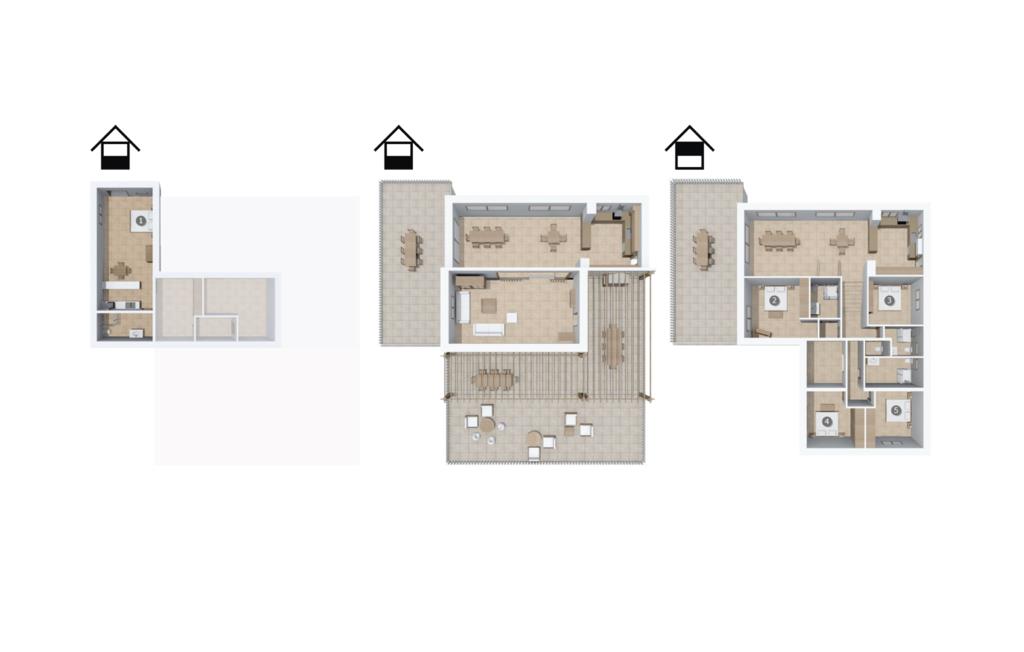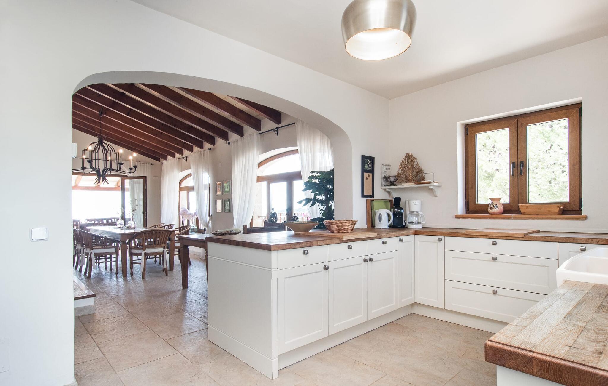 Indvendigt udstråler villaen æstetisk charme og kombinerer harmonisk naturligt lys med indbydende indretning. Gæster i det separate pensionat har deres eget lille køkken og spiseplads, ideel til større grupper, der søger privatliv.