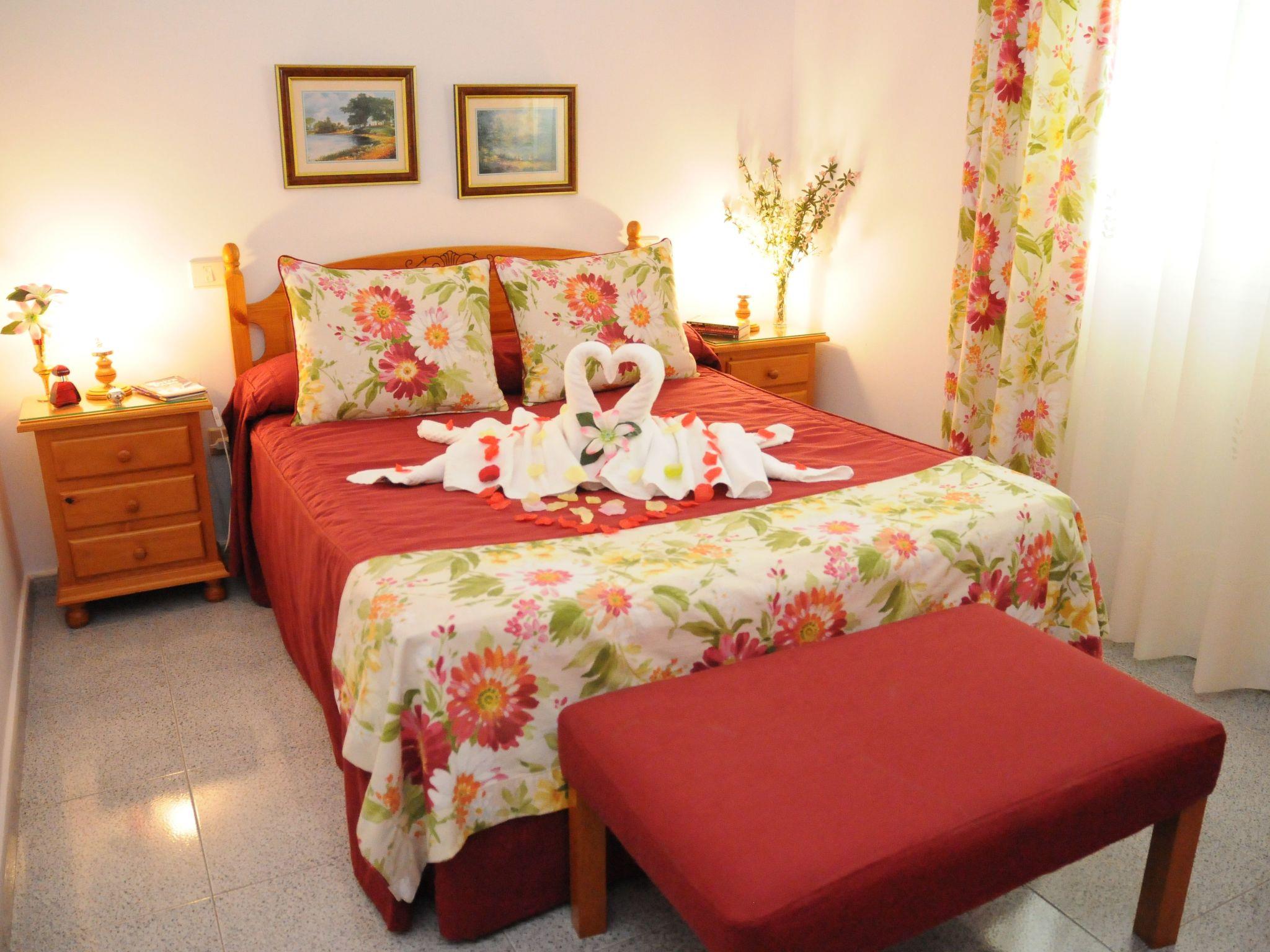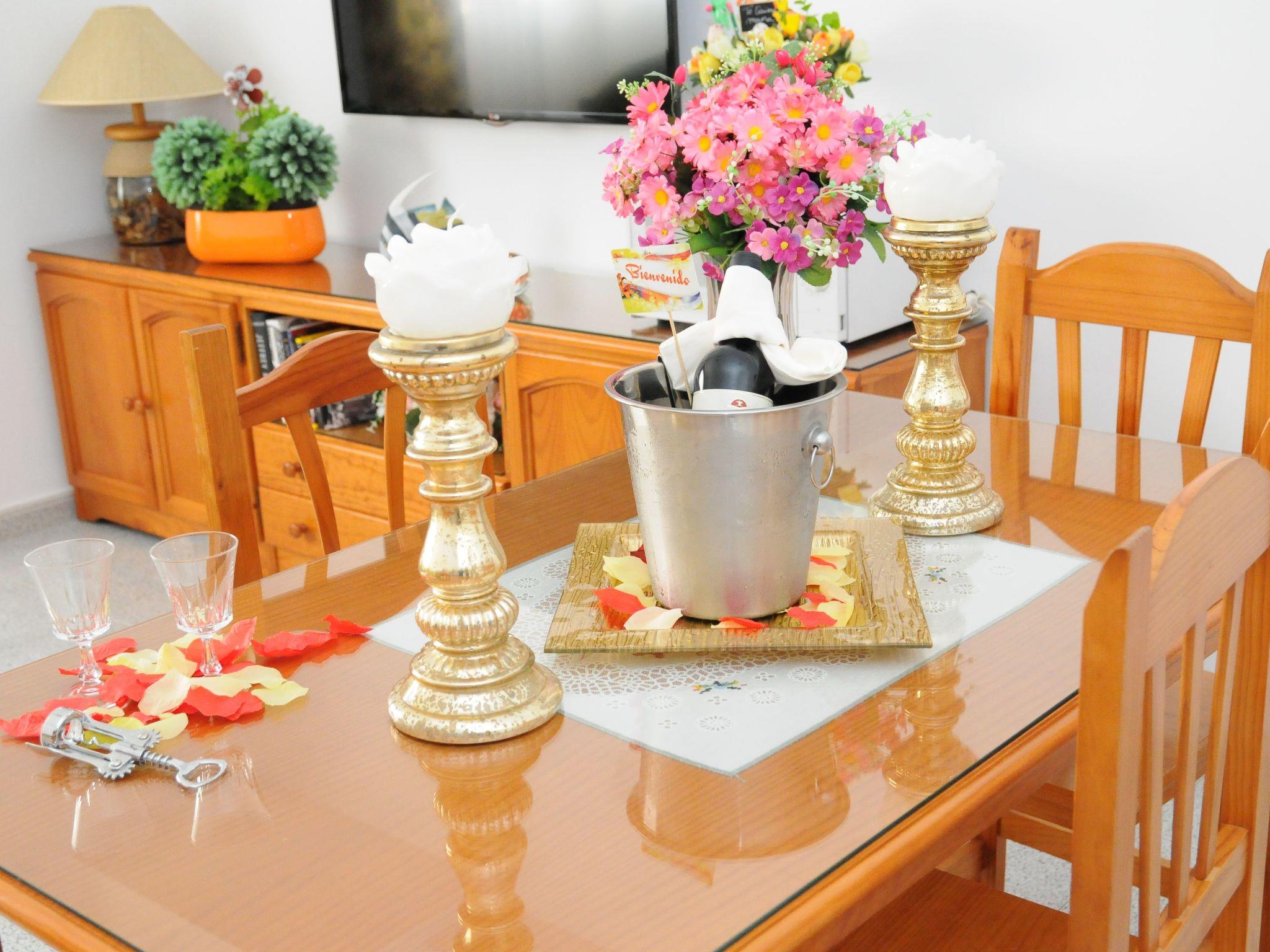 This flat sleeps two people and has one bedroom with a 150cm wide double bed. The living and dining room with open plan kitchen offers two sofas, a flat screen TV with satellite channels and a dining table with chairs. The open-plan kitchen is fully equipped with a hob, oven, fridge-freezer, microwave, kettle, toaster, coffee machine and washing machine. The bathroom has a bathtub, bidet, washbasin and toilet.