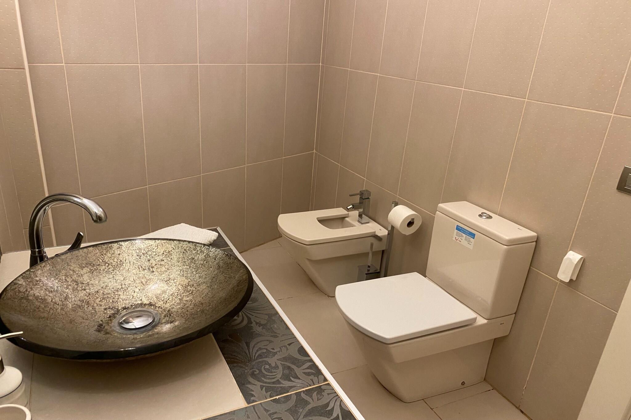 Sidebygning: (badeværelse(bruser, bruser, toilet)) Stue(dobbeltsovesofa, Fjernsyn(parabol), DVD-afspiller, stereoanlæg), Køkken(kogeplade(glaskeramisk), kaffemaskine, ovn, mikrobølgeovn, opvaskemaskine , køleskab, fryser), Soveværelse med badeværelse(dobbeltseng, bruser, toilet), Soveværelse med badeværelse(enkeltseng, enkeltseng, bruser, toilet), udekøkken, grill, tørretumbler, vaskemaskine, klimaanlæg, terrasse, terrasse, terrasse, havemøbler, solstole, parkering, Parasol, private indoor pool, baby crib(free)