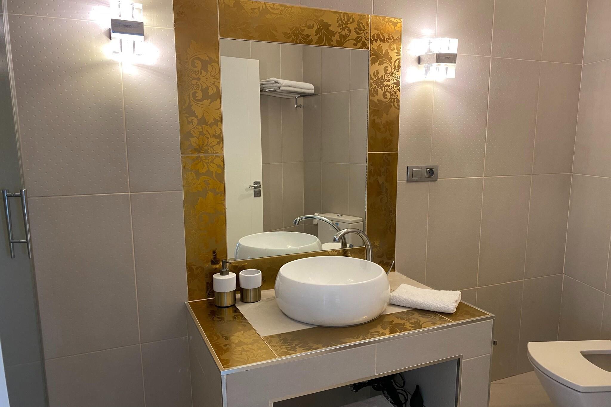Sidebygning: (badeværelse(bruser, bruser, toilet)) Stue(dobbeltsovesofa, Fjernsyn(parabol), DVD-afspiller, stereoanlæg), Køkken(kogeplade(glaskeramisk), kaffemaskine, ovn, mikrobølgeovn, opvaskemaskine , køleskab, fryser), Soveværelse med badeværelse(dobbeltseng, bruser, toilet), Soveværelse med badeværelse(enkeltseng, enkeltseng, bruser, toilet), udekøkken, grill, tørretumbler, vaskemaskine, klimaanlæg, terrasse, terrasse, terrasse, havemøbler, solstole, parkering, Parasol, private indoor pool, baby crib(free)