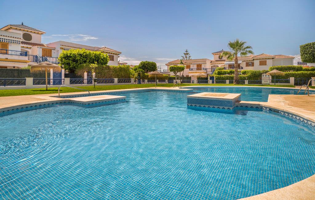 Lys lejlighed med fælles pool og tæt på sandstranden.