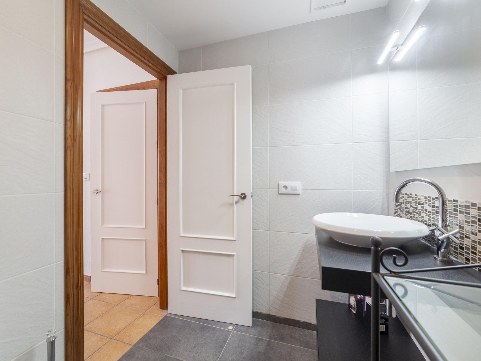 "Al Andalus", 3-room apartment 75 m2, on the ground floor. Bright, practical and comfortable furnishings: living/dining room with dining table, digital TV, flat screen, air conditioning and forced-air heating. Exit to the terrace. 1 room with 1 french bed (150 cm, length 200 cm), bath/WC, air conditioning and forced-air heating. Exit to the balcony. 1 room with 2 beds (90 cm, length 190 cm), air conditioning and forced-air heating. Exit to the balcony. Open kitchen (oven, dishwasher, 4 ceramic glass hob hotplates, toaster, microwave, freezer, electric coffee machine) with bar. Shower/WC. Terrace. Terrace furniture. Facilities: washing machine, dryer, iron, hair dryer. Internet (WiFi, free). Parking (roofed) at the house. Please note: non-smokers only. Maximum 1 pet/ dog allowed. VUT/AL/117546 // Reg. Nr.: ESFCTU0000040100009146850000000000000000VUT/AL/117546