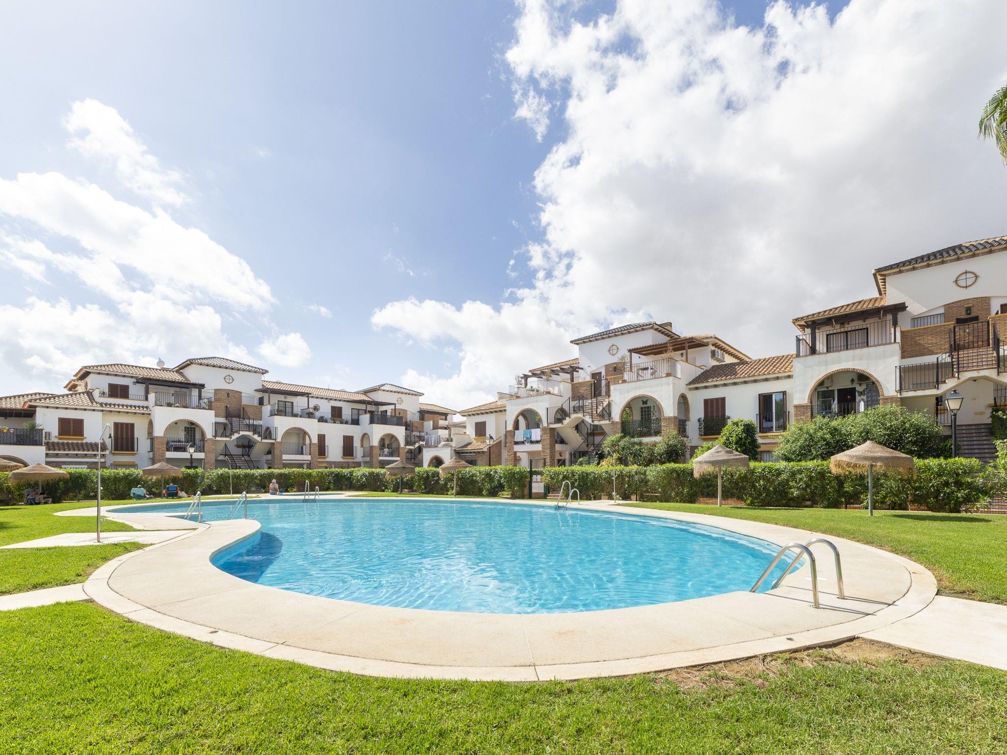 Comfortable residence "Al Andalus". In a quiet, sunny position, 2 km from the sea, 2 km from the beach. For shared use: well-kept garden with plants, 2 swimming pools, indoor pool (23 x 10 m, depth 175 cm, seasonal availability: 01.Jan. - 31.Dec. pool opening hours: 09:00-15:00 and 17:00-21:00). Shower/WC in the pool area, children's pool, hot tub, tennis, children's playground, public parking on the road. Supermarket 2 km, restaurant 2 km, bar 2 km, café 2 km, bus stop 2 km, sandy beach "Vera Playa" 2 km. The owner does not accept any youth groups. Neighbourhood highly sensitive to noise. Quietness and good behaviour expected.