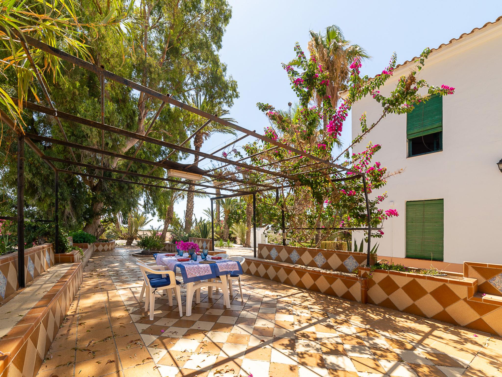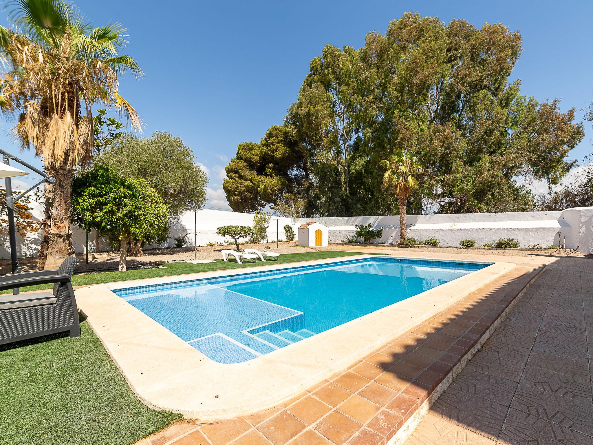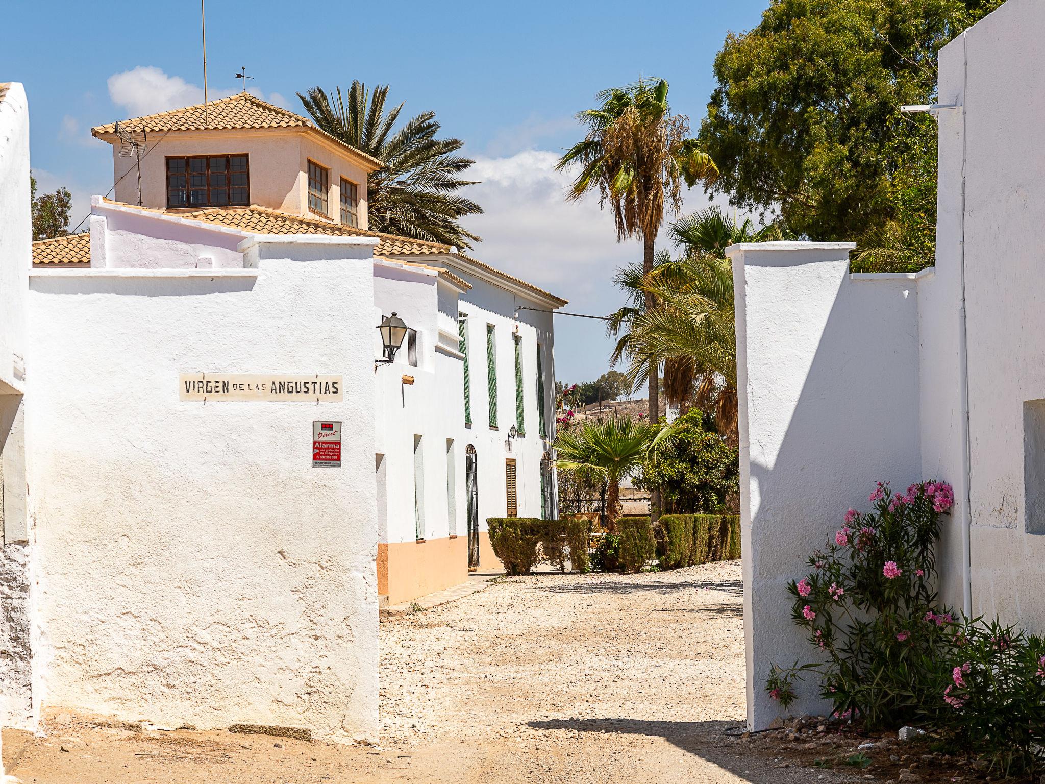 Old, historical farm estate "Hacienda Virgen de las Angustias", from the 19th century. In the district of Vera Playa, in a secluded, quiet, sunny position, 600 m from the sea, 600 m from the beach. Private: natural state property, garden (not fenced) with wildlife garden and trees, swimming pool angular (13 x 5 m, depth 120 - 165 cm, seasonal availability: 01.Jun. - 30.Sep.). Outdoor shower, arbour, terrace, garden furniture. Motor access (via unmade road). Parking (for 5 cars) at the house. Supermarket 2 km, restaurant, bar, café 600 m, bus stop 450 m, sandy beach "Quitapellejos" 600 m. Cycle lane 600 m. Nearby attractions: Almería 90 km, Cabo de Gata 90 km. Please note: car recommended. The owner does not accept any youth groups. On the estate animal husbandry.