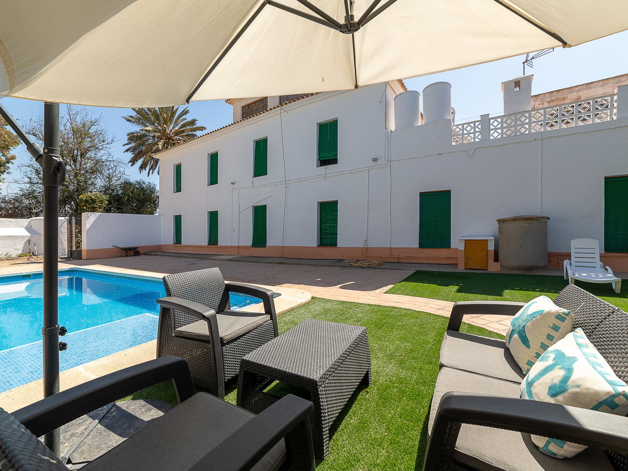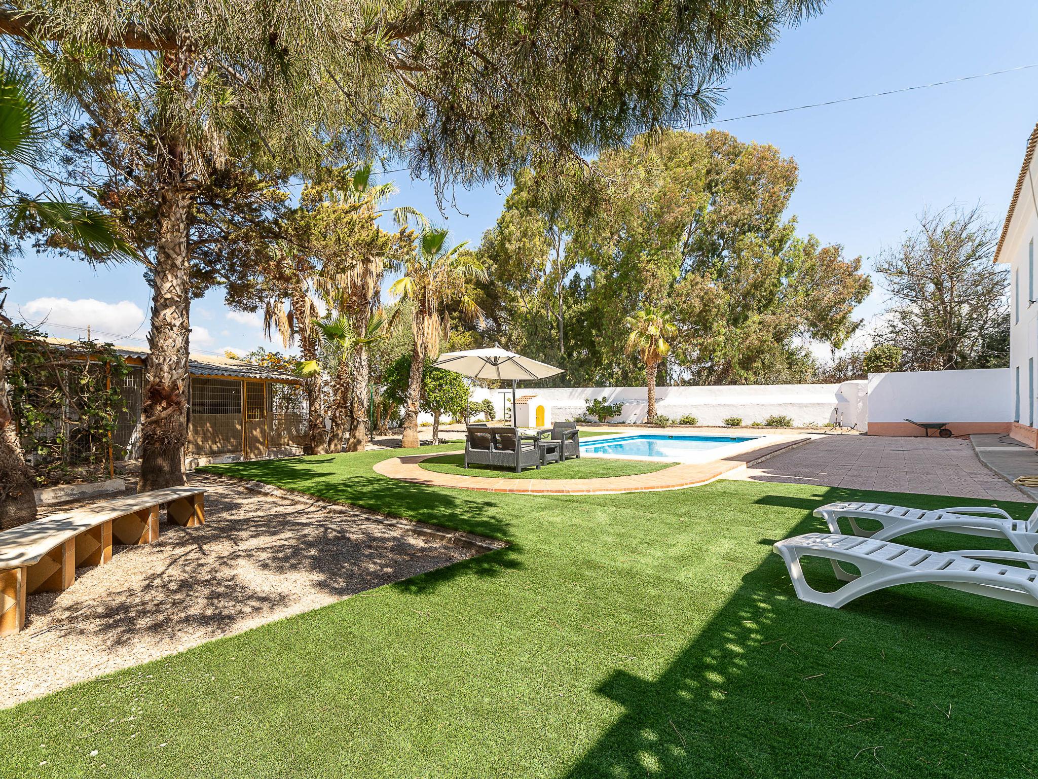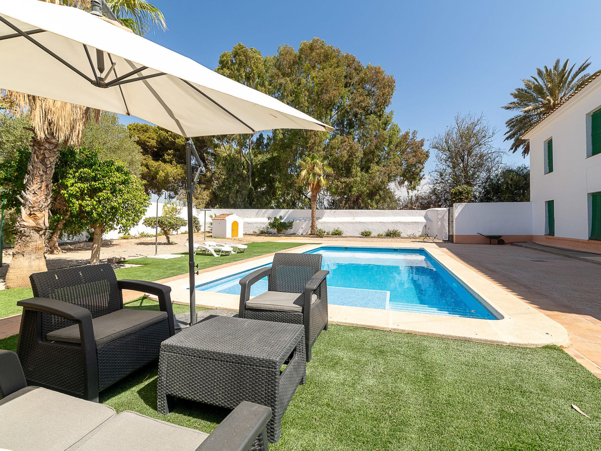 Old, historical farm estate "Hacienda Virgen de las Angustias", from the 19th century. In the district of Vera Playa, in a secluded, quiet, sunny position, 600 m from the sea, 600 m from the beach. Private: natural state property, garden (not fenced) with wildlife garden and trees, swimming pool angular (13 x 5 m, depth 120 - 165 cm, seasonal availability: 01.Jun. - 30.Sep.). Outdoor shower, arbour, terrace, garden furniture. Motor access (via unmade road). Parking (for 5 cars) at the house. Supermarket 2 km, restaurant, bar, café 600 m, bus stop 450 m, sandy beach "Quitapellejos" 600 m. Cycle lane 600 m. Nearby attractions: Almería 90 km, Cabo de Gata 90 km. Please note: car recommended. The owner does not accept any youth groups. On the estate animal husbandry.