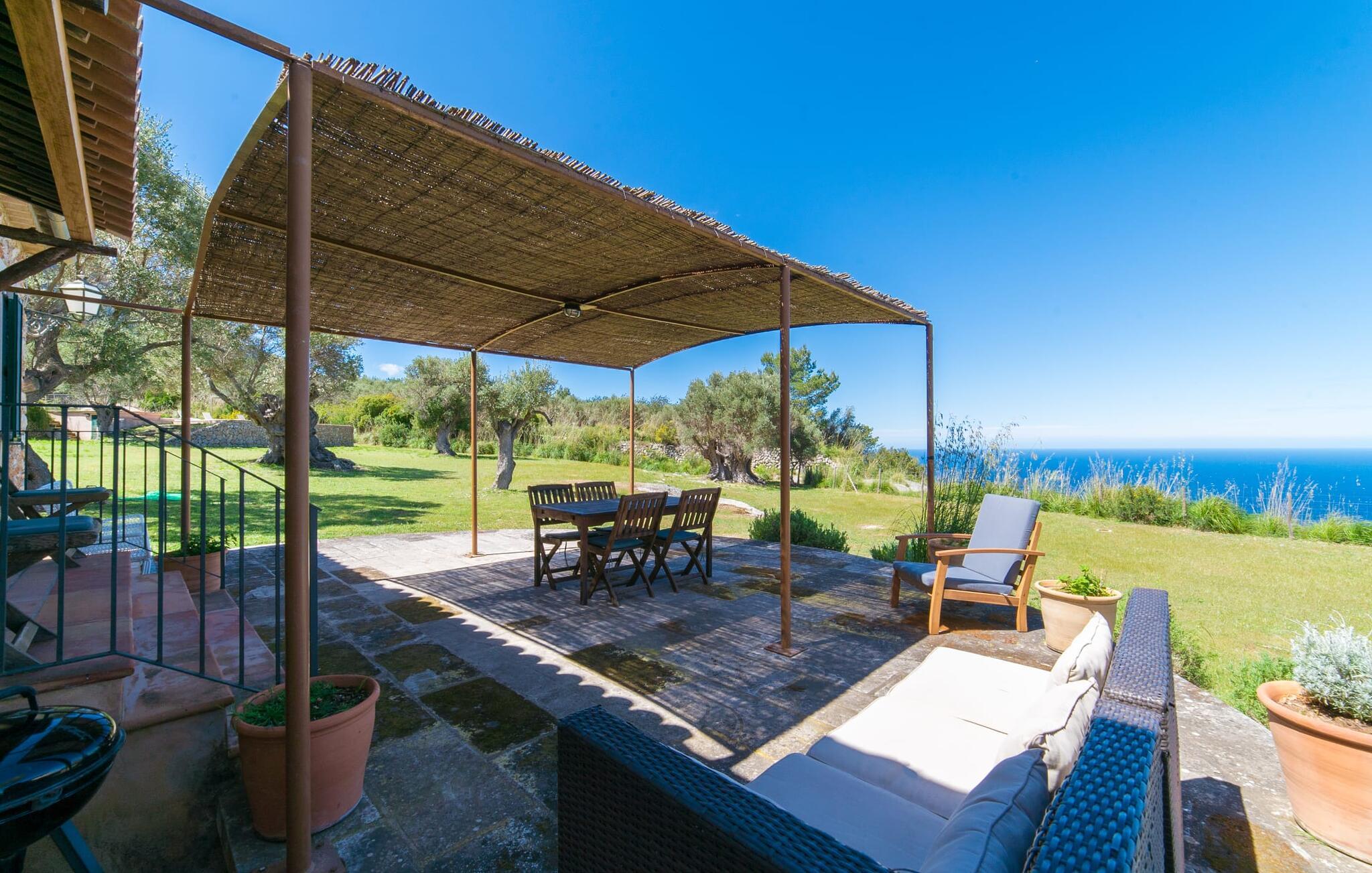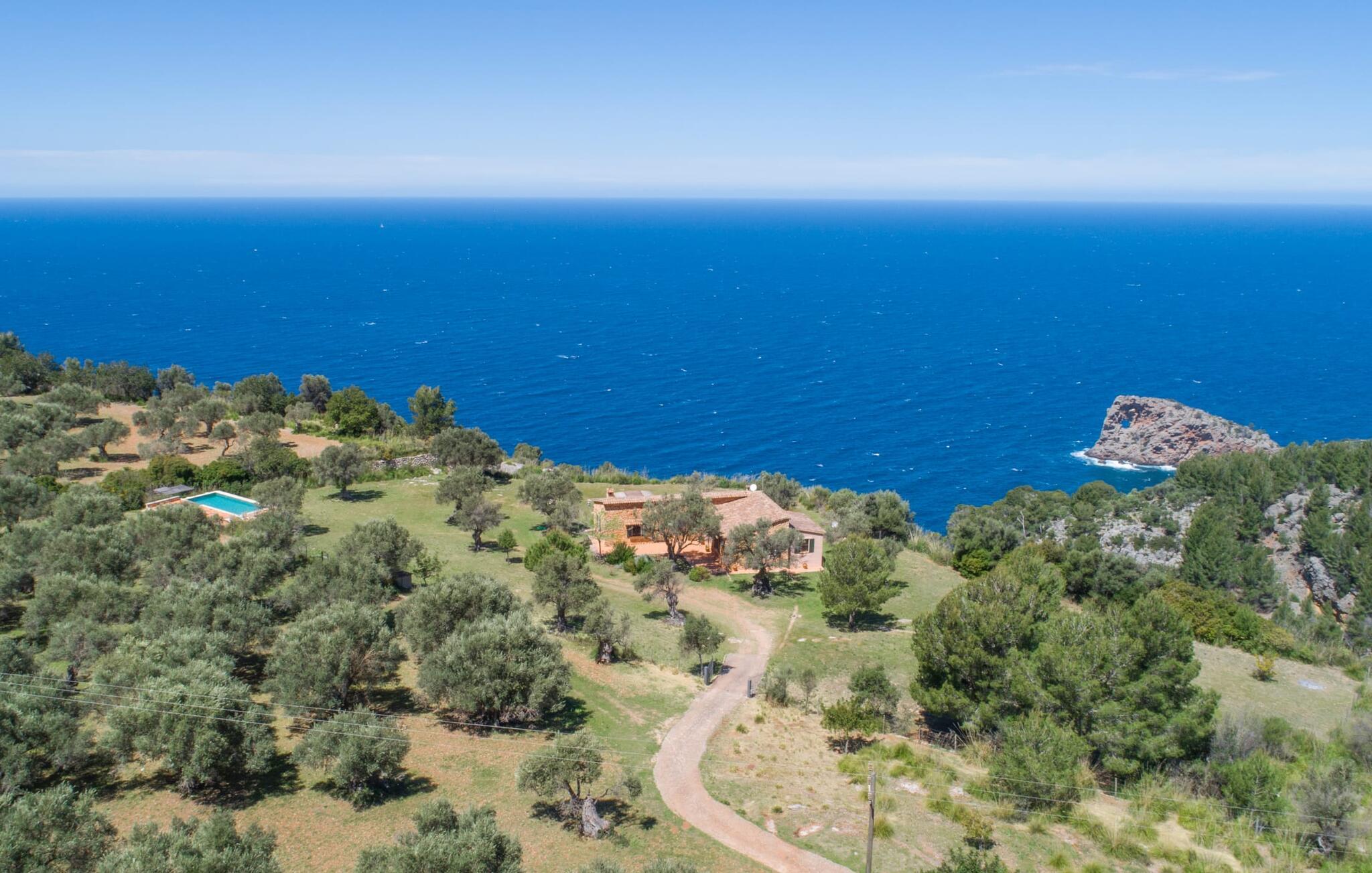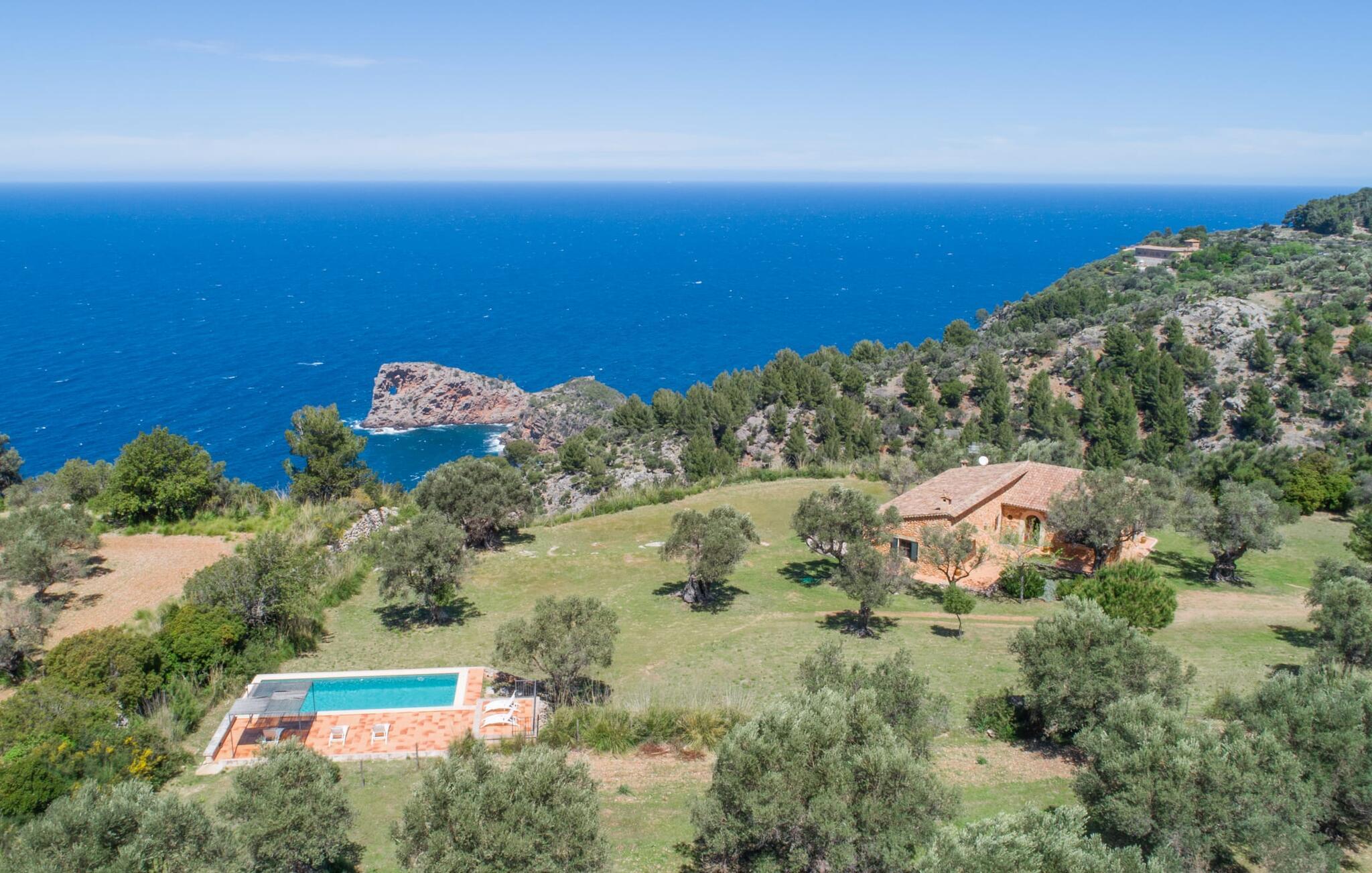 Når I træder ind på Villa Vidals grund, vil I straks fornemme den autentiske atmosfære, der omgiver denne ejendom. Gamle oliventræer hviler op ad huset, som delvist er bygget med natursten, og formidler straks en hyggelig atmosfære. Den rustikke karakter bekræftes, når I går gennem den labyrintlignende villa. Forskellige delvist overdækkede terrasseområder lægger op til at slappe af og nyde den storslåede udsigt. Der er også forskellige komfortable siddepladser og et solidt spisebord, hvor I også kan nyde morgenmaden under åben himmel, hvis I ønsker det. nogle få skridt fra huset, let hævet, ligger en rektangulær pool med en tilstødende, delvist overdækket, flisebelagt terrasse med liggestole. Herfra kan jeres blik feje langt ud over det dybblå hav - eller i en anden retning, til de omkringliggende, imponerende, stort set skovklædte bjerge. Da det ikke er muligt at se ejendommen udefra, kan I bevæge jer helt uforstyrret rundt og nyde den smukkeste tid på året, som I finder det passende.