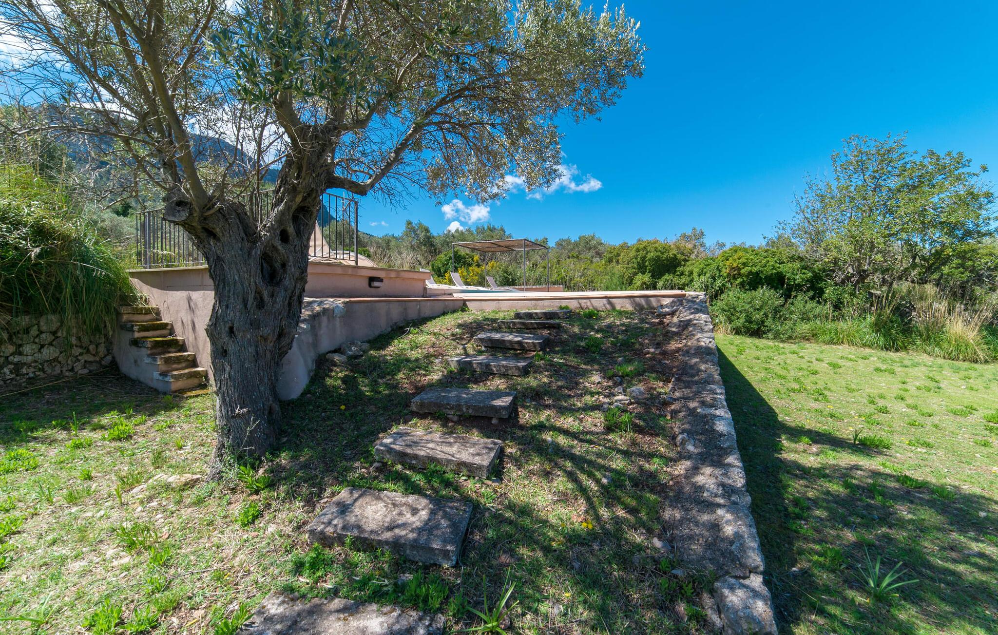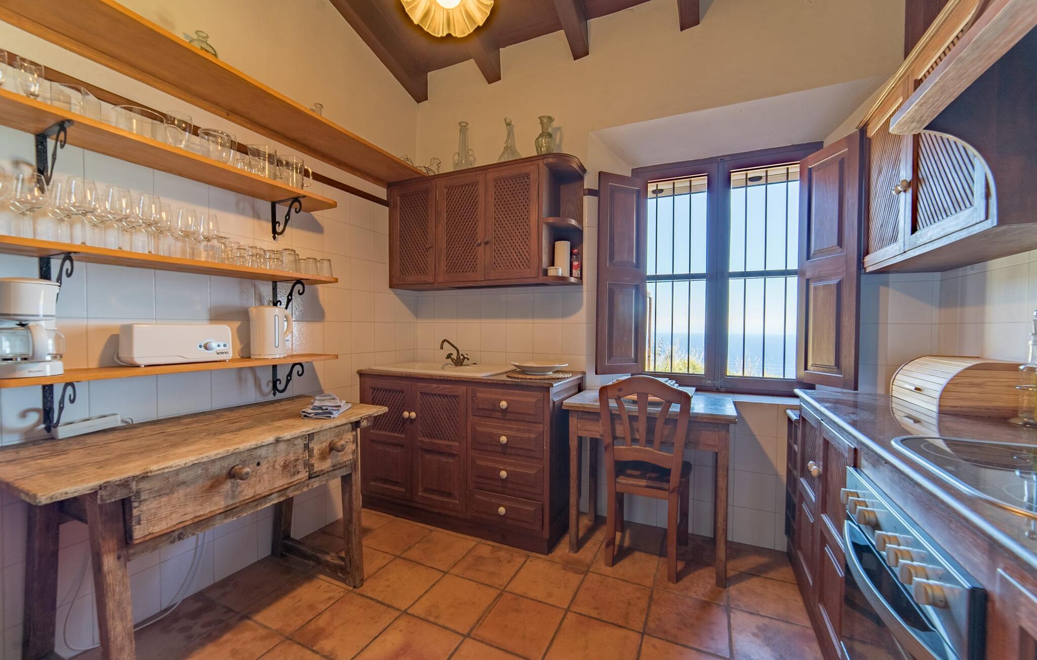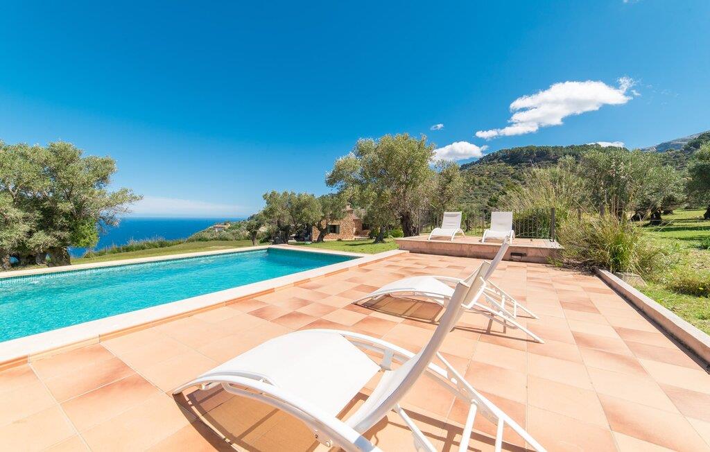 Når I træder ind på Villa Vidals grund, vil I straks fornemme den autentiske atmosfære, der omgiver denne ejendom. Gamle oliventræer hviler op ad huset, som delvist er bygget med natursten, og formidler straks en hyggelig atmosfære. Den rustikke karakter bekræftes, når I går gennem den labyrintlignende villa. Forskellige delvist overdækkede terrasseområder lægger op til at slappe af og nyde den storslåede udsigt. Der er også forskellige komfortable siddepladser og et solidt spisebord, hvor I også kan nyde morgenmaden under åben himmel, hvis I ønsker det. nogle få skridt fra huset, let hævet, ligger en rektangulær pool med en tilstødende, delvist overdækket, flisebelagt terrasse med liggestole. Herfra kan jeres blik feje langt ud over det dybblå hav - eller i en anden retning, til de omkringliggende, imponerende, stort set skovklædte bjerge. Da det ikke er muligt at se ejendommen udefra, kan I bevæge jer helt uforstyrret rundt og nyde den smukkeste tid på året, som I finder det passende.