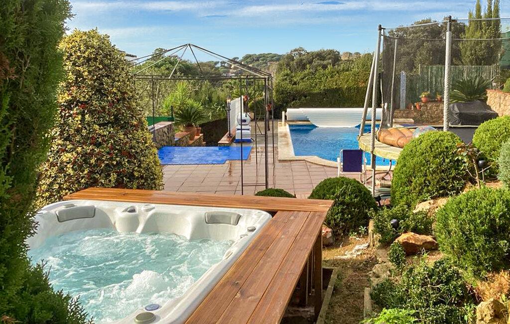 Udendørsområdet lægger op til at nyde middelhavsklimaet. Begynd dagene med en forfriskende svømmetur, lad børnene løbe rundt på trampolinen og forkæl jer selv med hyggelige stunder i spabadet. Tænd grillen og fejr de varme sommernætter med en stemningsfuld grill i velkendt selskab.