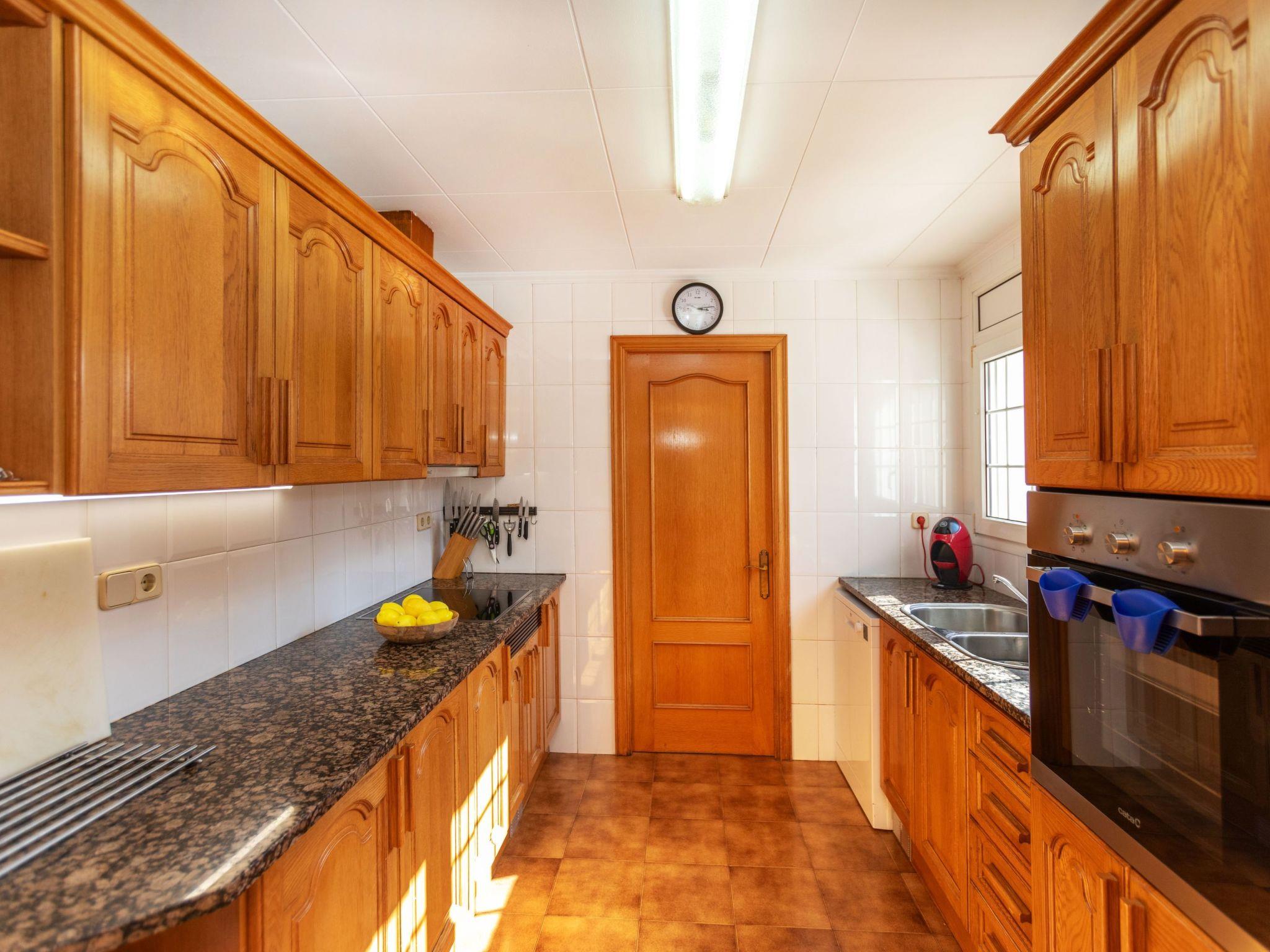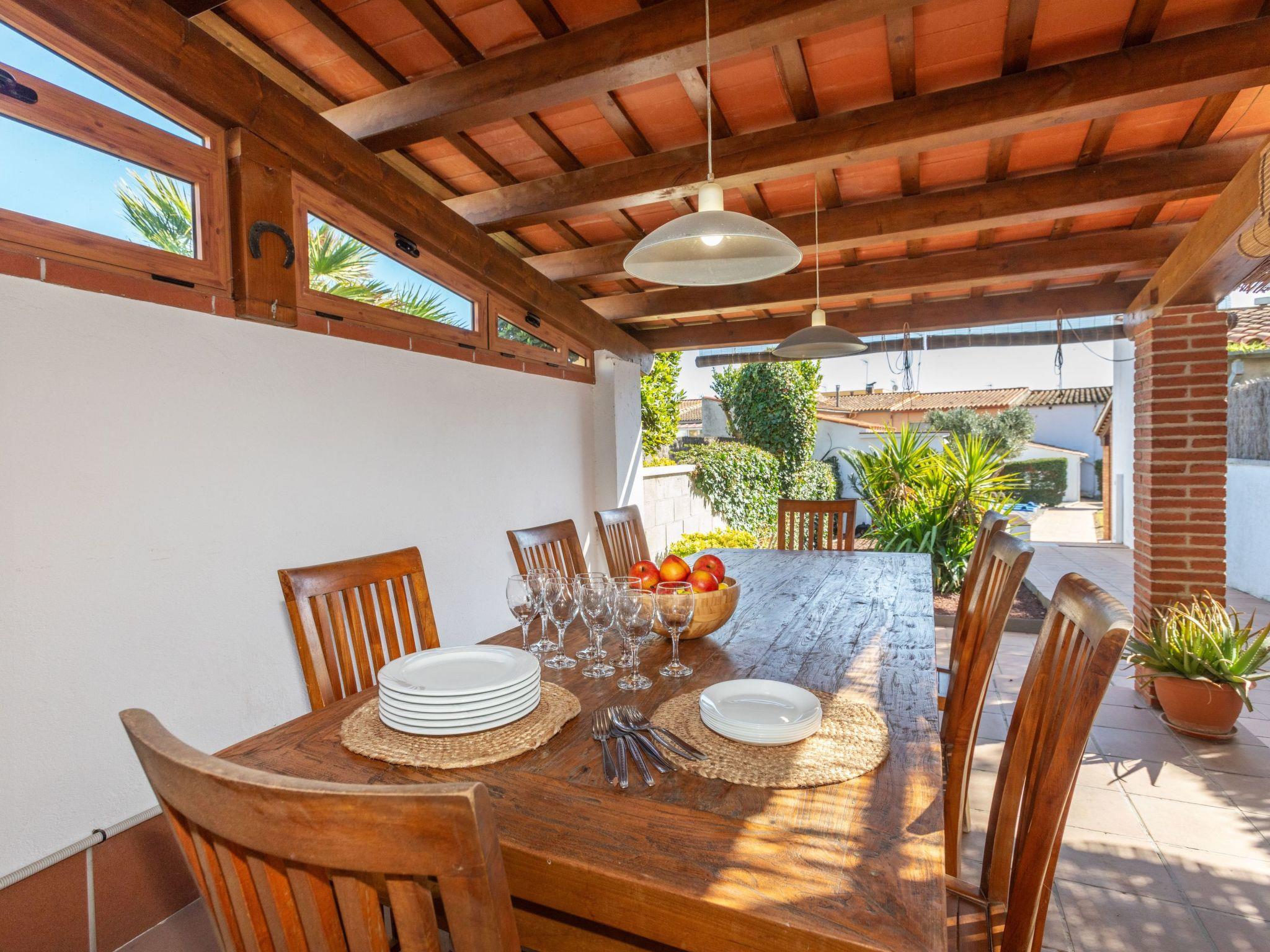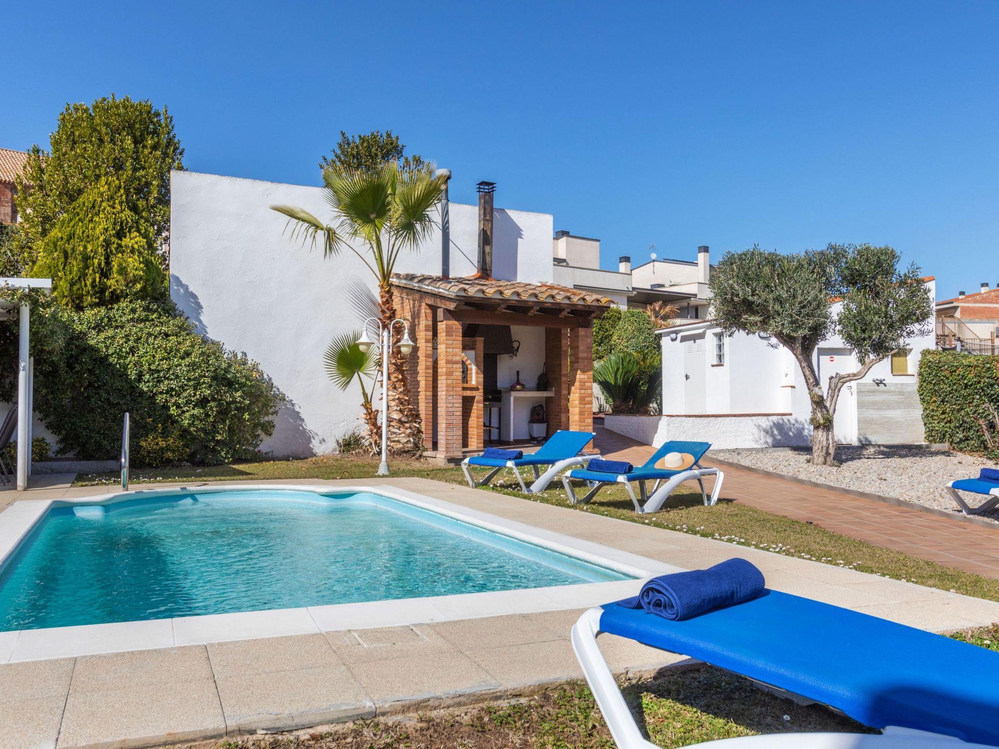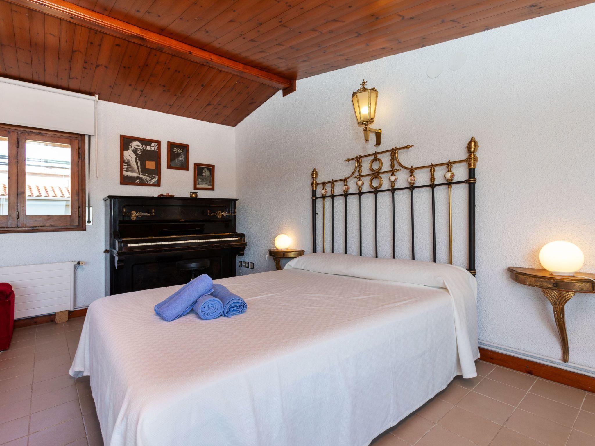 "Cataluña", 5-room semi-detached house 350 m2 on 2 levels. Spacious, practical furnishings: living room with digital TV. Exit to the garden, to the swimming pool. Dining room with dining table. Kitchen (oven, dishwasher, 4 ceramic glass hob hotplates, toaster, kettle, microwave, freezer, electric coffee machine) with dining table. Exit to the garden, to the swimming pool. Bath/WC. Gas heating. Upper floor: with 1 pull-out bed (2 pers. 2 x 90 cm, length 190 cm). 1 double bedroom with 1 french bed (150 cm, length 190 cm), shower/bidet/WC. 1 double bedroom with 1 french bed (150 cm, length 190 cm). Bath/bidet/WC. 2nd upper floor: with sloping ceilings with 1 french bed (150 cm, length 190 cm). Exit to the terrace. Terrace furniture, barbecue, deck chairs. View of the resort. Facilities: washing machine, iron, children's high chair, baby cot for up to 2 year olds, hair dryer. Internet (WiFi, free). Please note: maximum 2 small pets/ dogs allowed. TV only ES. HUTG-058484 // Reg. Nr.: ESFCTU00001701800079771400000000000000000HUTG-0584844