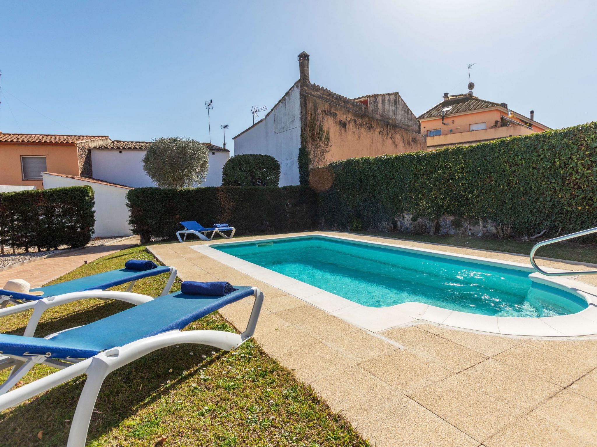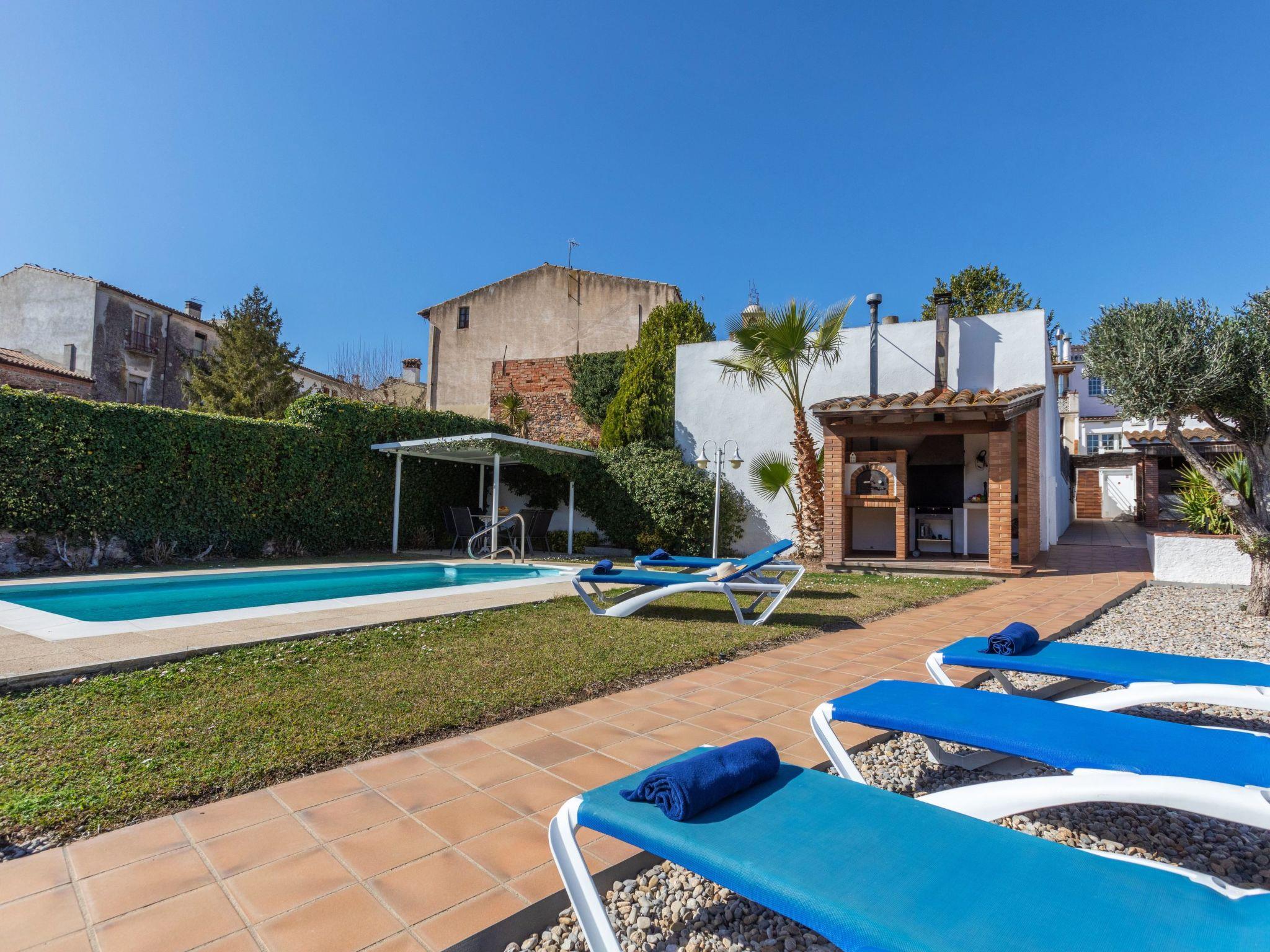 Very large, historical house "Cataluña", 2 storeys, surrounded by fields. In the resort Vidreres, in a central, sunny position, excellent location: right in the centre but still quiet, 1 km from the edge of the forest, 14 km from the sea, 14 km from the beach. Private: garden, swimming pool angular (7 x 3 m, depth 100 - 180 cm, seasonal availability: 01.Jan. - 31.Dec.). Shower/WC in the pool area, arbour, terrace, garden furniture, pool maintenance by the owner/gardener. Roofed, parking (for 2 cars). Supermarket 50 m, shopping centre 25 km, restaurant 50 m, bar 40 m, bakery 30 m, pub garden 40 m, bus stop 200 m, railway station "Sils" 5 km. Sports harbour 26 km, golf course 12 km, sailing school 26 km, walking paths from the house, cycle lane 200 m. Nearby attractions: Tossa de mar 24 km, Girona 26 km, Barcelona 79 km, Water World lloret 12 km, Tossa de mar 24 km, Marinland 20 km. Hiking paths: Ermita de Caules 7 km. Please note: car recommended. Suitable for families. The owner does not accept any youth groups. Motorway 4 km from the property. Airfield 18 km from the property.