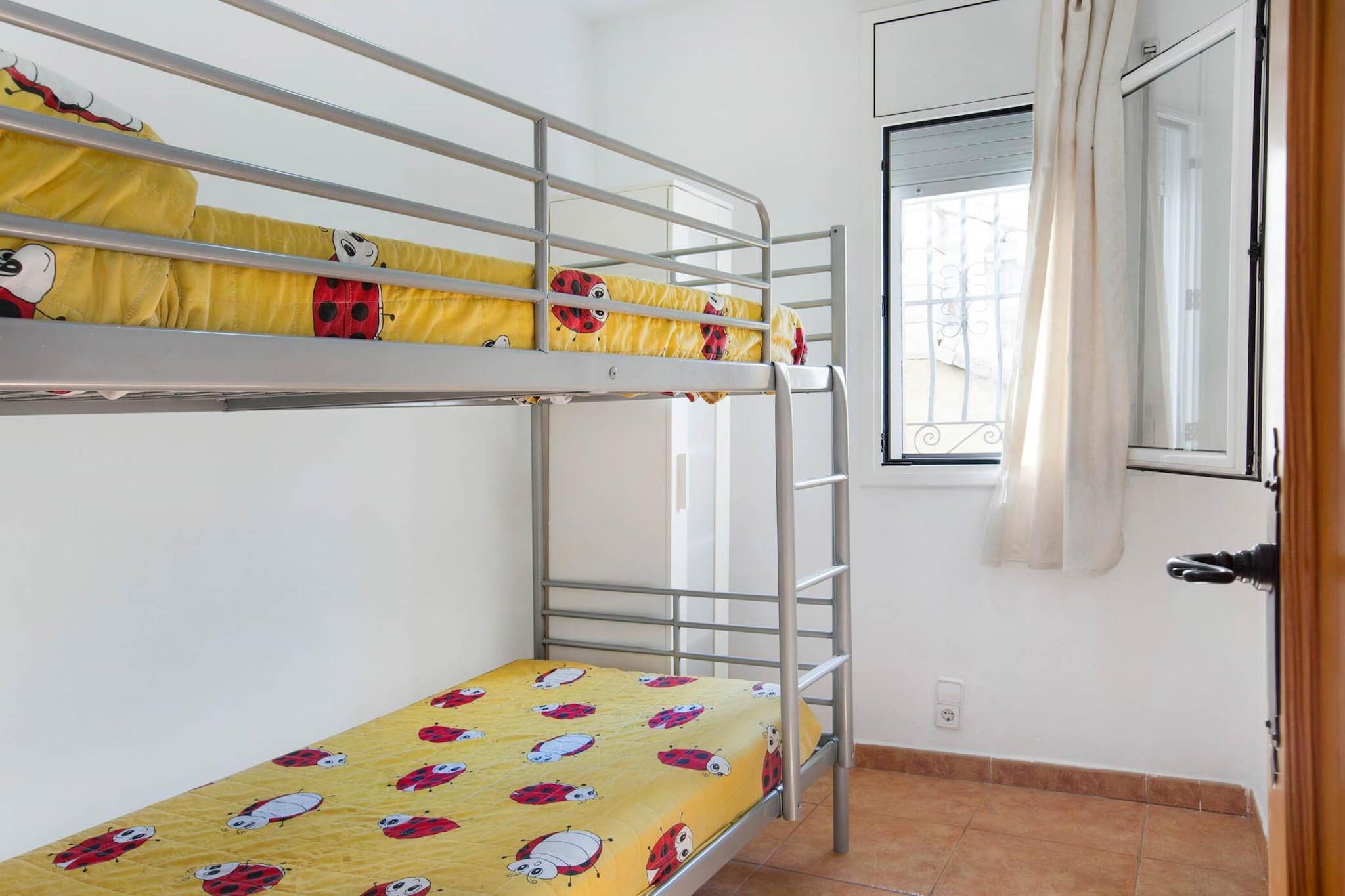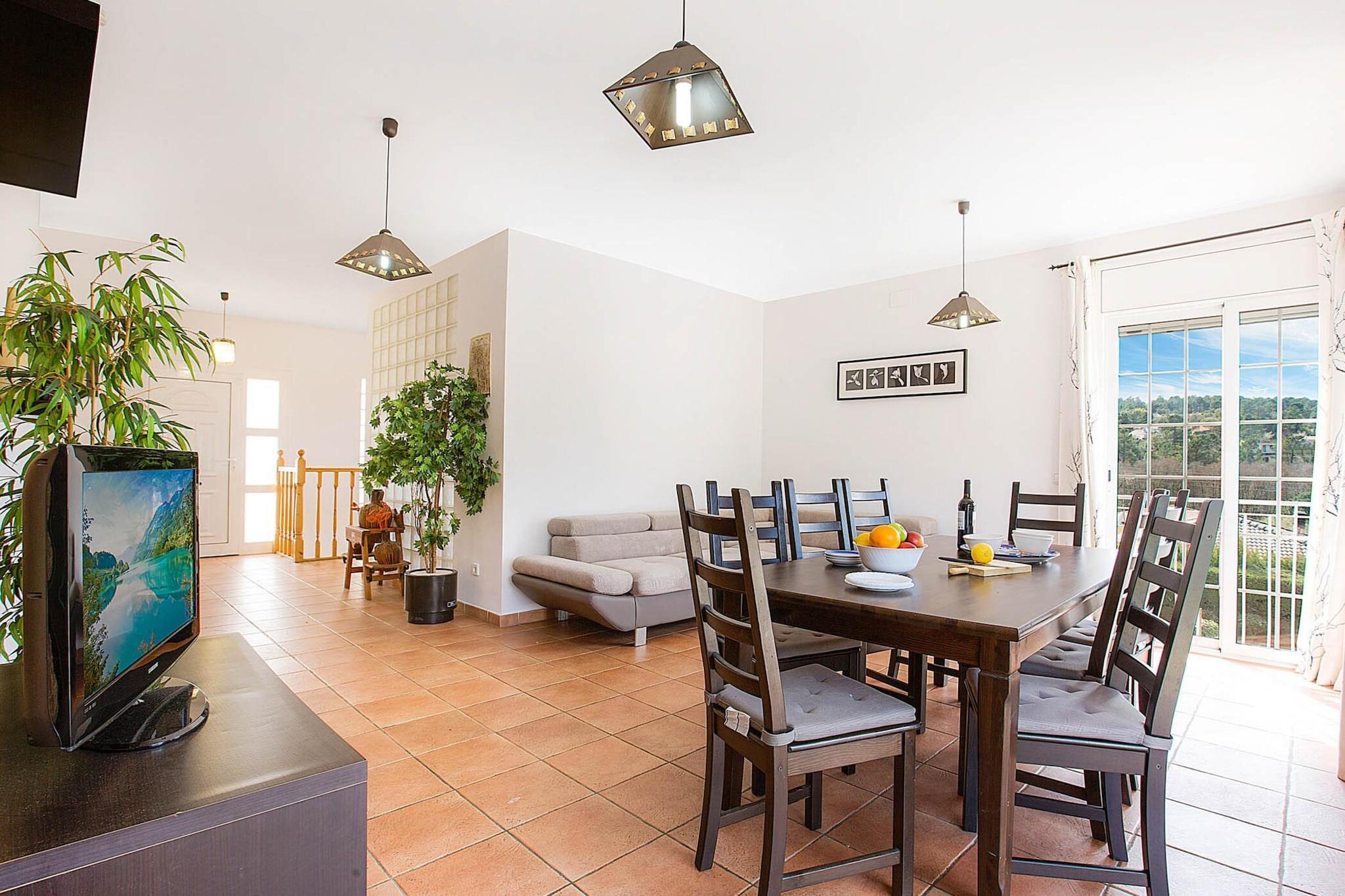 Denne komfortable villa tilbyder et fredfyldt tilflugtssted kun 9 km fra de fantastiske strande i Lloret de Mar, beliggende i et roligt område perfekt for familier. Villaen har plads til 10 gæster og har 5 rummelige soveværelser, herunder et dobbeltværelse, tre værelser med to enkeltsenge og et værelse med køjesenge. Den store stue er lys og indbydende, udstyret med tv og udgang til en terrasse med smuk udsigt over bjergene. Det fuldt udstyrede køkken omfatter mikrobølgeovn, ovn, opvaskemaskine og vaskemaskine, hvilket sikrer, at gæsterne har alt det nødvendige for et problemfrit ophold. Udenfor byder villaen på en privat 8x4 meter swimmingpool, en indbygget grill og en stor skyggefuld terrasse med et bordtennisbord, ideelt til at slappe af og nyde kvalitetstid med familie eller venner. Til ejendommen hører en stor gårdhave og rigelig parkering. Valgfri elektrisk opvarmning er tilgængelig mod et ekstra gebyr. Wi-Fi er inkluderet, hvilket gør det nemt at holde forbindelsen under dit ophold. Kæledyr er tilladt med forudgående godkendelse, og der kræves et særligt depositum for unge grupper, med restriktioner på fester og støj efter kl. Villaen er bekvemt placeret, kun en kort køretur fra Lloret de Mars berømte strande, hvilket giver nem adgang til vandsport og den travle bymidte. Supermarkeder og lokale butikker ligger inden for en radius på 2 km, hvilket sikrer, at du har alt, hvad du har brug for til dit ophold. For familier med små børn er valgfrie faciliteter såsom barnesenge og høje stole tilgængelige til en ekstra pris, hvilket gør denne villa til en familievenlig ferie på Costa Brava.