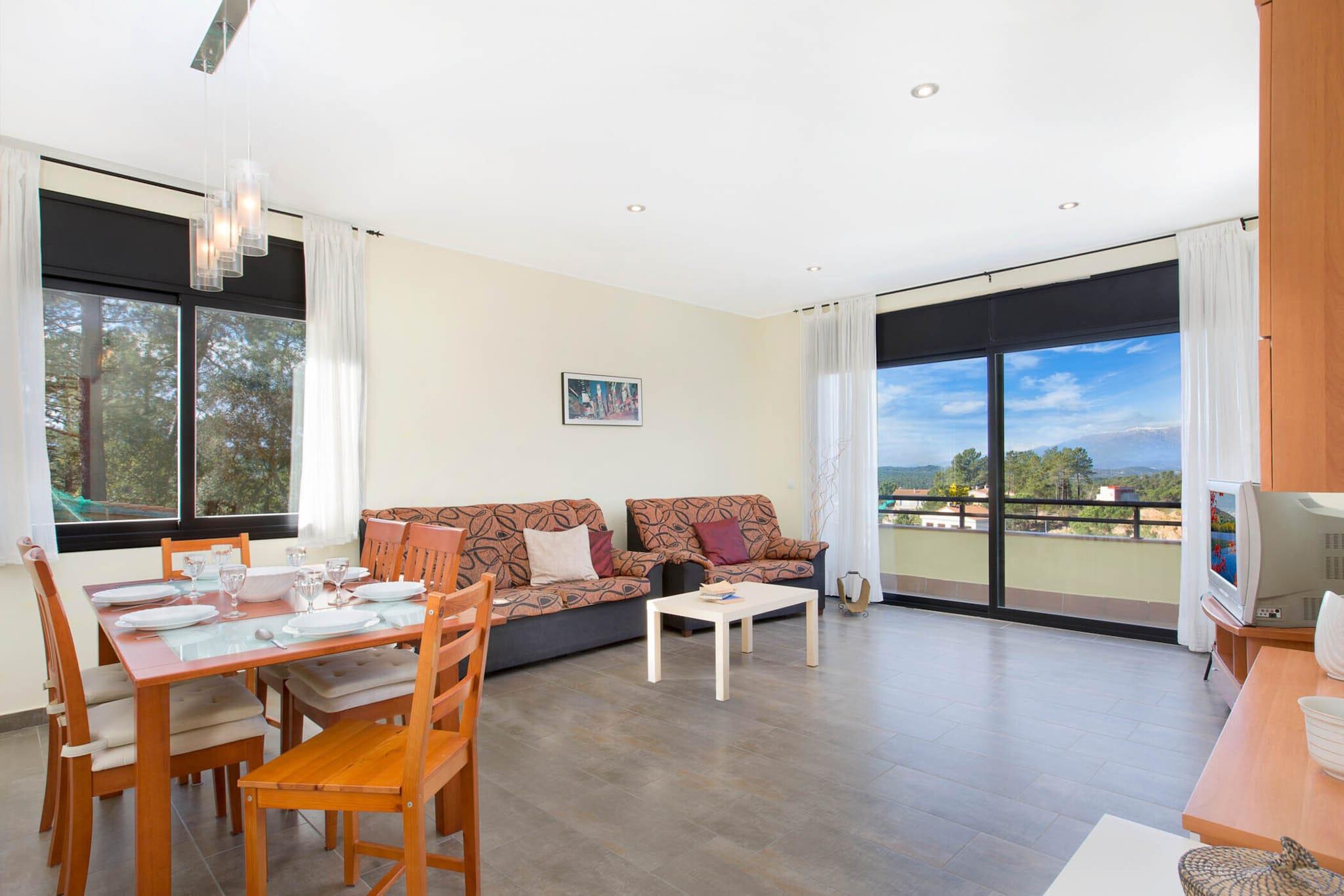 Denne komfortable villa tilbyder et fredeligt tilflugtssted kun 9 km fra de pulserende strande i Lloret de Mar, beliggende i et roligt område, der er ideelt for familier. Villaen har plads til 8 gæster og har 4 rummelige soveværelser, herunder to værelser med dobbeltsenge og to værelser med to enkeltsenge. Stuen er hyggelig og udstyret med et tv, perfekt til at slappe af efter en dag med udforskning. Det fuldt udstyrede køkken indeholder køleskab, fryser, mikroovn, ovn, keramisk kogeplade, opvaskemaskine og vaskemaskine, som giver alt hvad du behøver for et behageligt ophold. Der er gratis trådløs internetadgang overalt på ejendommen. Udenfor har villaen en privat swimmingpool, en stor terrasse med udsigt over bjergene og en indbygget grill, der skaber et perfekt sted til udendørs spisning og afslapning. Ejendommen tilbyder også en udendørs parkeringsplads for din bekvemmelighed. Det omkringliggende område er fredeligt og tilbyder privatliv og en rolig atmosfære. Kæledyr er tilladt efter forudgående anmodning mod et ekstra gebyr. Villaen er designet udelukkende til familier, med en politik, der ikke accepterer grupper af unge under 35 år. Villaens beliggenhed giver mulighed for nem adgang til lokale faciliteter, med et supermarked kun 1,5 km væk. De berømte strande i Lloret de Mar er kun en kort køretur væk, og tilbyder en række aktiviteter og attraktioner. For familier med små børn er valgfri barnesenge og høje stole tilgængelige mod et ekstra gebyr. Sengetøj og håndklæder leveres mod et ekstra gebyr, hvilket sikrer et bekvemt og problemfrit ophold for alle gæster.