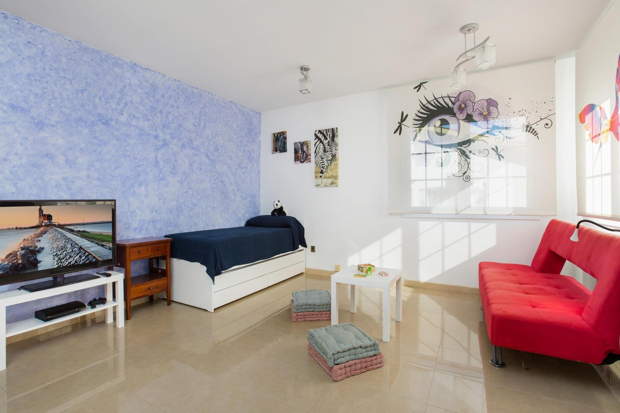 Denne charmerende villa er beliggende i det rolige Aiguaviva Park-område, kun 9 km fra de pulserende strande og centrum af Lloret de Mar. Huset er fordelt på to etager og byder på rigelig plads til op til 8 gæster. I stueetagen finder du en hyggelig stue-spisestue med direkte udgang til en solrig terrasse, perfekt til at nyde måltider udendørs. Det fuldt udstyrede køkken omfatter køleskab, ovn, mikroovn, opvaskemaskine og vaskemaskine. Hovedetagen har også to soveværelser med dobbeltsenge med komfortable senge og et komplet badeværelse med badekar. Første sal kan prale af endnu et soveværelse med dobbeltseng med en udtræksseng, et ekstra badeværelse med bruser og et åbent område med en udtræksseng til yderligere to gæster. En lukket terrasse byder på naturskøn udsigt over de omkringliggende bjerge. Udendørsområdet er designet til afslapning med en privat pool (7x4m), en chill-out terrasse med havemøbler og en grillplads med spisebord og stole - ideel til al fresco måltider. Der er også et køleskab for ekstra bekvemmelighed, hvilket gør dette område perfekt til at slappe af efter en dag med at udforske området. Der er gratis trådløs internetadgang overalt på ejendommen. Der tilbydes udendørs parkering, hvilket sikrer nem adgang for gæster med køretøjer. Denne villa udlejes udelukkende til familier, og reservationer for grupper af unge under 35 år er ikke tilladt. Kæledyr kan tillades efter forudgående anmodning og mod et tillægsgebyr. Villaens fredelige beliggenhed og nærhed til lokale attraktioner gør den til et ideelt valg for familier, der søger en afslappende ferie.