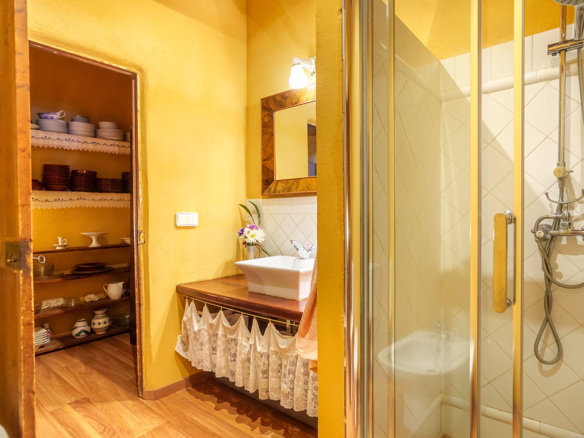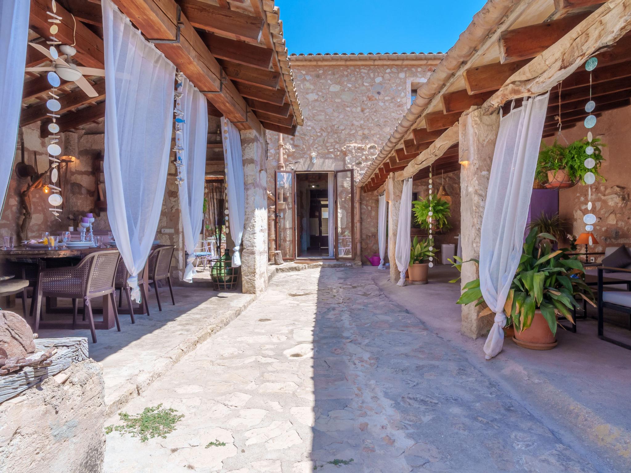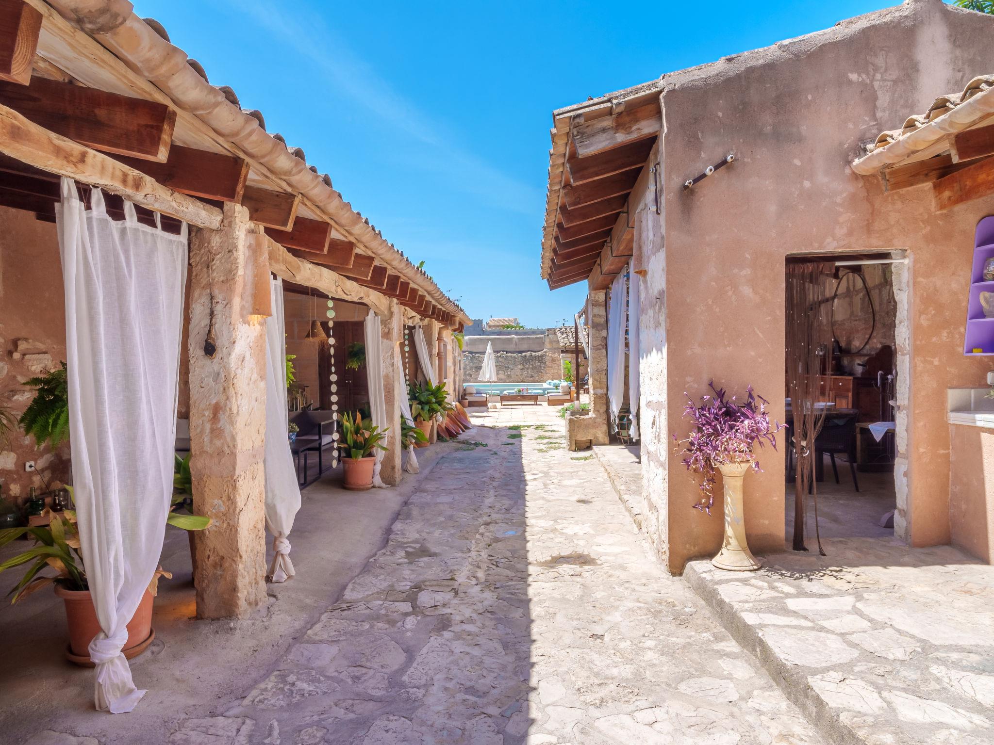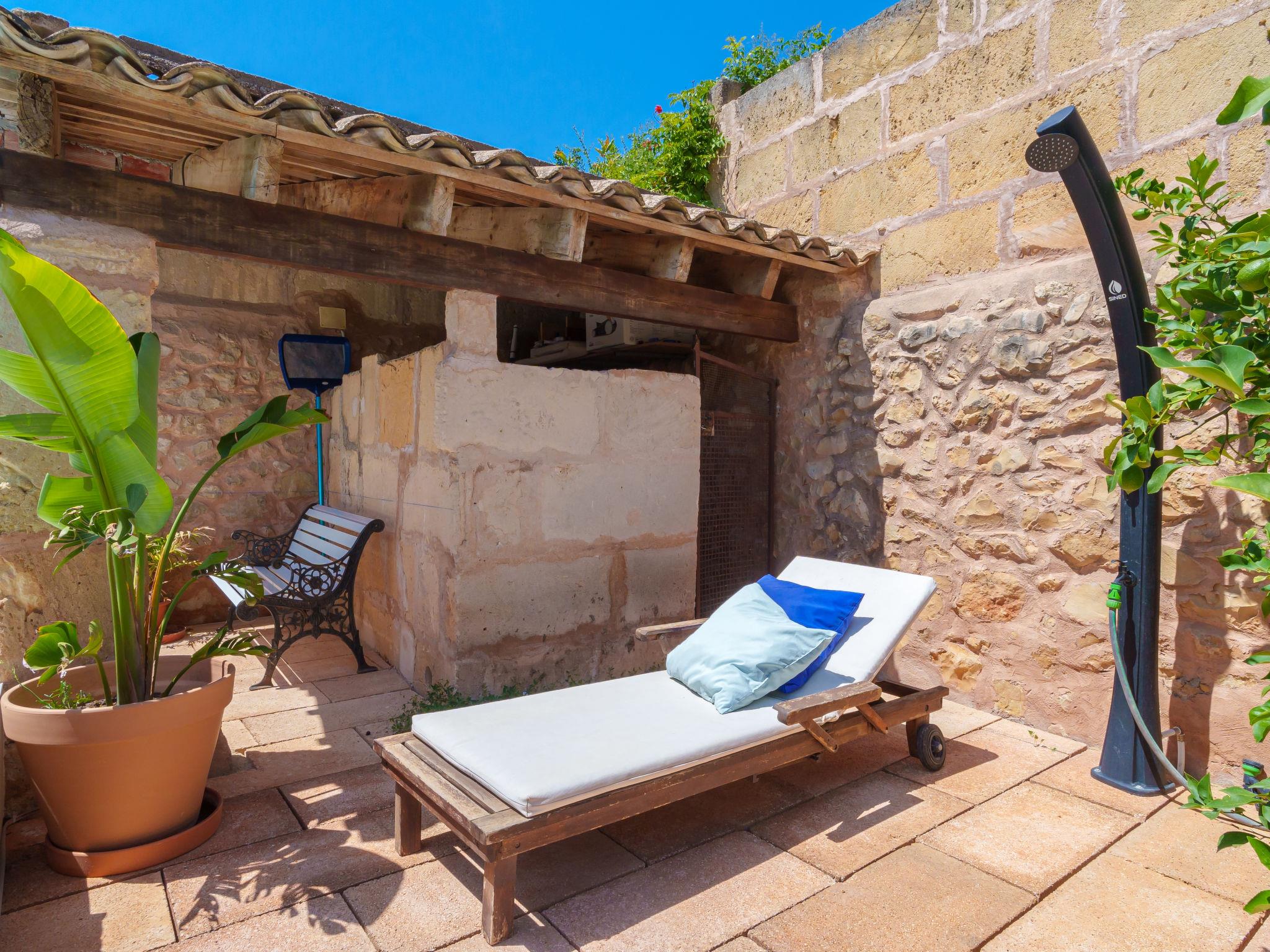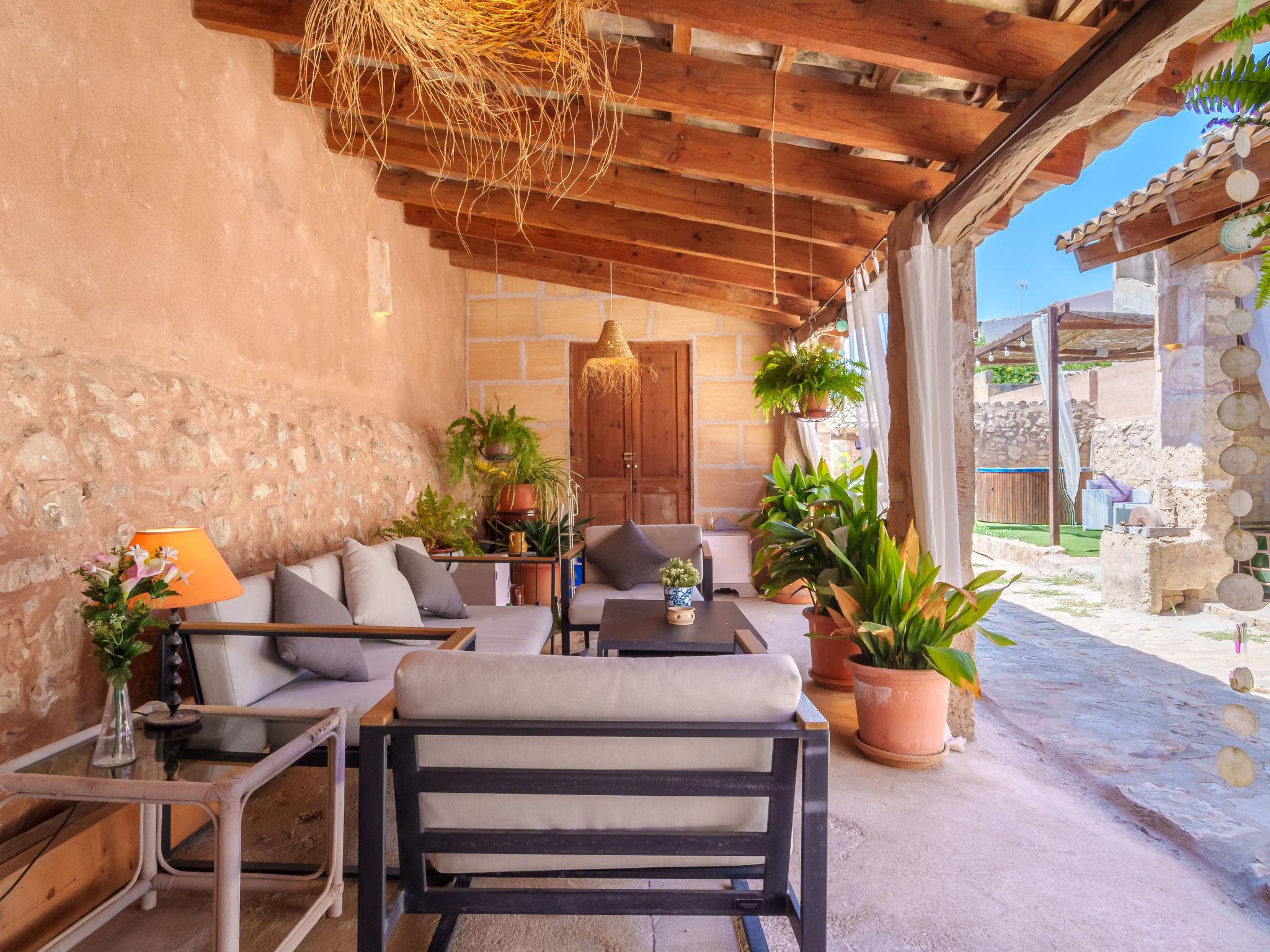 Vilafranca de Bonany: Very beautiful, comfortable house "Ca sa Padrina", 2 storeys, renovated. In the resort, 250 m from the centre, excellent location: right in the centre but still quiet, 3 km from the edge of the forest, 24 km from the sea, 24 km from the beach. Private: with flowers, beautiful garden to relax, swimming pool angular (5 m, depth 120 cm, seasonal availability: 01.May. - 31.Oct.). Outdoor shower, patio, arbour, pergola, garden furniture, barbecue. In the house: internet access, WiFi, air conditioning, washing machine. Shop 250 m, grocery 250 m, supermarket, restaurant, bar 300 m, bakery 300 m, internet café, pedestrian zone, pub garden 300 m, 4 minute walk to the centre, bus stop 450 m, sandy beach 24 km, rocky beach 25 km. Sports harbour 25 km, marina 25 km, golf course (18 hole) 29 km. Nearby attractions: Iglésia de Santa Bárbara, Las de Sant Martí d’Alanzel, Les cases d’Alcudiarrom, Restaurante Es Cruce, Sa Franquesa Vella i Sa Franquesa nova. Please note: suitable for families, suitable for seniors. Object suitable for 6 adults + 1 child groups of teenagers on request only. Loading and unloading of baggage is possible at the holiday house. Airfield 39 km from the property. The 2 bedrooms of the second floor have windows in the ceiling and can be opened.